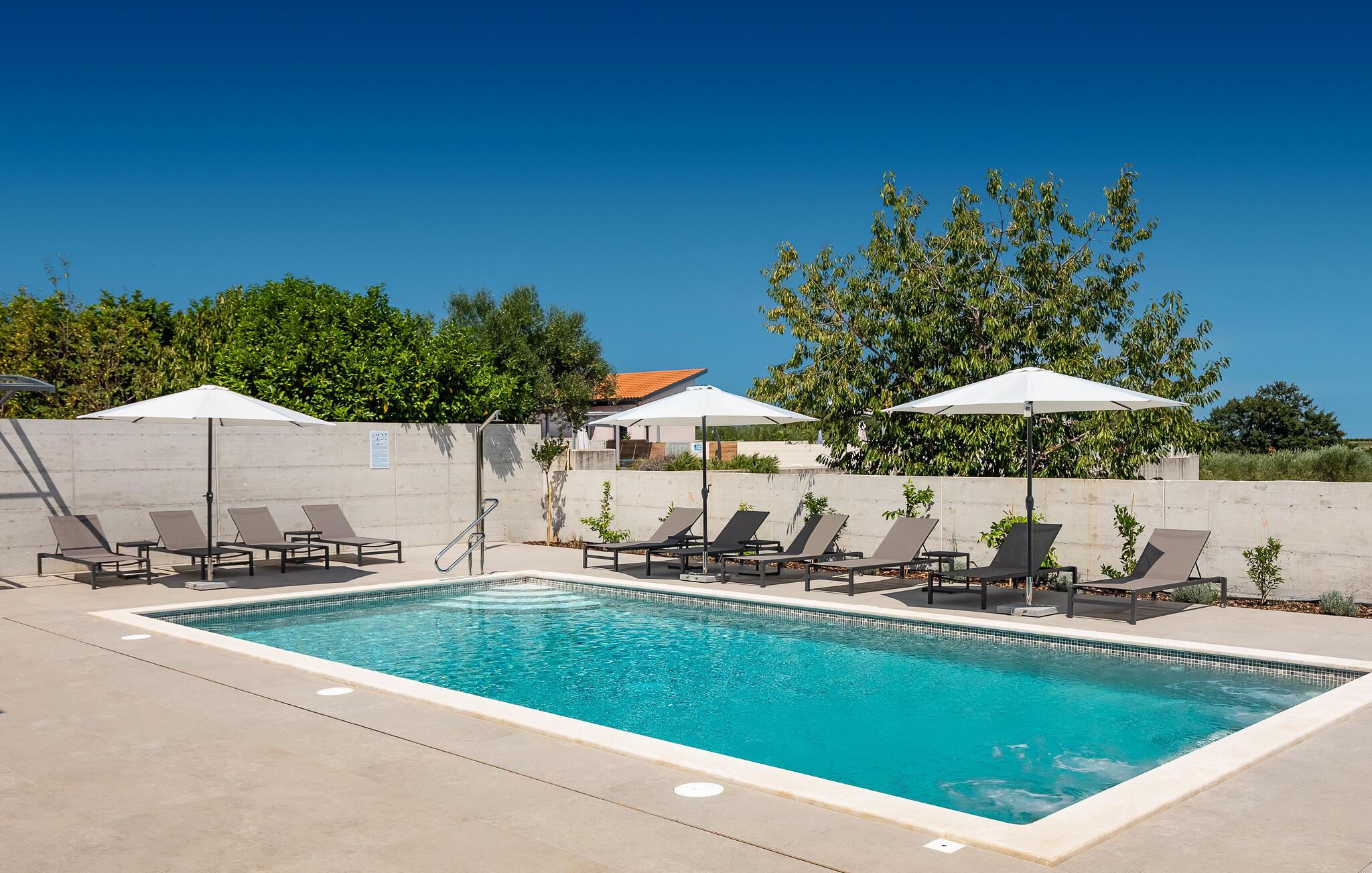 Salvela och det omgivande området erbjuder dig en fascinerande blandning av lugn och äventyr. Den historiska charmen i Novigrad ligger i närheten, där du kan promenera längs kusten eller njuta av lokala specialiteter på restaurangerna. Gör utflykter till de omgivande vingårdarna eller besök de vackra stränderna bara en kort bilresa bort. Vattensporter, cykelturer eller bara avkoppling vid havet - regionen erbjuder många möjligheter för alla smaker.