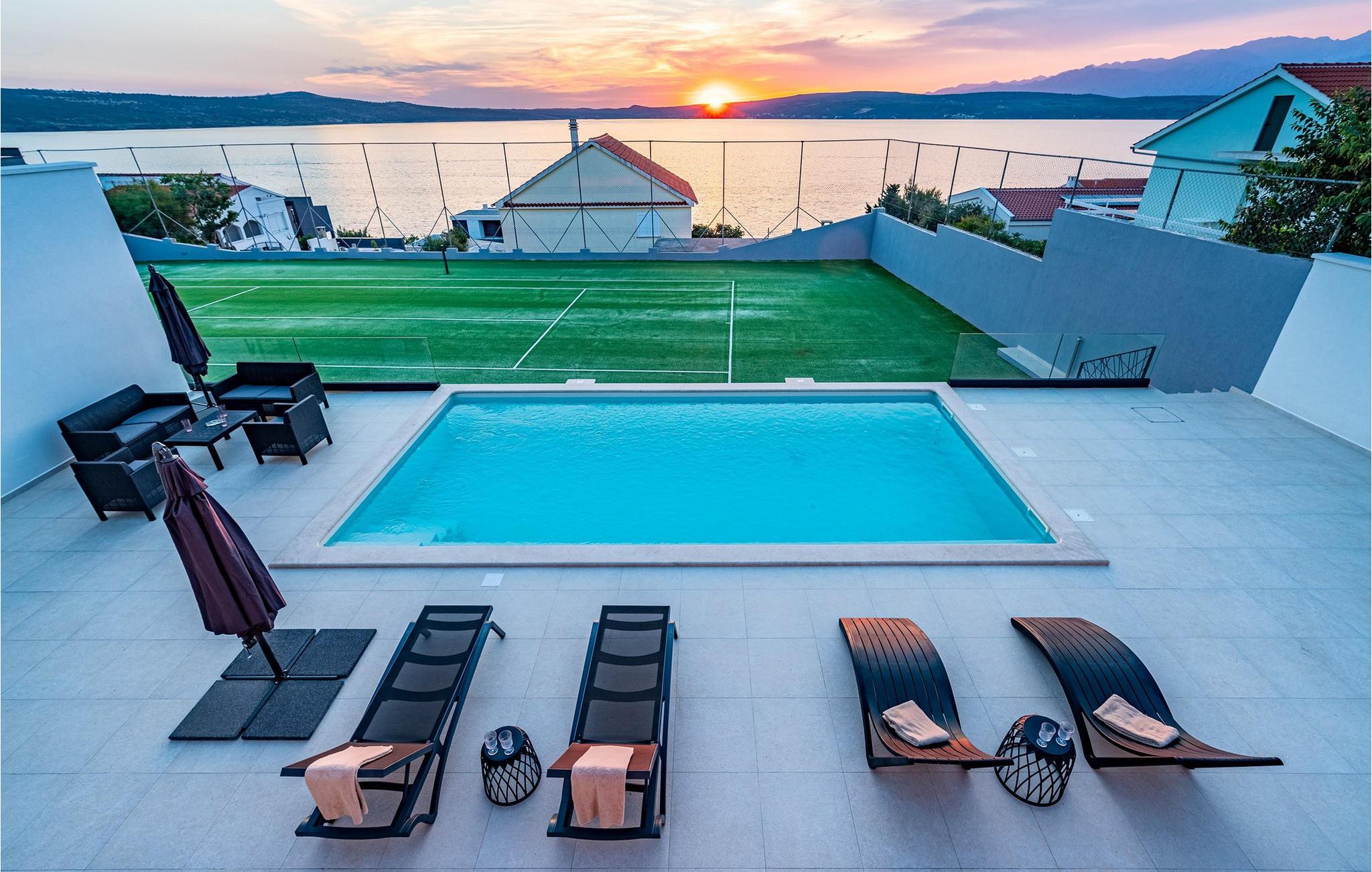 Servera din frukost på terrassen och svalka dig i poolen. Njut av den underbara utsikten över havet, lyssna till vågornas mjuka brus och samlas i tavernan för stämningsfulla grillkvällar. Använd projektorn för en sommarkväll med bio, spela tennis eller basket och låt barnen roa sig med PlayStation.