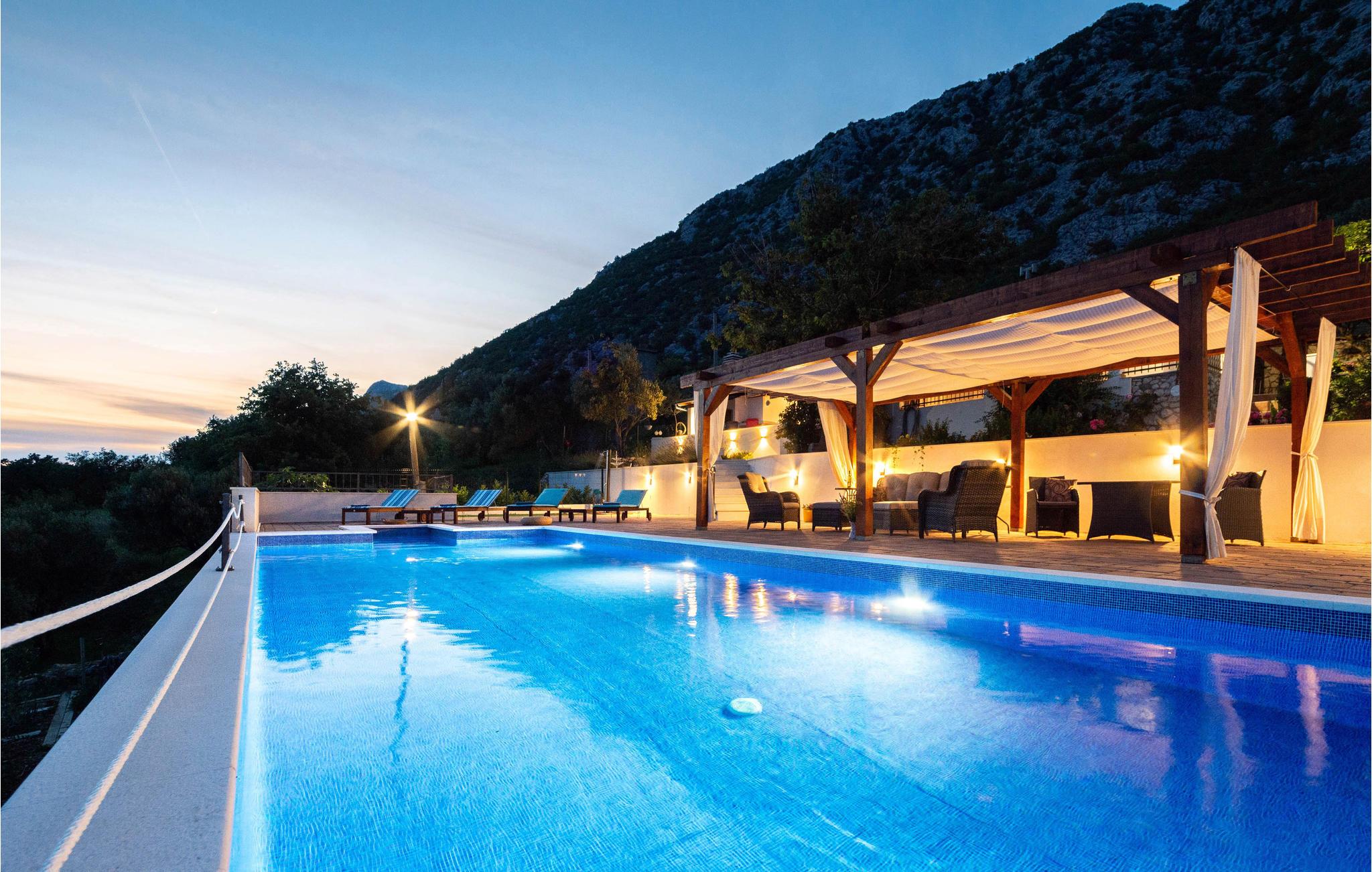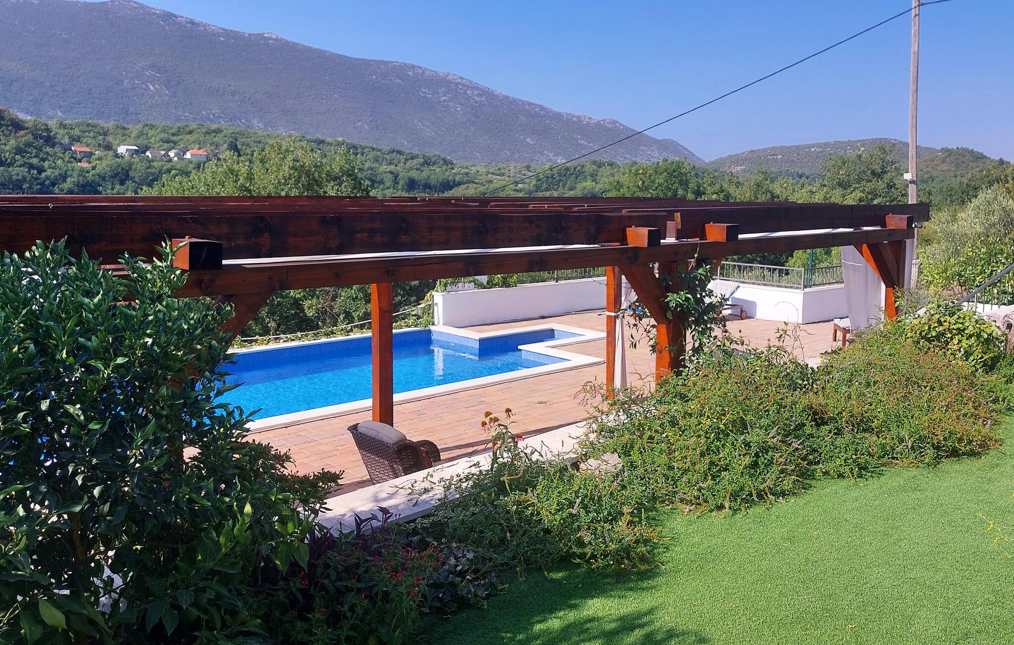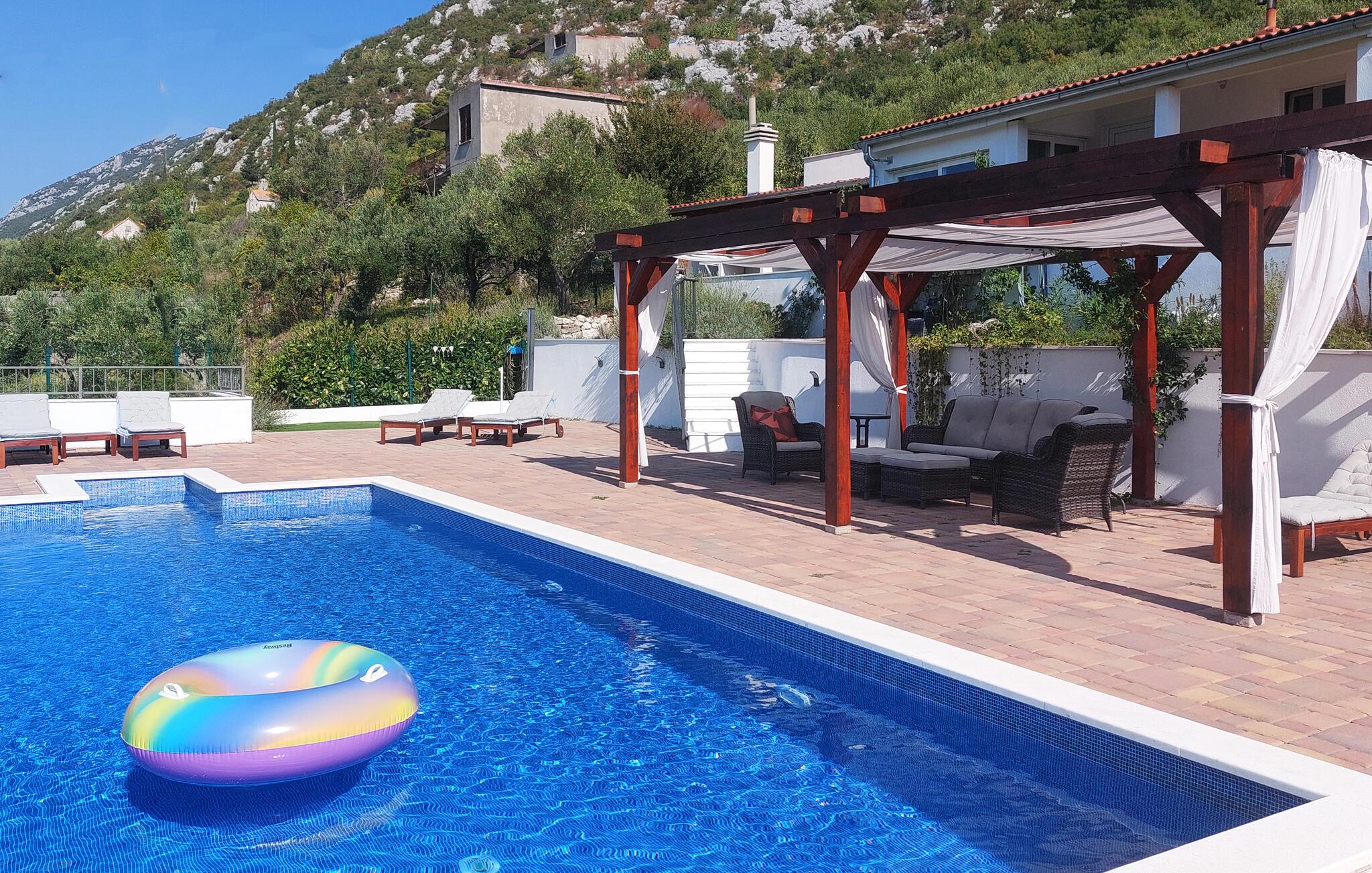 Detta semesterhus med egen pool är omgivet av vacker natur och erbjuder dig en vacker utsikt över bergen och landsbygden. Det är smakfullt inrett och i poolen framför huset hittar du uppfriskning och avkoppling för kropp och själ. Floden Cetina erbjuder ytterligare förfriskningar och möjlighet att njuta av forsränning, zip-lining och liknande adrenalinsporter som kommer att göra din semester komplett.