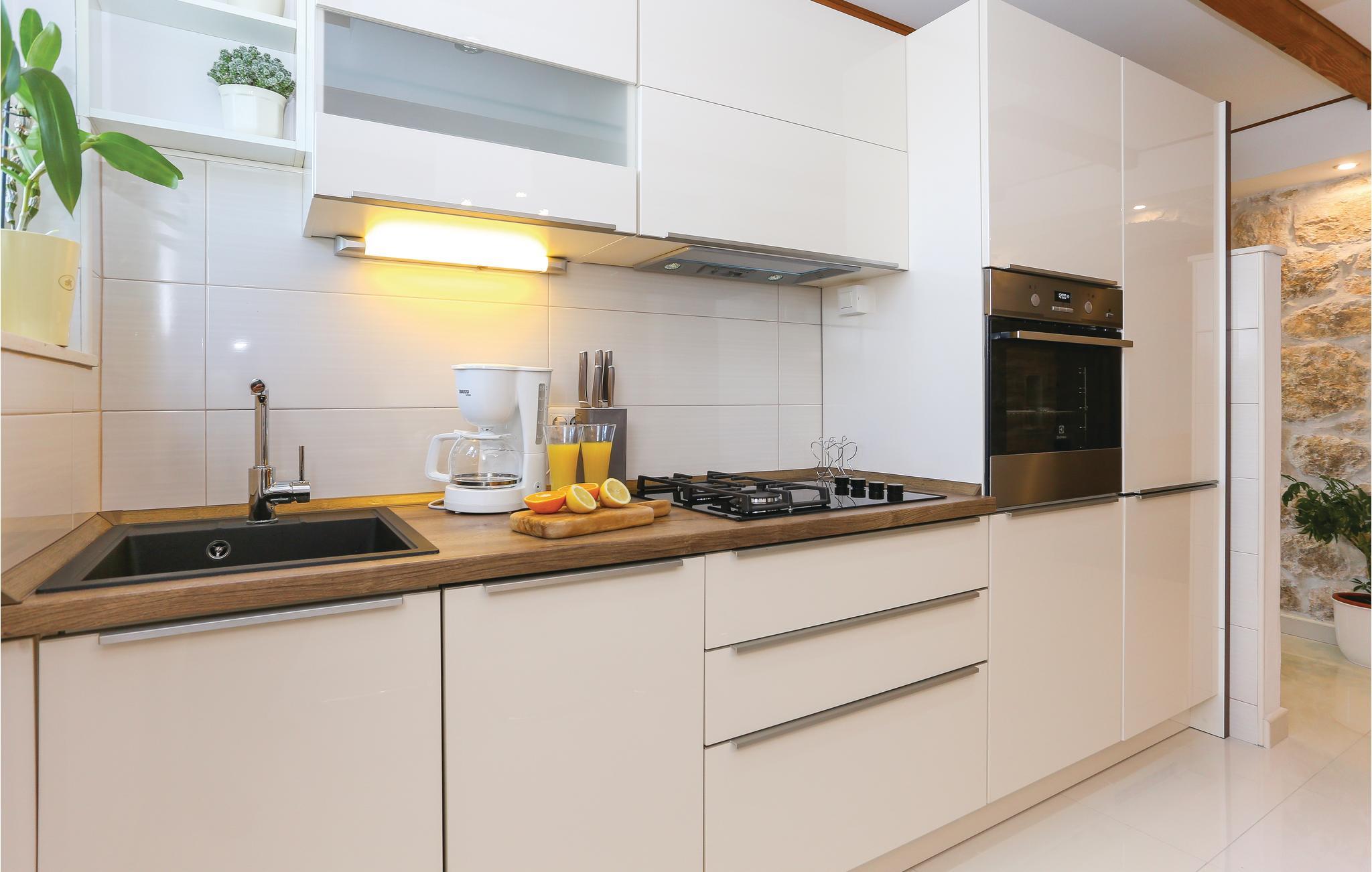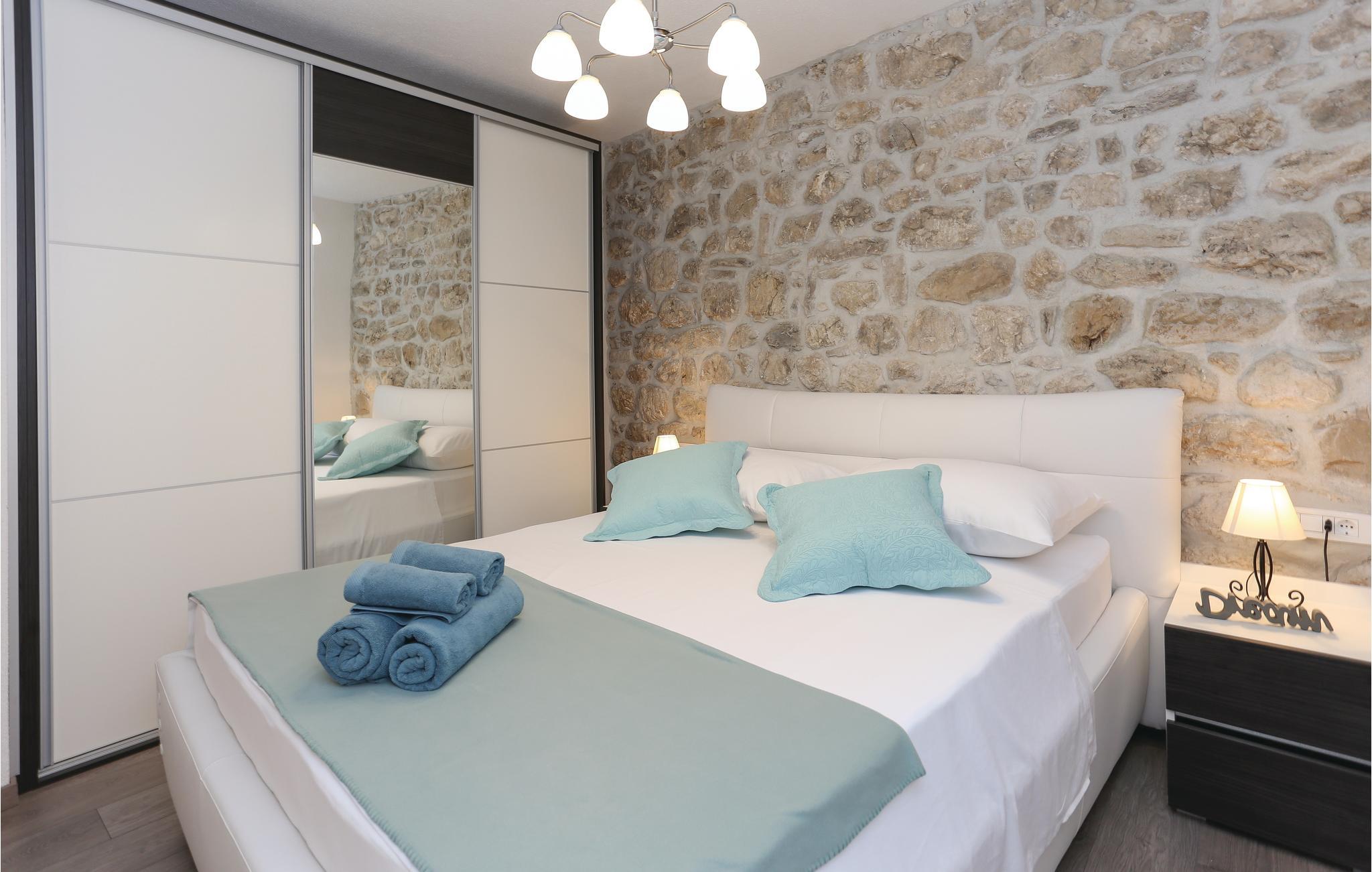 Underbart och restaurerat stenhus beläget i byn Gata, vid foten av Mosor-berget, varifrån det finns vacker utsikt över det naturliga landskapet i Omis inland. Det består av två våningar som nås via externa trappor och medan det finns en enkel lägenhet med ett sovrum på bottenvåningen, finns det en bekväm lägenhet med två sovrum på första våningen. Trädgården domineras av en stor swimmingpool och ett lusthus med grill där du kan koppla av på kvällen med ett glas gott vin. Det finns en vandringsled i närheten och många fritidsaktiviteter som cykling, forsränning, klättring och zip-lining finns tillgängliga i området. Under antiken var byn Gata centrum för Poljika-republiken, och det finns många monument bevarade i Gatas historiska museum.