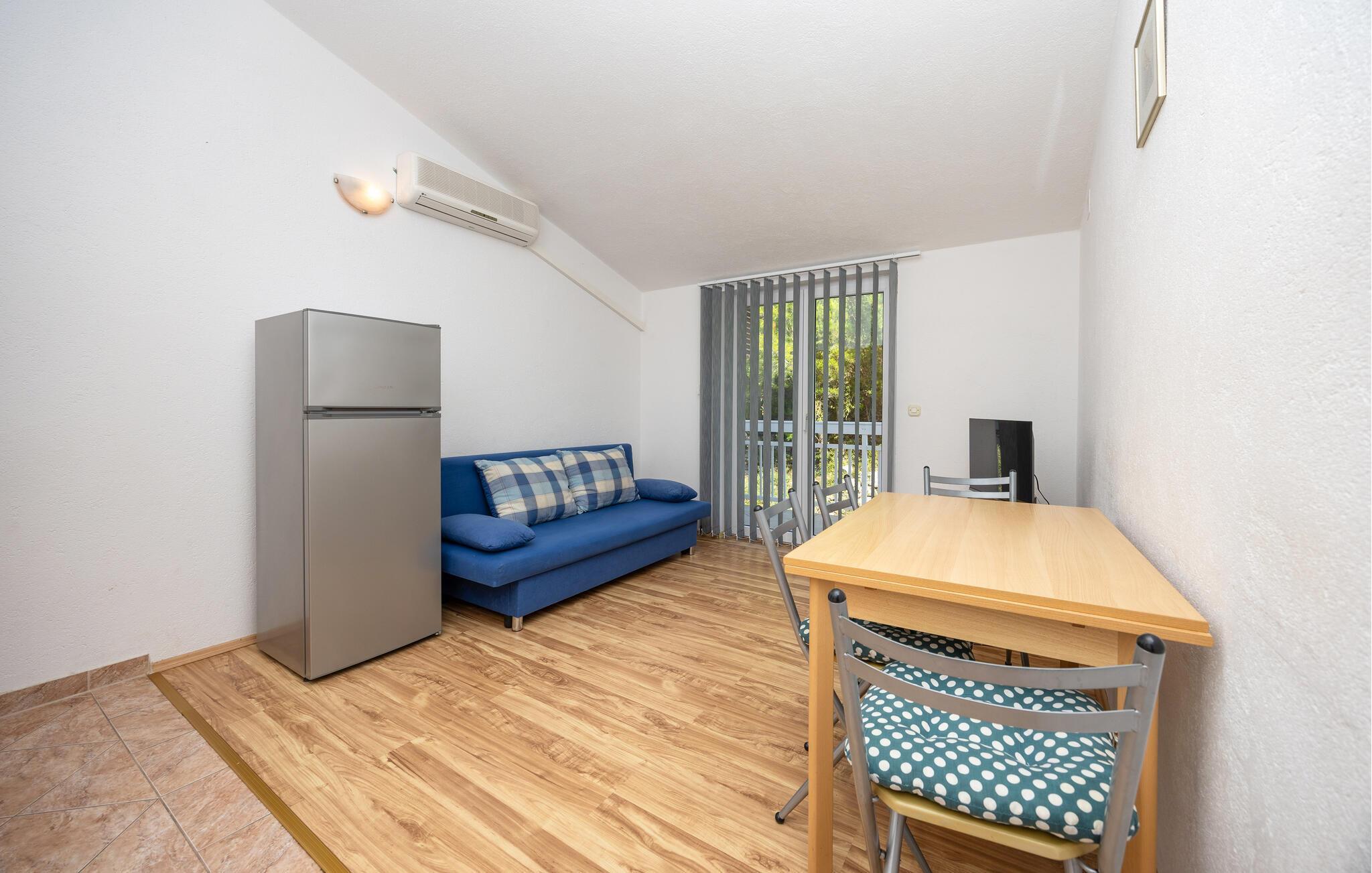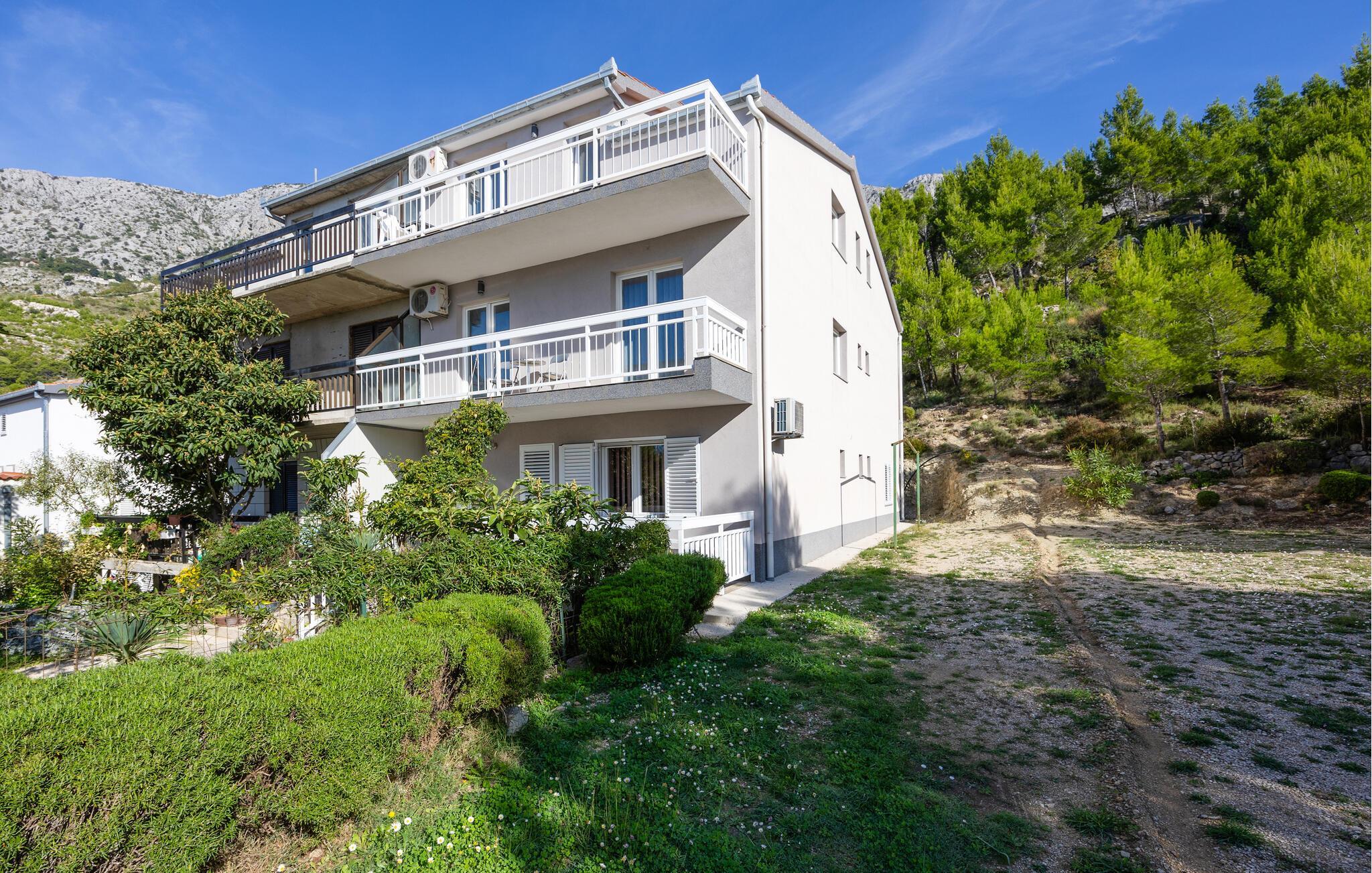 I ett högt beläget hus omgivet av pinjeträd ligger denna trevligt inredda semesterlägenhet som får er att känna er som hemma. Läget erbjuder gott om lugn och ro för en avkopplande semester. Havet och en lång, vacker stenstrand ligger bara några minuters bilresa från lägenheterna, så du kan tillbringa varje dag vid havet. Den lägsta takhöjden i lägenheterna på översta våningen är ca 100 cm. Du kan också besöka de andra vackra småstäderna i området och utforska den underbara kusten och dess stränder. Vi rekommenderar ett besök i städerna Omi och Makarska med sina många sommarevenemang.