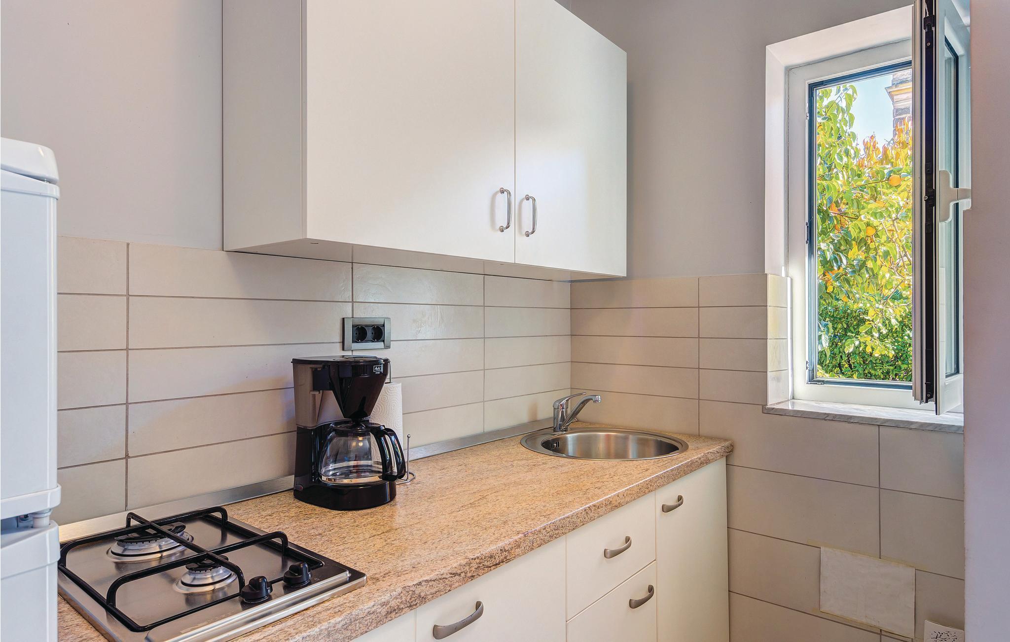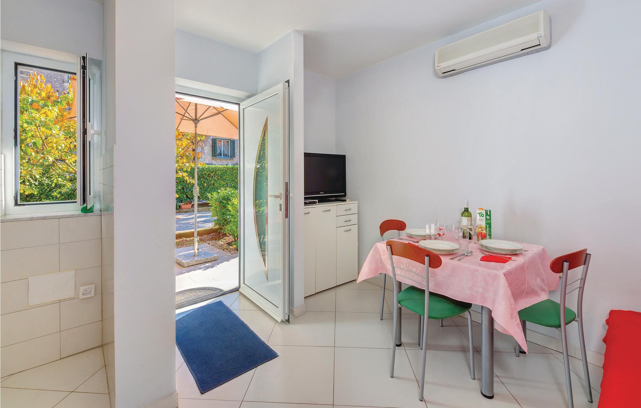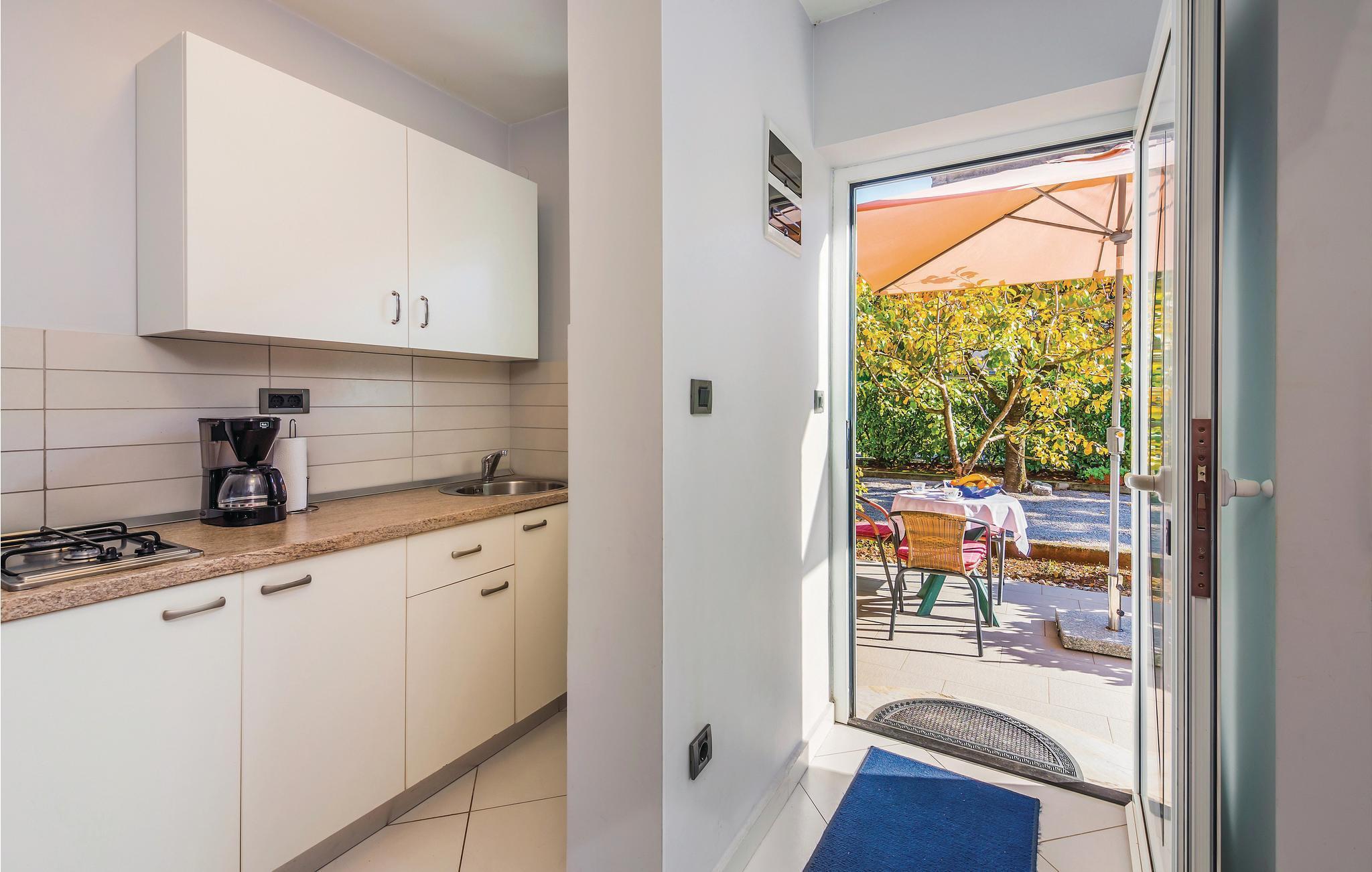 Denna enkelt inredda semesterlägenhet ligger på bottenvåningen i ett familjehus i den populära staden Opatija. På den inhägnade tomten och framför semesterlägenheten finns en terrass där ni kan koppla av. Här bor ni nära stadens centrum och inte långt från många nöjesmöjligheter, tennisbanor, restauranger och vackra promenadstråk. Ni kan också lära känna grannstäderna Lovran, Volosko, Rijeka, Kastav, Medveja och Moenika Draga, där det finns vackra stränder. Vi rekommenderar också en båttur till öarna Crek och Krk och, för naturälskare, vandringar genom Uka Nature Park.