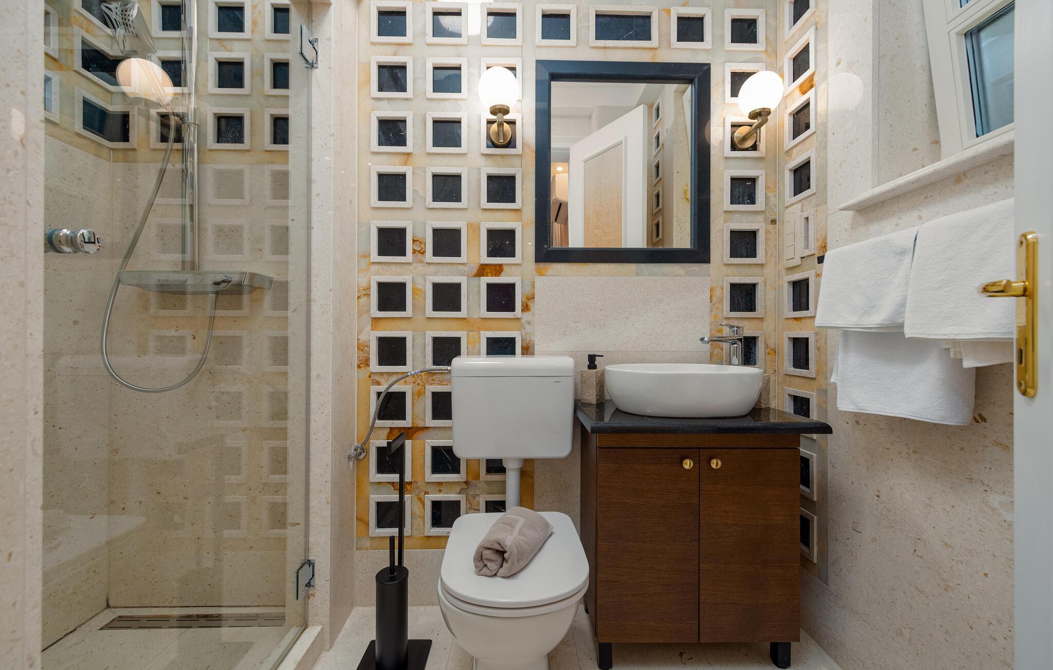 Badrum 5m2 (nr. 2) - WC: Varmt och kallt vatten. Dusch