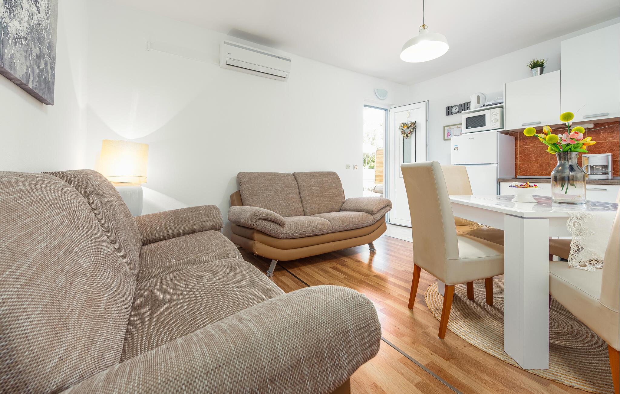 Povljana är en perfekt plats för din familjesemester. Förutom den närliggande stenstranden hittar du också sandstranden St Nicholas, som är särskilt lämplig för barnfamiljer. Det kristallklara havet är perfekt för simning och snorkling, och regionen erbjuder dig många möjligheter till utflykter. Utforska ön Pag med dess imponerande landskap och kulturella höjdpunkter eller ta en båttur längs den pittoreska kusten.