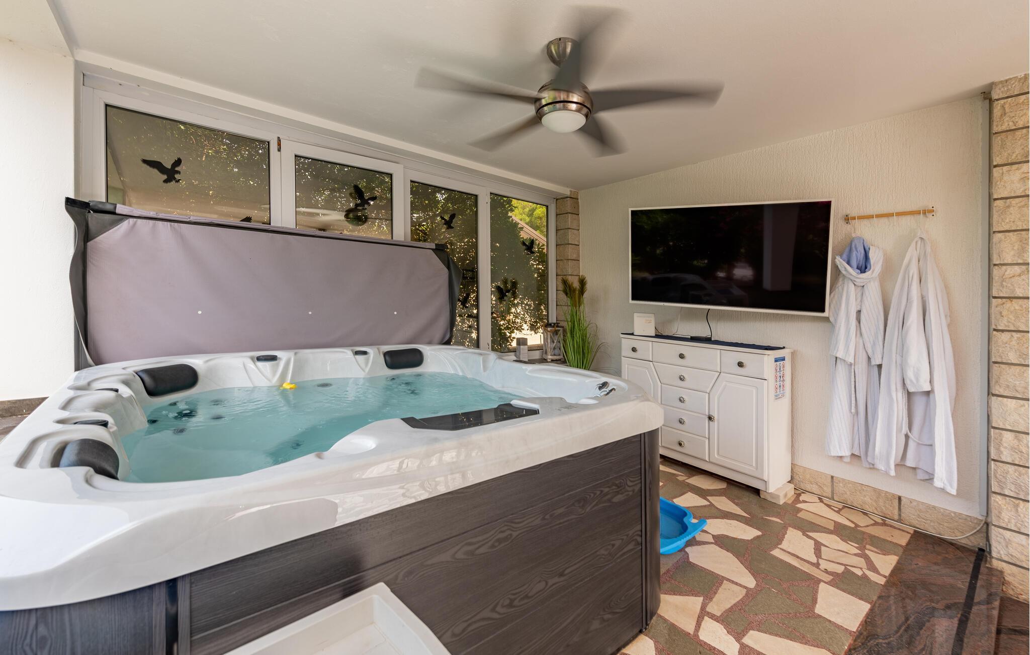 Se fram emot din semester i detta bekväma semesterhus med bubbelpool.