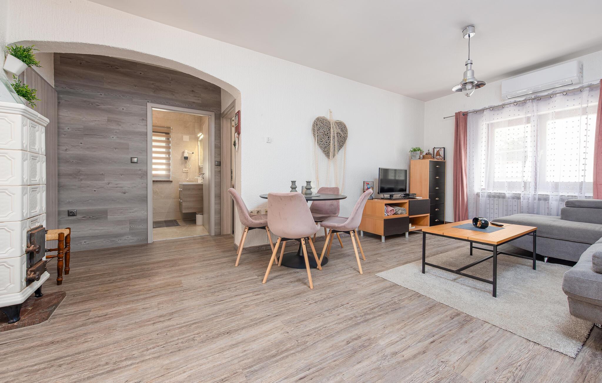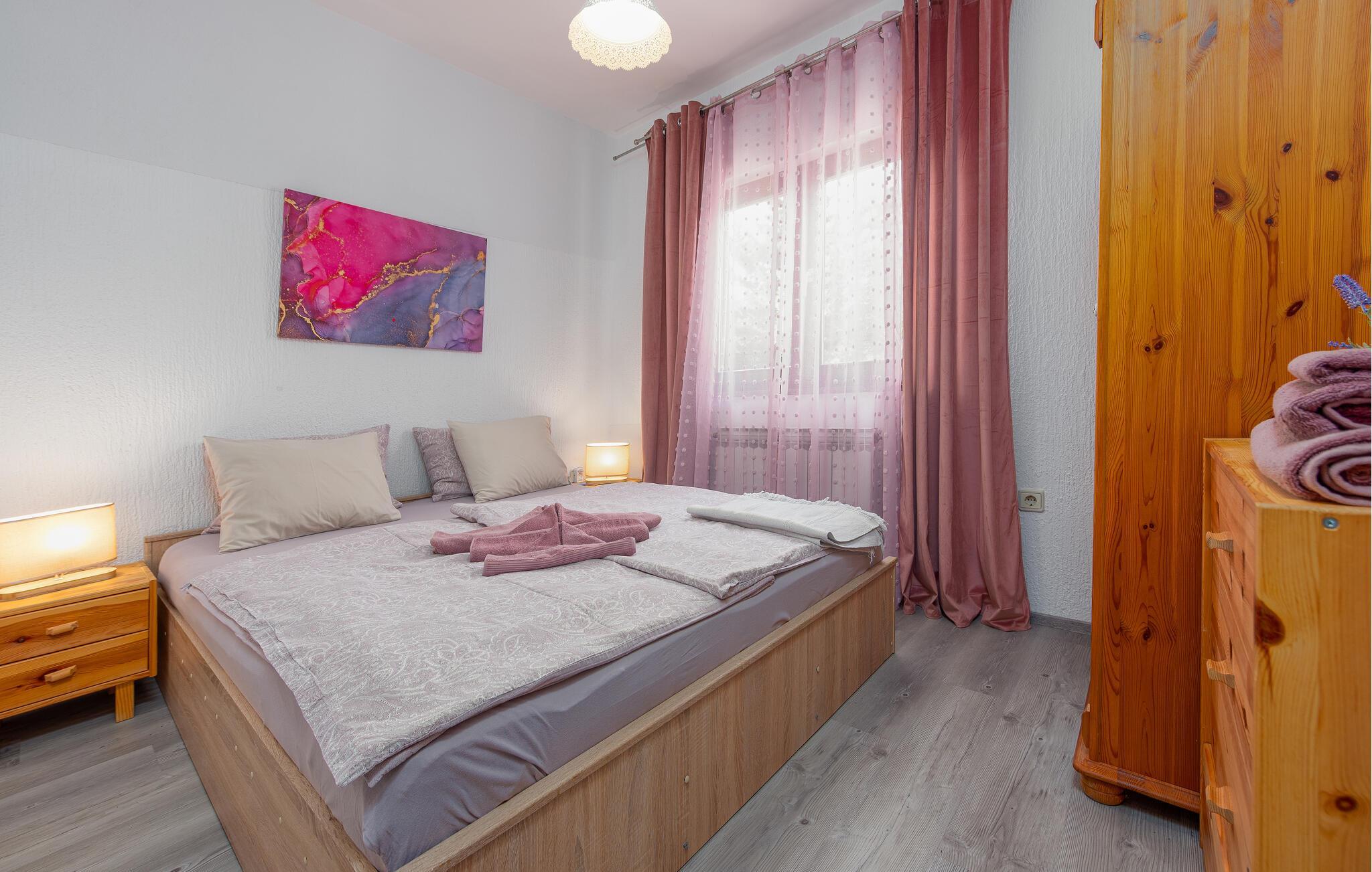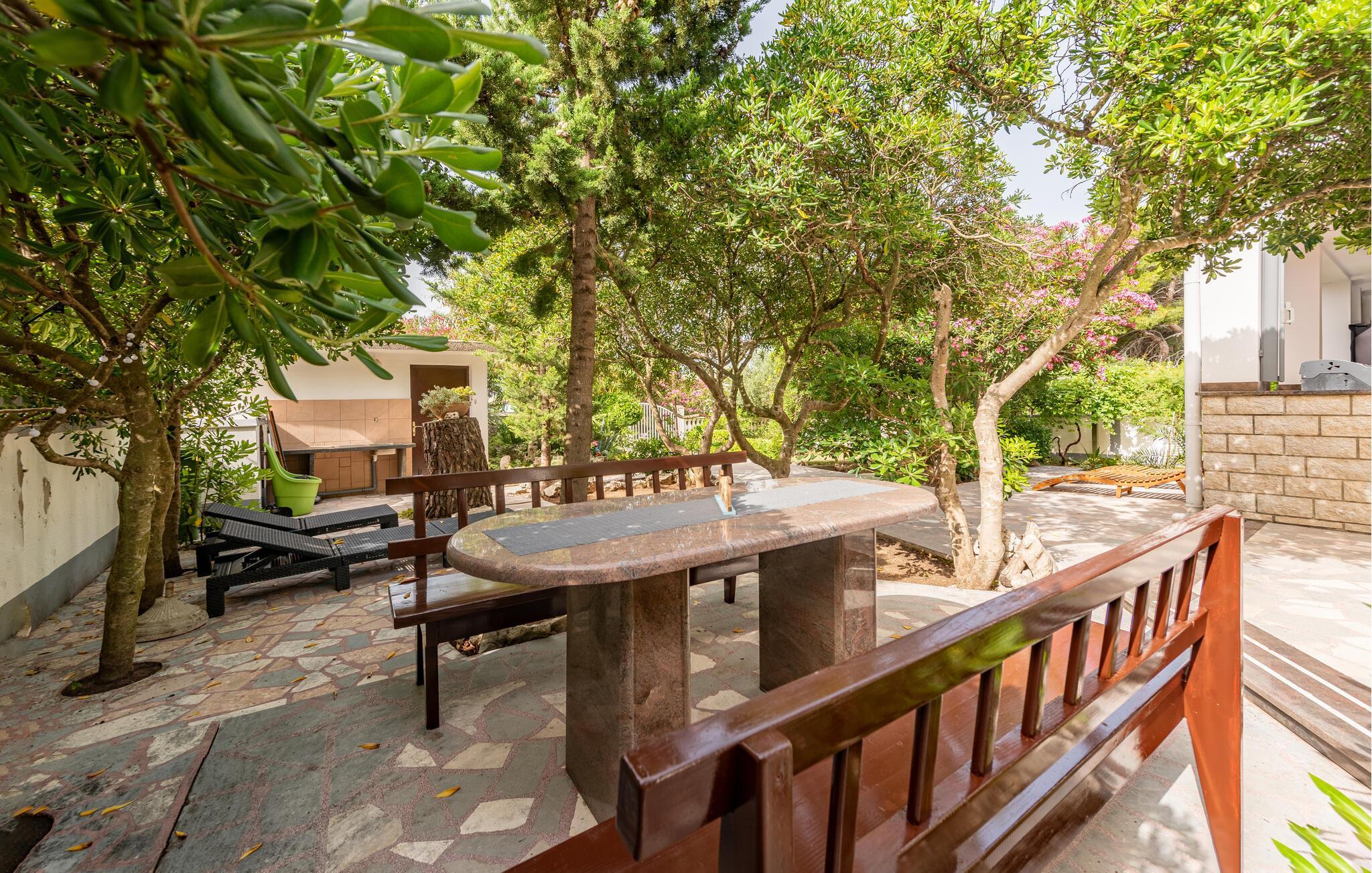 Njut av din semester i detta rymliga, moderniserade semesterhus i Povljana på ön Pag. Detta helt inhägnade semesterhus, där husdjur och barn är välkomna, ligger i omedelbar närhet av sandstranden. Husets moderna inredning och eleganta design skapar en mysig atmosfär. Det ljusa vardagsrummet erbjuder gott om utrymme för att koppla av, medan det välutrustade köket med öppen planlösning är perfekt för att laga mat tillsammans på kvällarna. Bekväma sovrum garanterar vilsamma nätter.
