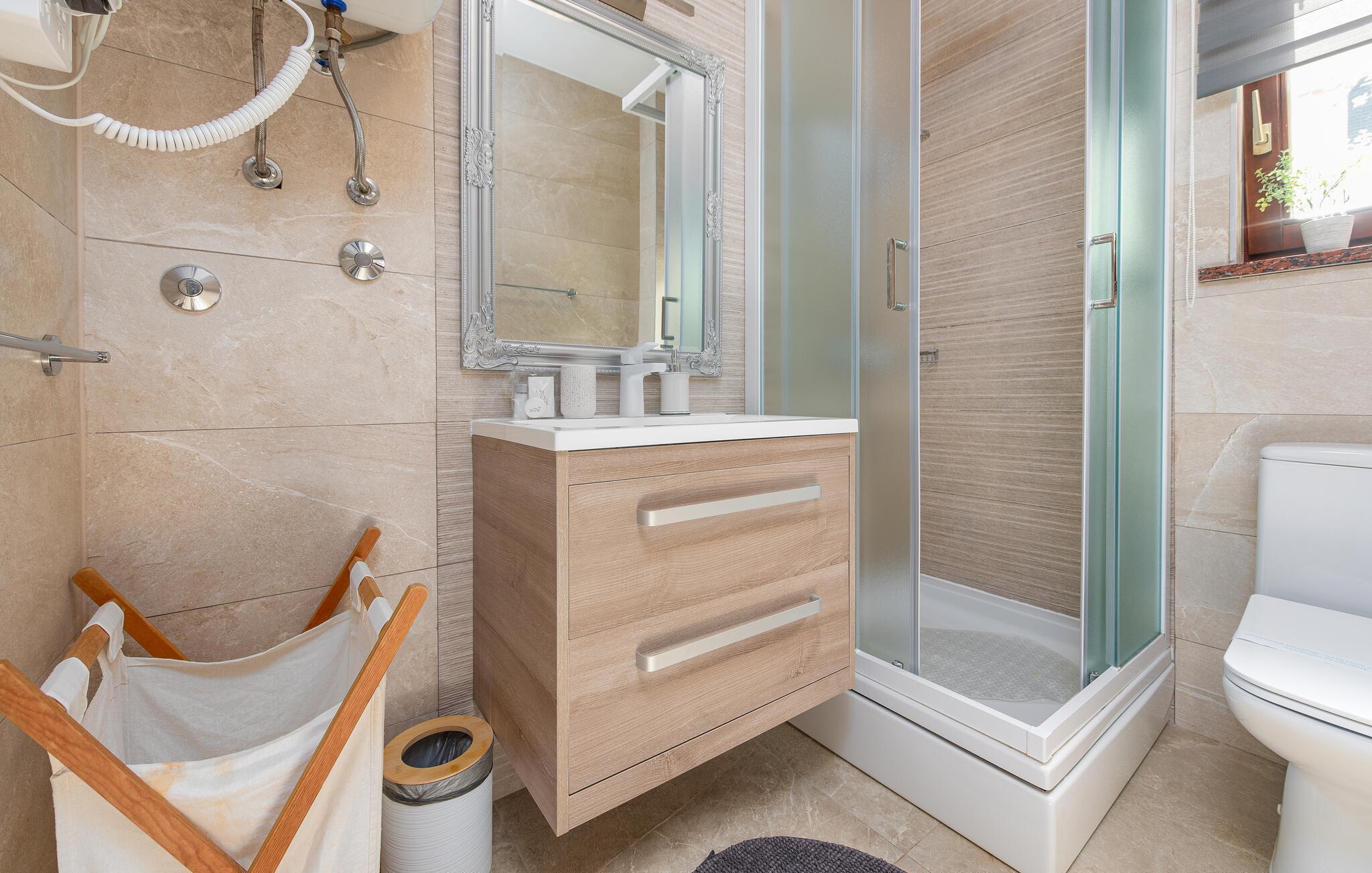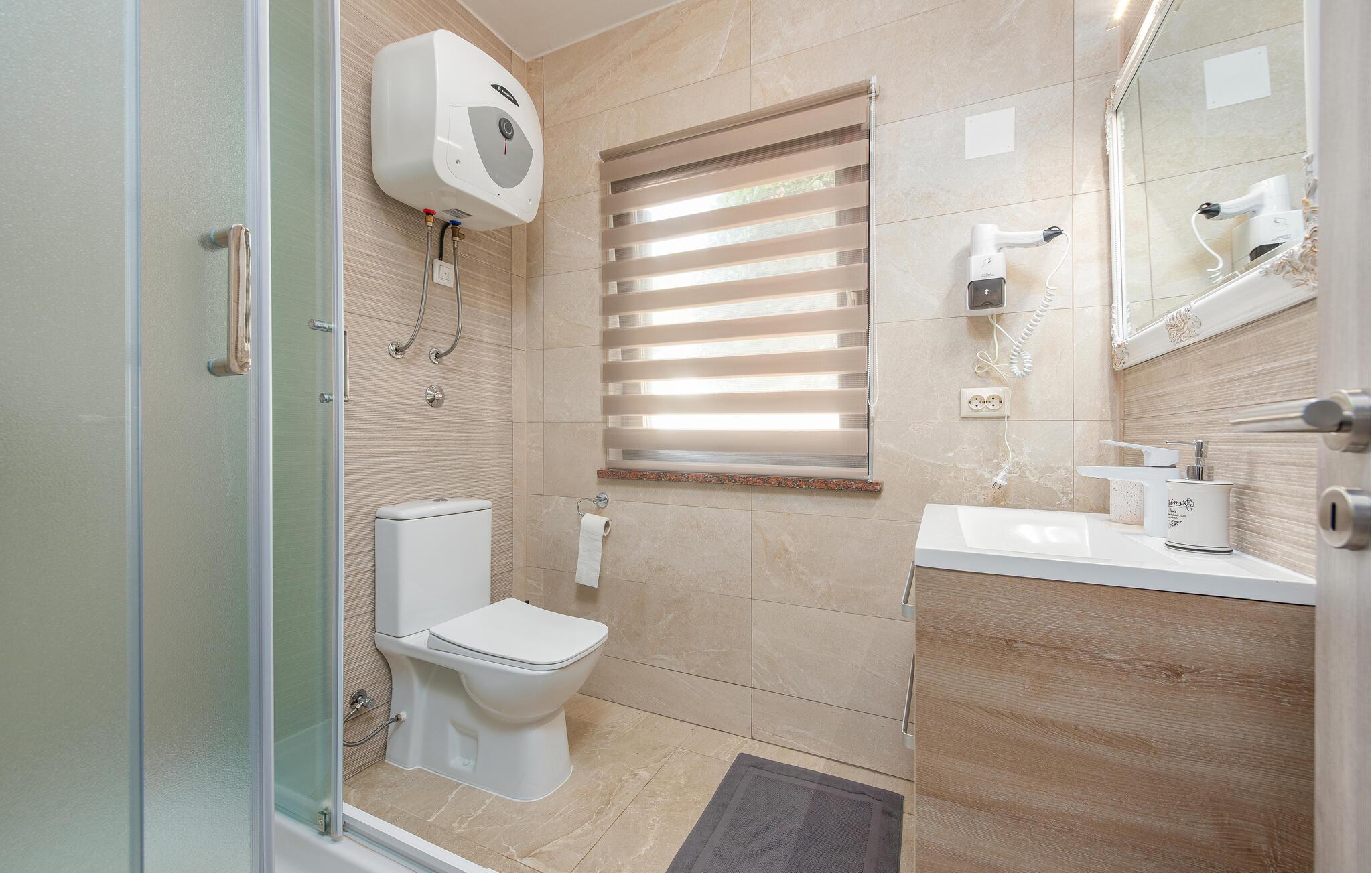 Badrum (nr. 2) - WC: Varmt och kallt vatten. Dusch