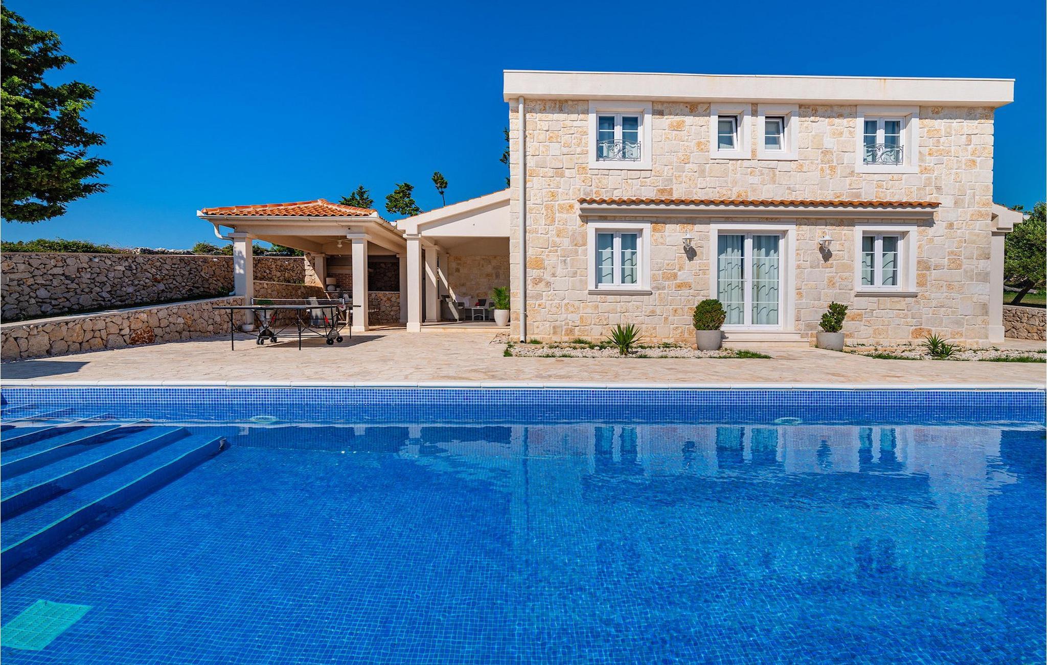 Upplev den äkta medelhavsatmosfären i Villa Toma nära staden Novalja, vars havsutsikt kommer att förtrolla dig. Villa Toma ligger bara 500 meter från den vackra stranden. Denna stenvilla har plats för totalt 12 personer i en rymlig och varm atmosfär. Villan är indelad i två våningar. På bottenvåningen finns ett vardagsrum, ett kök med matplats och ett rum med eget badrum. På första våningen finns 4 bekväma sovrum med eget badrum. Villan är verkligen prydd av sin innergård med en privat pool där du kan koppla av på solstolarna eller uppdatera dig i den privata poolen med utsikt över havet. Du kan också laga mat på grillen för middag med familj och vänner, och det finns också bordtennis för extra underhållning. Koppla av och njut av solnedgångarna på terrassen medan du umgås med dina nära och kära, packa dina väskor och bege dig till Villa Toma på ön Pag för en oförglömlig semester! Villa Toma ligger i den vackra staden Novalja på ön Pag. Ön Pag ligger norr om staden Zadar. Ön är förbunden med fastlandet via en bro och kan också nås med färja. Staden Novalja har också bra förbindelser med färja till de omgivande öarna. Ön erbjuder vackra stränder, utmärkta restauranger, kaféer, klubbar och sport- och underhållningsaktiviteter. Ön är känd för Pag-osten, Pag-spetsen och det historiska Soline. Pag-osten tillverkas av mjölk från lokala Pag-får. Det finns ett antal nationalparker i närheten: Krka nationalpark, Norra Velebit nationalpark, Paklenica nationalpark och Plitvicesjöarna.