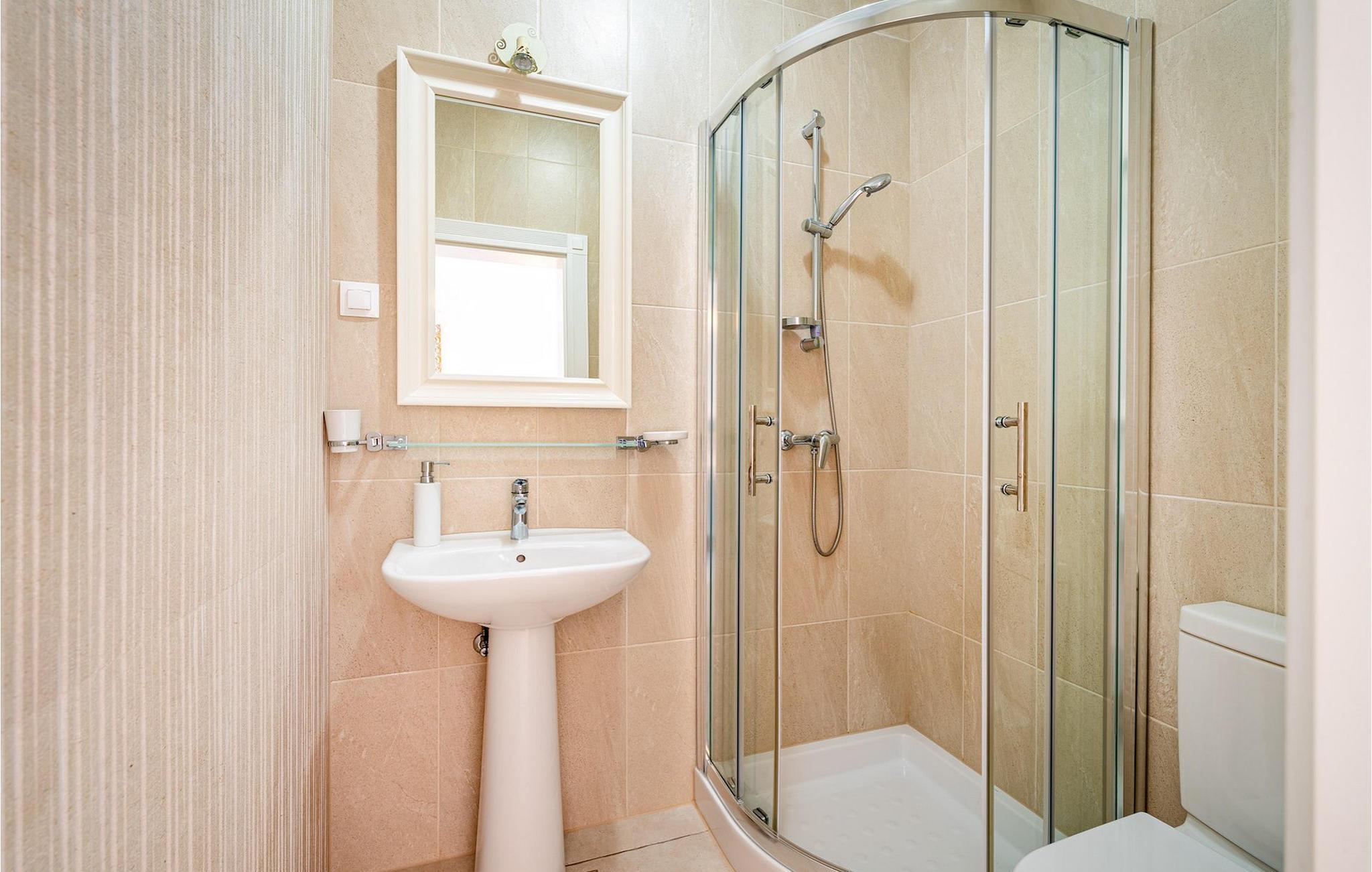 Badrum (nr. 5) - WC: Varmt och kallt vatten. Dusch