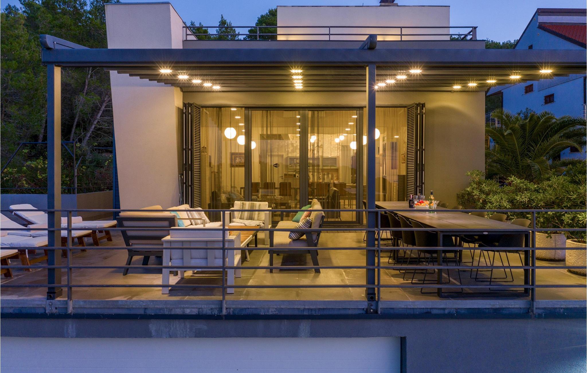 Utanför finns en täckt terrass och en grillplats med gott om plats för avkopplande timmar i en fridfull medelhavsatmosfär. Njut av den hisnande havsutsikten från den rymliga terrassen eller koppla av i den privata poolen.