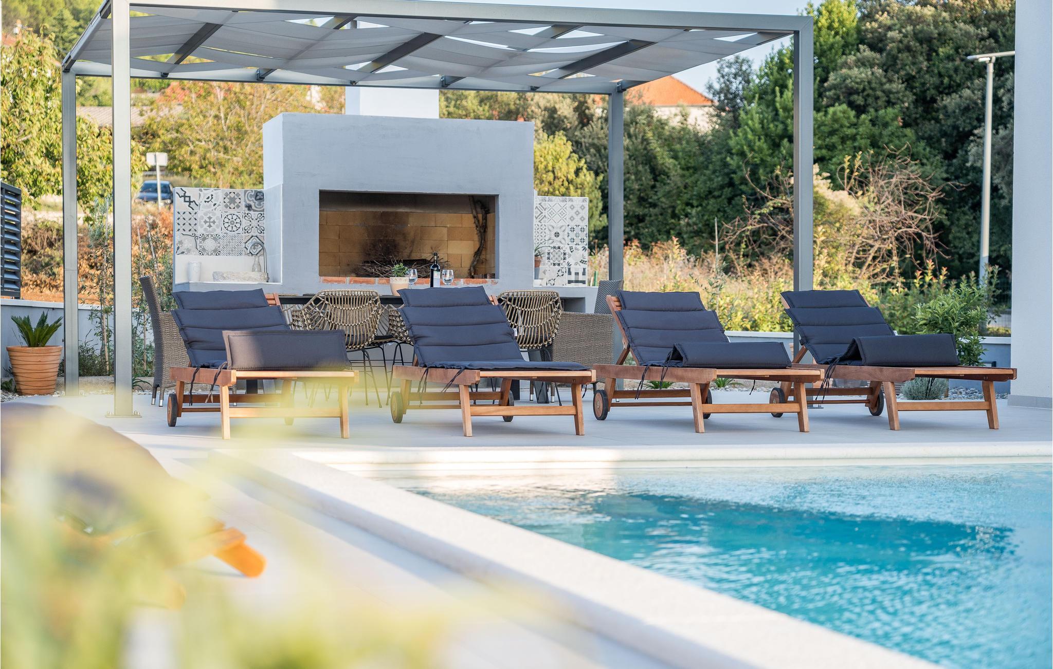 Njut av uppfriskande timmar i poolen och låt blicken vandra över det glittrande havet och de omgivande kullarna. Slå dig ner i solstolarna och koppla av i det varma kvällsljuset, som ger terrassen en särskilt stämningsfull atmosfär. Tillbringa mysiga stunder utomhus, oavsett om det är med en drink, chattar eller bläddrar igenom din semesterläsning.