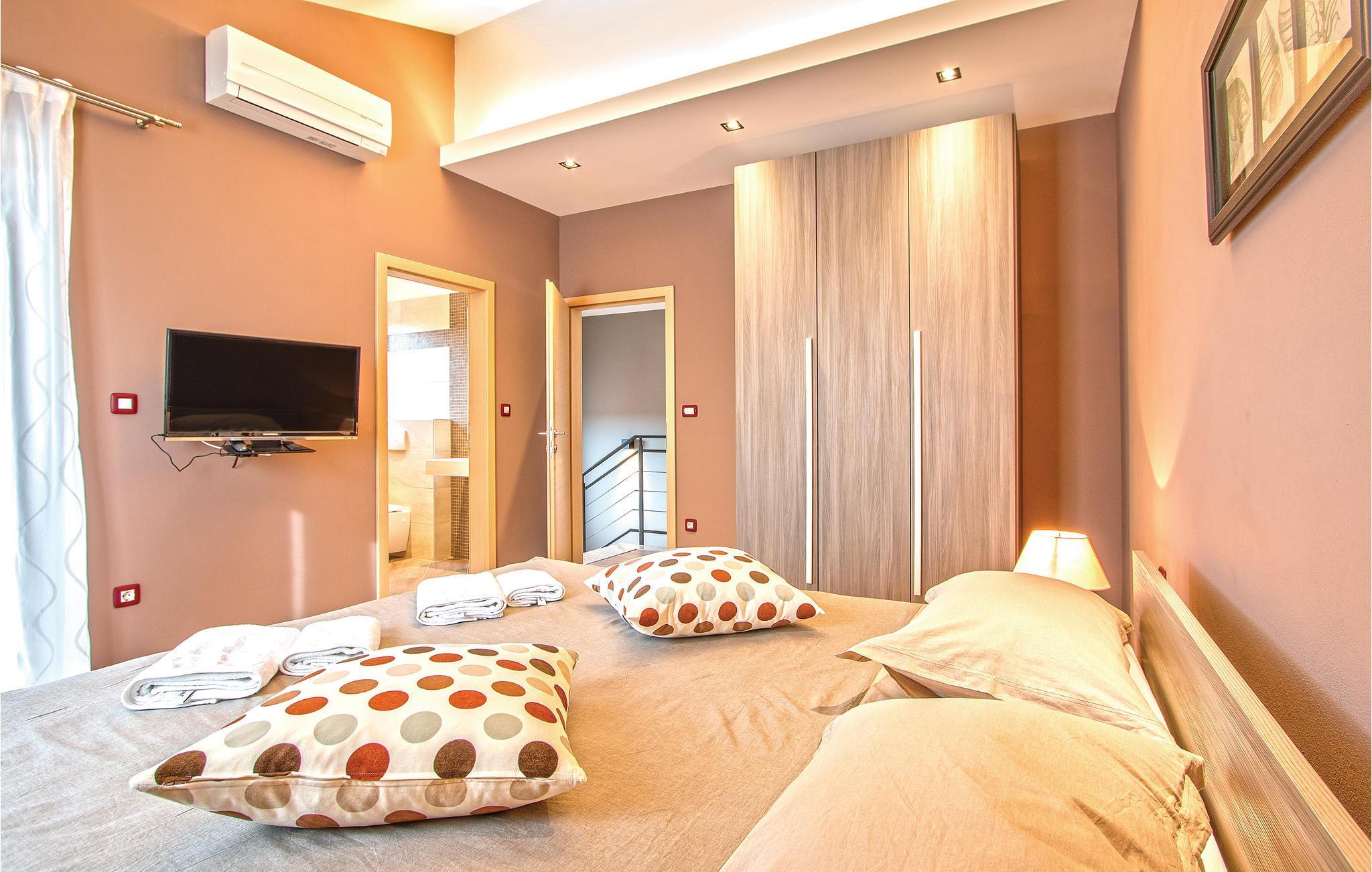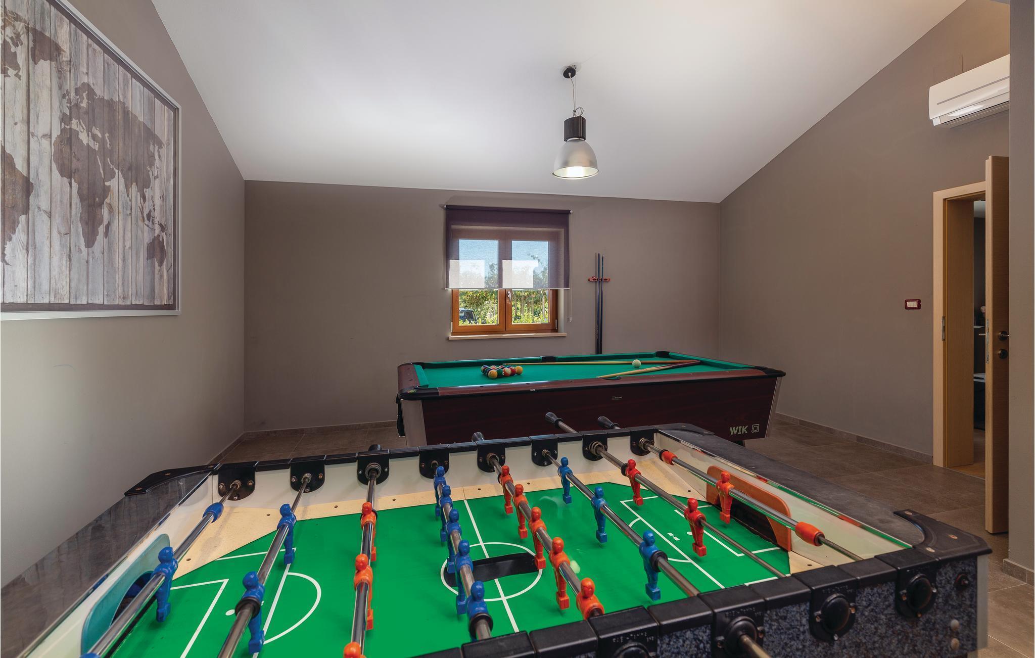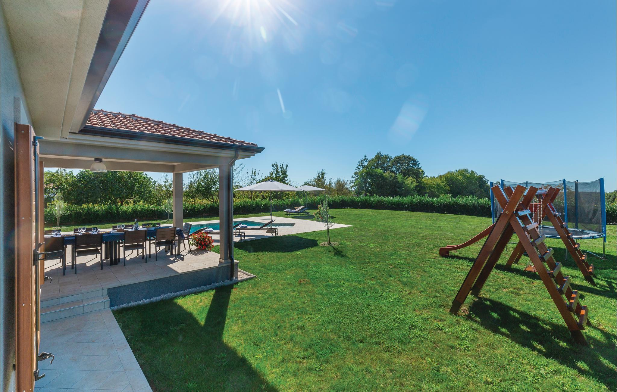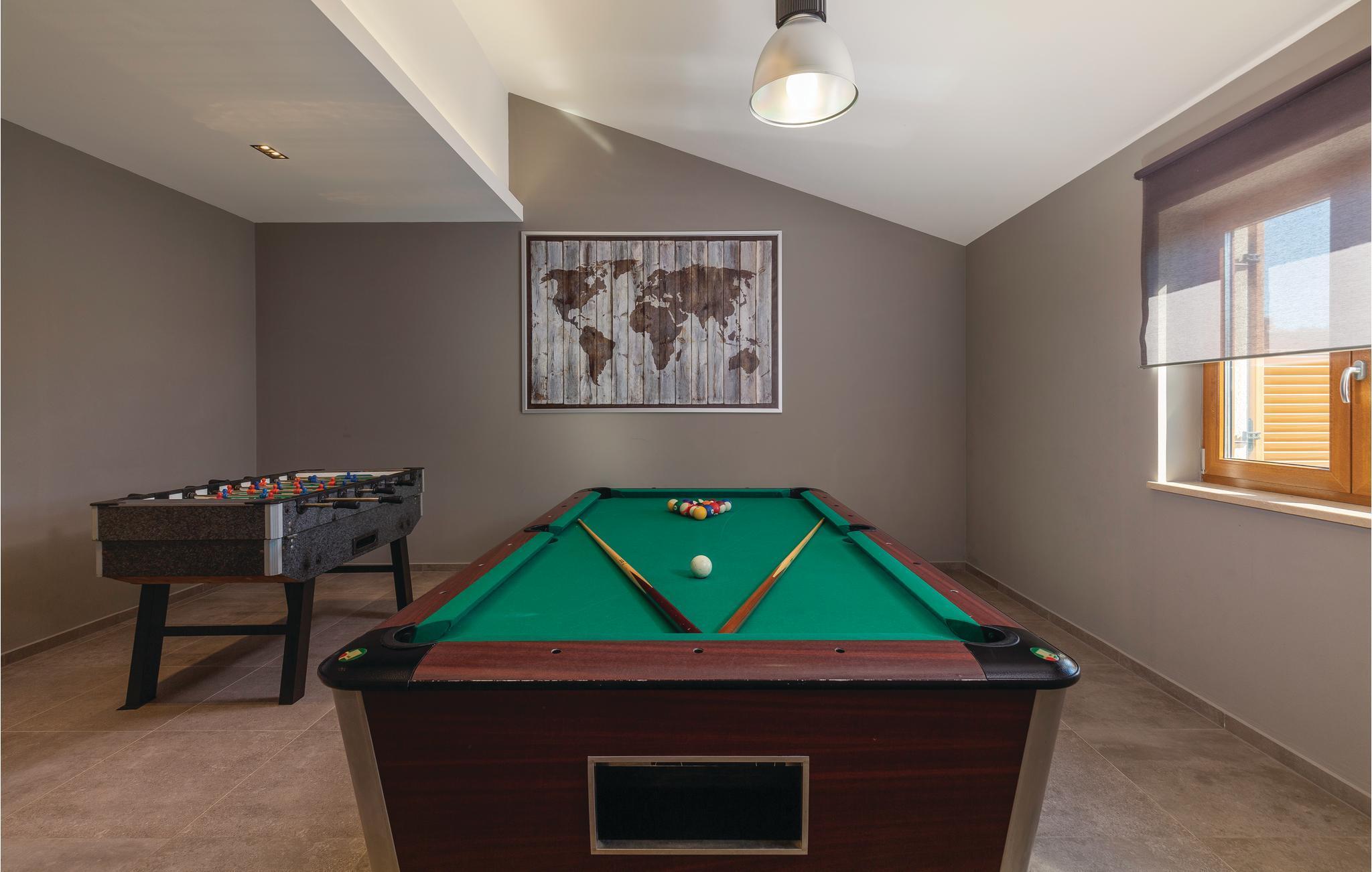 Detta eleganta semesterhus med pool ligger i en liten by, inte långt från Pazin. Njut av detta bekväma semesterboende med den vackra inredningen. Sovrummet och vardagsrummet är luftkonditionerade. Friska upp dig i poolen eller koppla av vid massagestrålarna. För kulinariska läckerheter kan du upptäcka agroturismen i denna region, som erbjuder traditionella istriska specialiteter. Gör utflykter till havet och besök den historiska staden Pula med många sevärdheter från antiken. Inte bara det, det finns också fynd från stenåldern och till och med dinosauriefotspår i regionen.