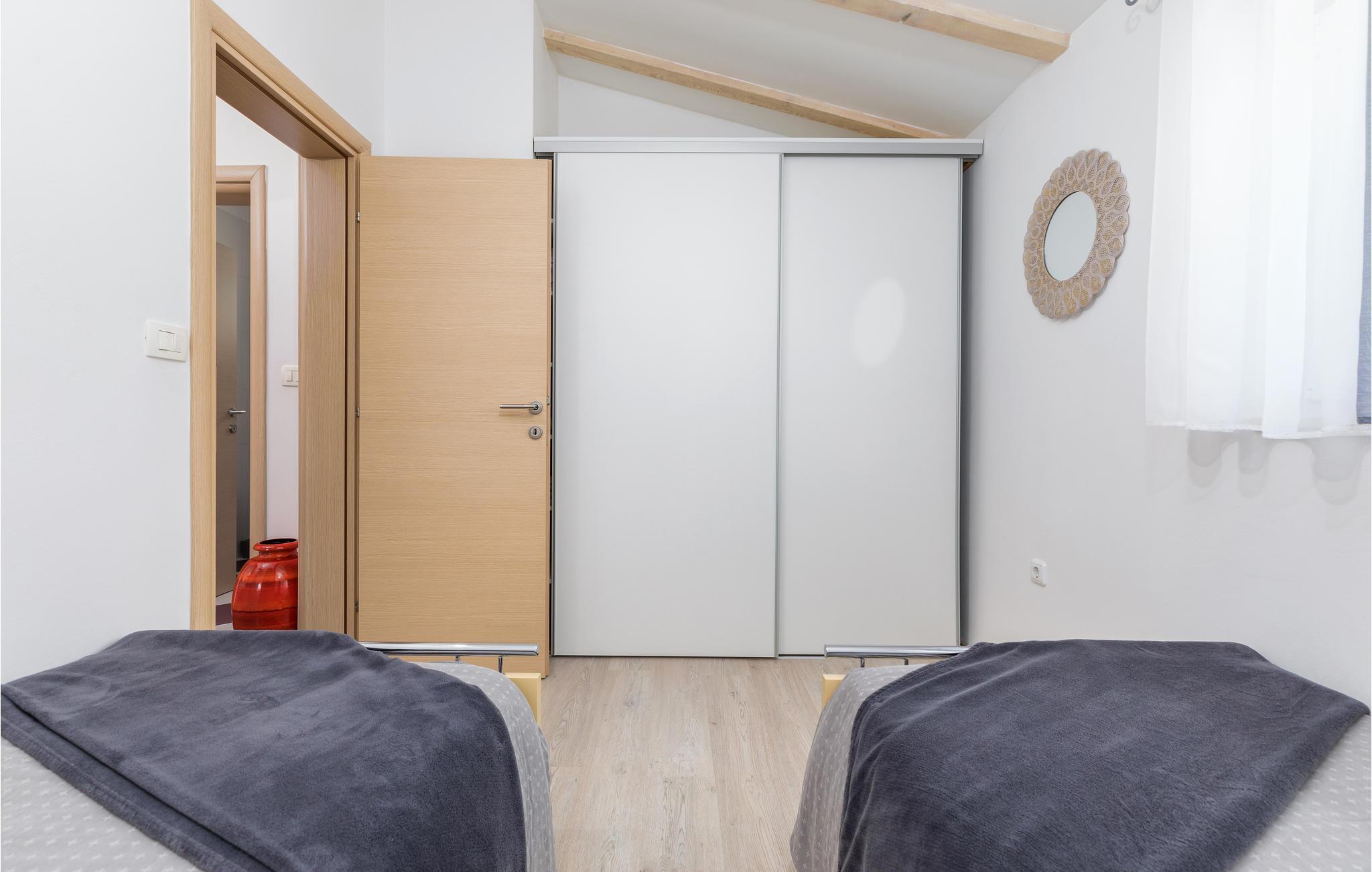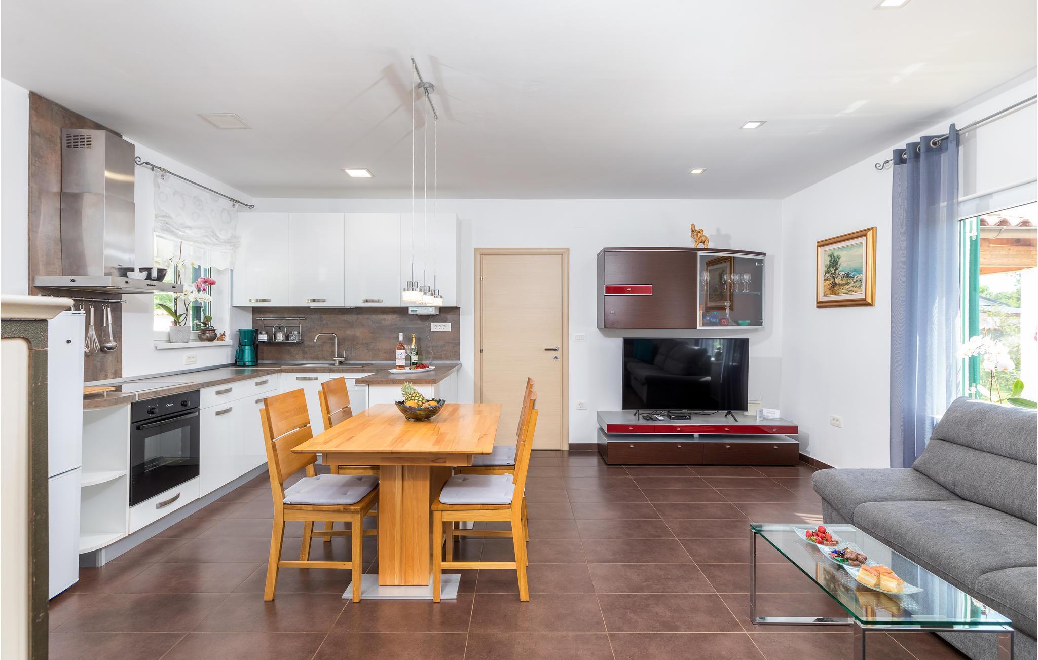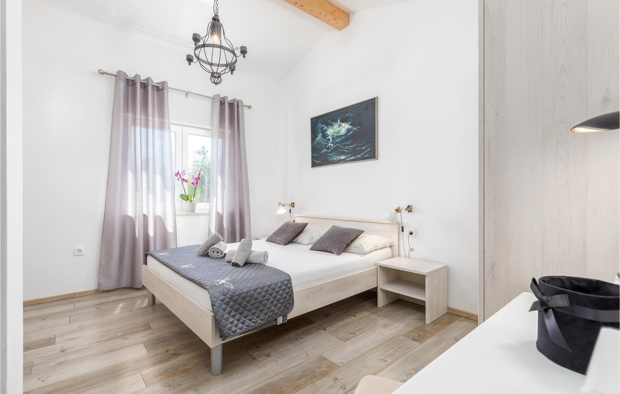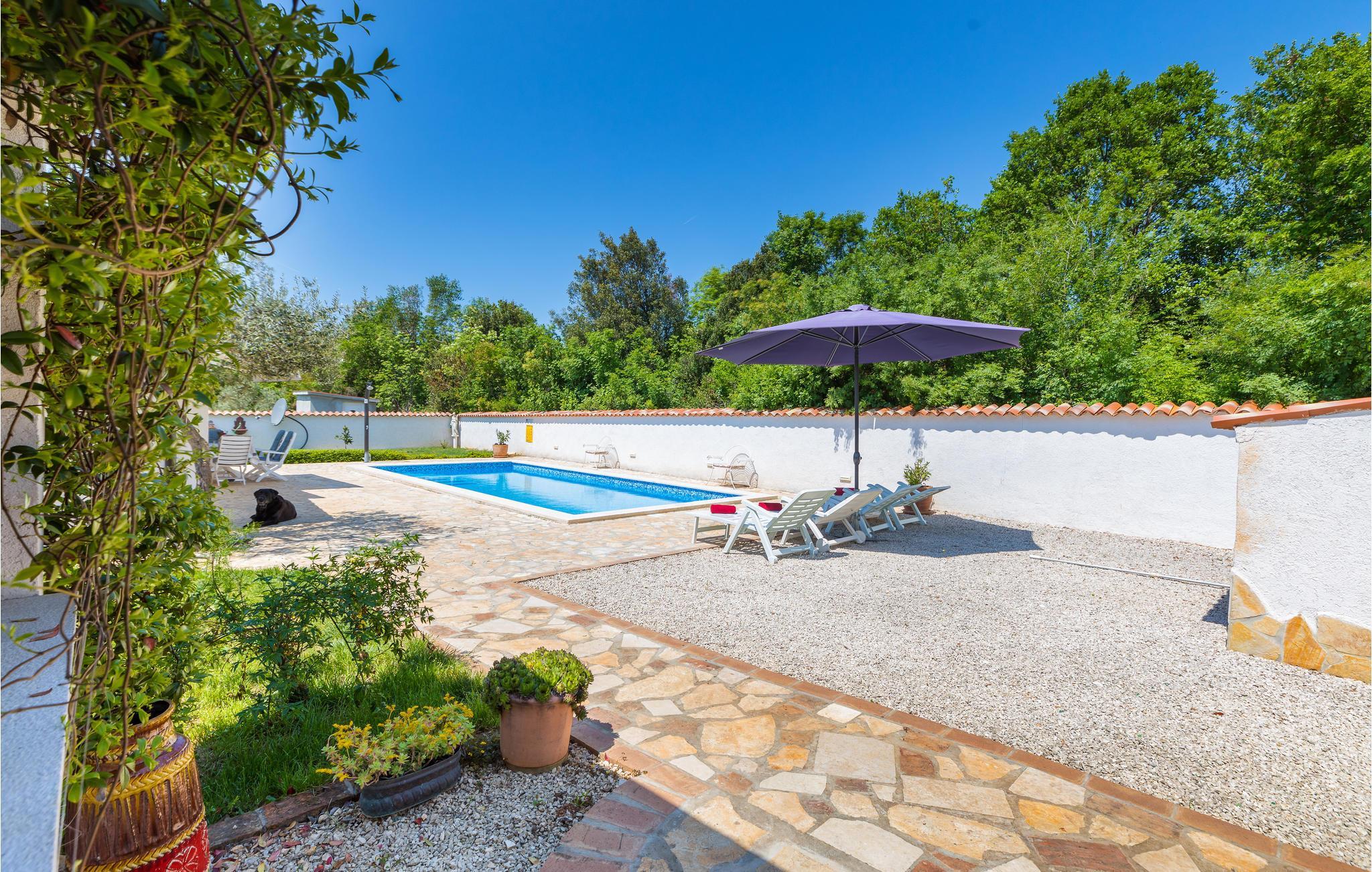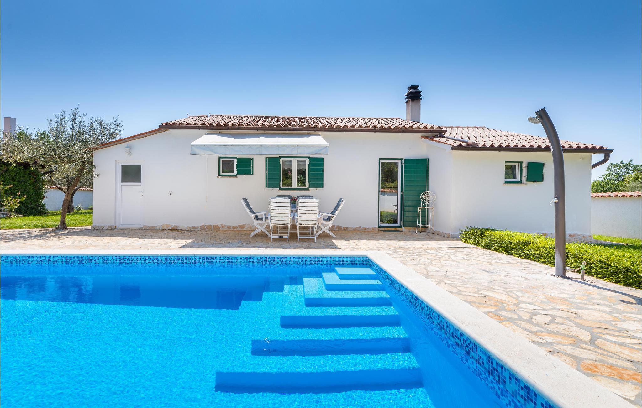 Detta underbara semesterhus är unikt på många sätt och erbjuder sina gäster en underbar boendemiljö i en fridfull omgivning. Det är omgivet av mycket grönska och ligger nära infarten till staden Pula. De närmaste badstränderna och stadens centrum nås på några minuter med bil. Interiörerna är smakfullt inredda och består av ett matkök med matplats, ett sovrum och ett badrum. På den inhägnade fastigheten finns en pool, terrasser och ett utekök där du kan tillbringa de vackra sommardagarna och kvällarna med avkoppling. Besök amfiteatern i Pula som är värd att se.