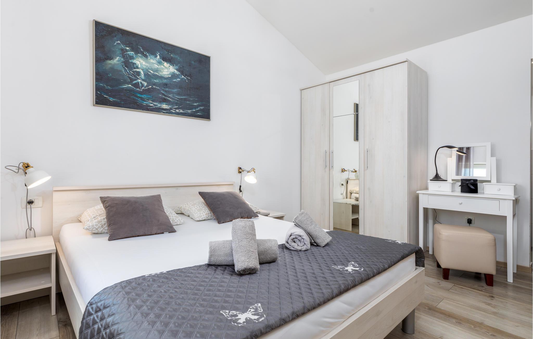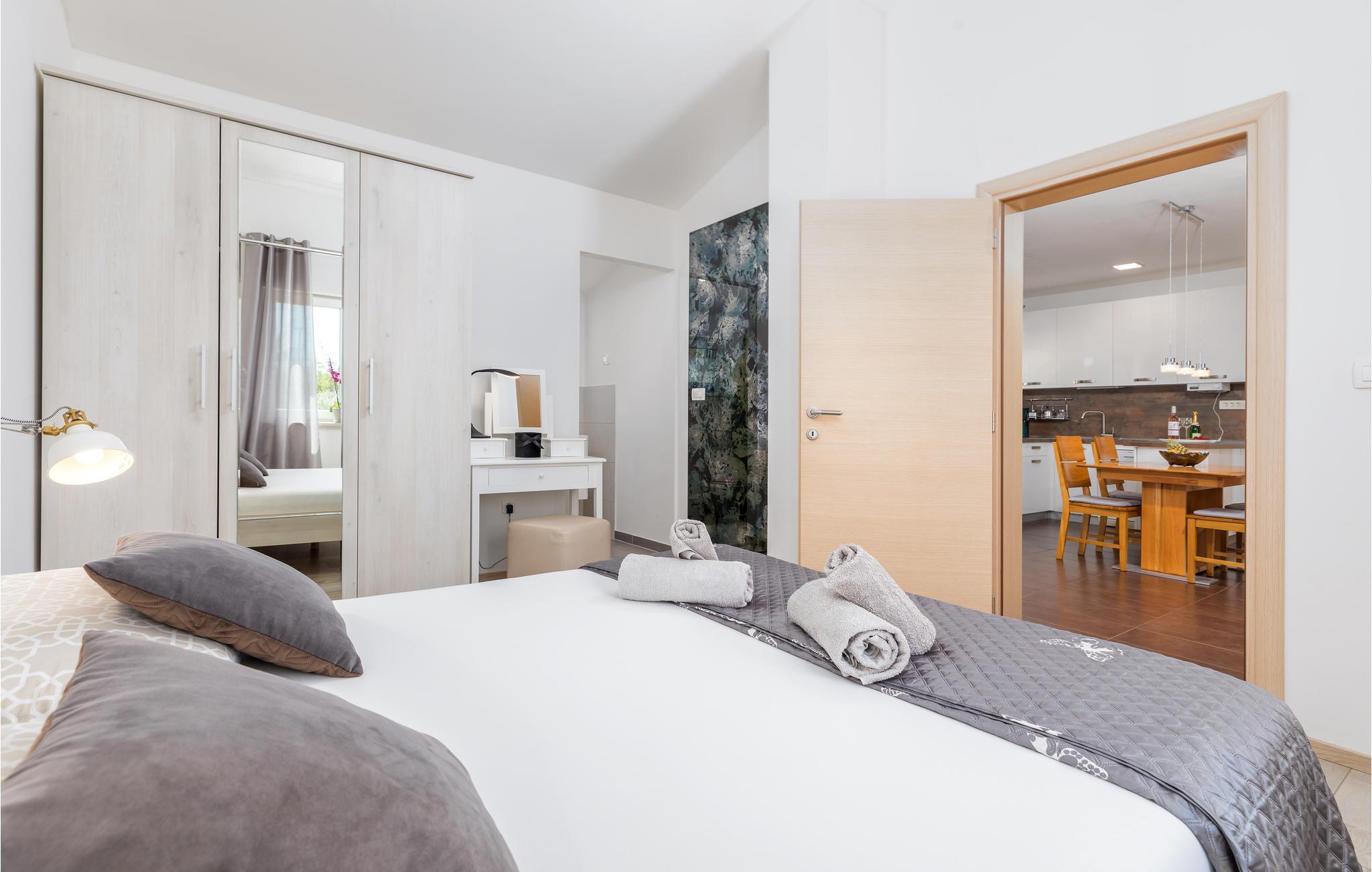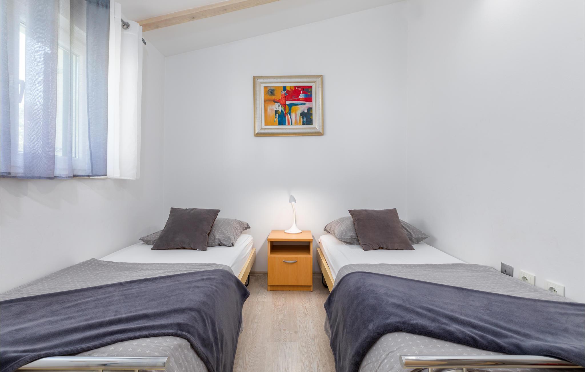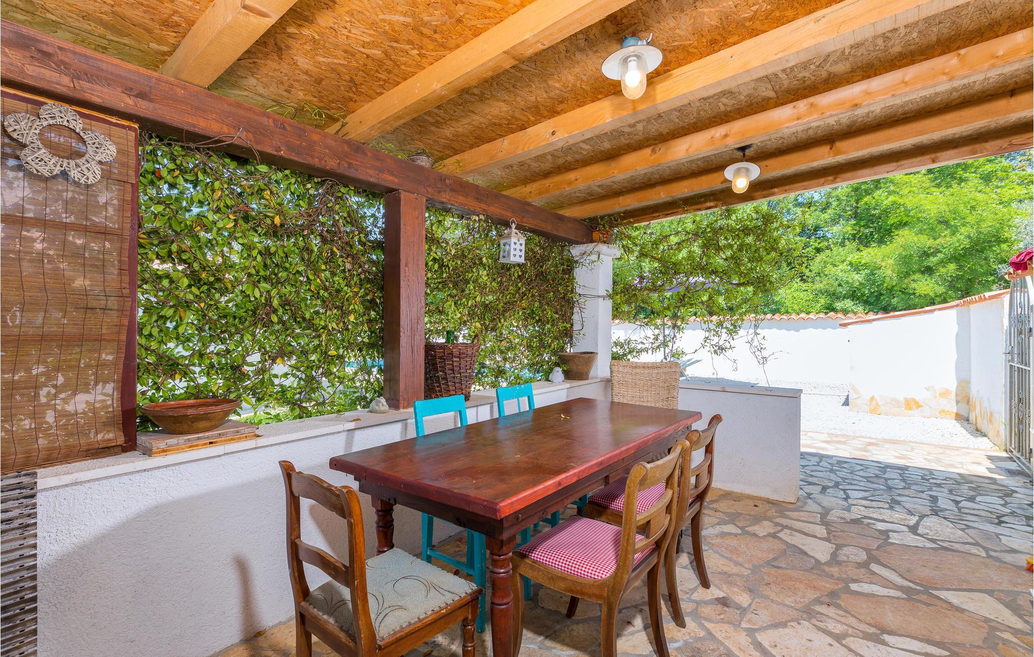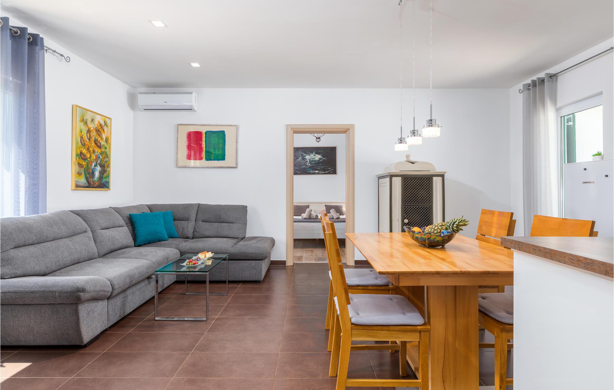 Detta underbara semesterhus är unikt på många sätt och erbjuder sina gäster en underbar boendemiljö i en fridfull omgivning. Det är omgivet av mycket grönska och ligger nära infarten till staden Pula. De närmaste badstränderna och stadens centrum nås på några minuter med bil. Interiörerna är smakfullt inredda och består av ett matkök med matplats, ett sovrum och ett badrum. På den inhägnade fastigheten finns en pool, terrasser och ett utekök där du kan tillbringa de vackra sommardagarna och kvällarna med avkoppling. Besök amfiteatern i Pula som är värd att se.