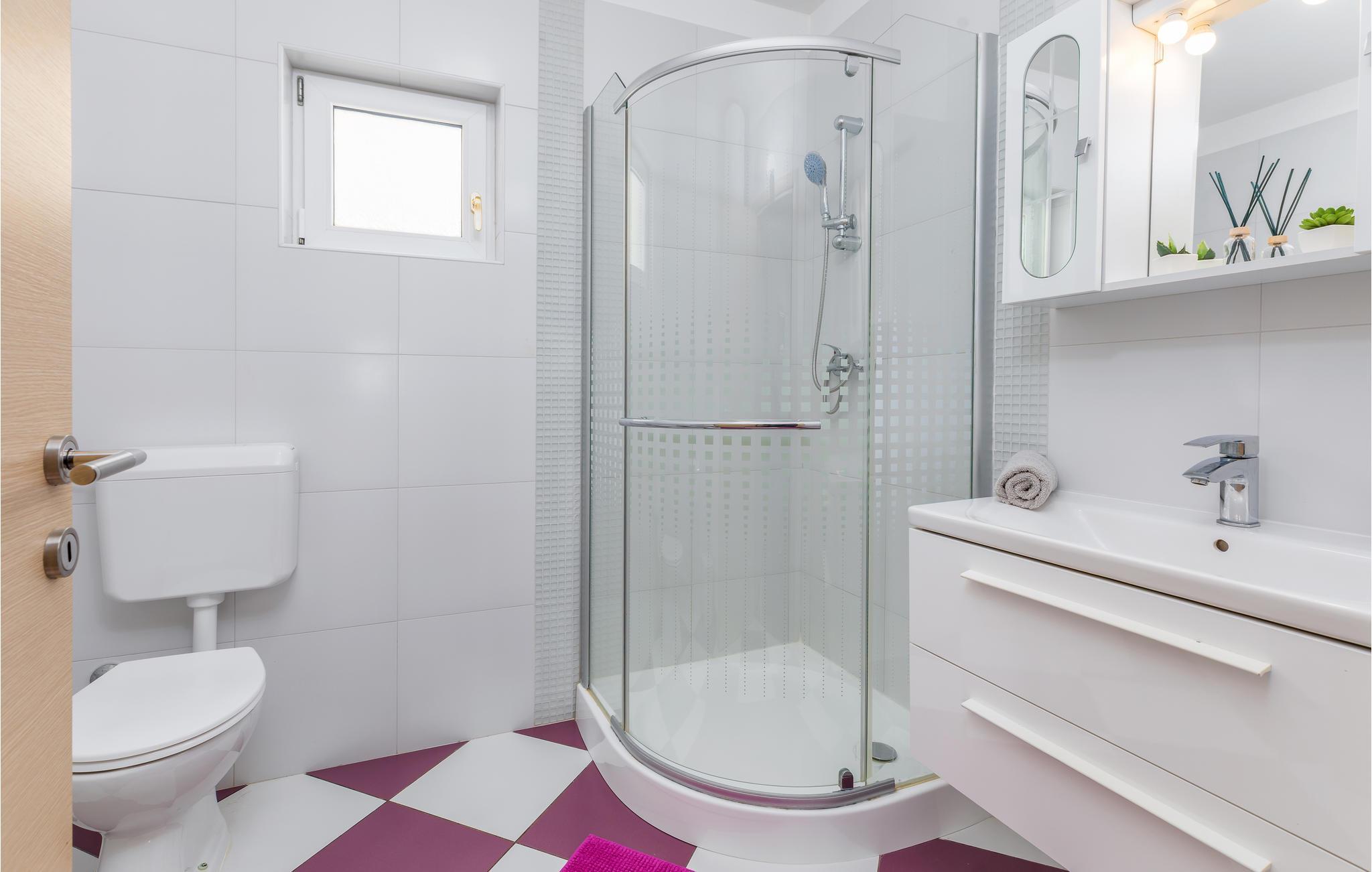 Badrum (nr. 2) - WC: Varmt och kallt vatten. Dusch