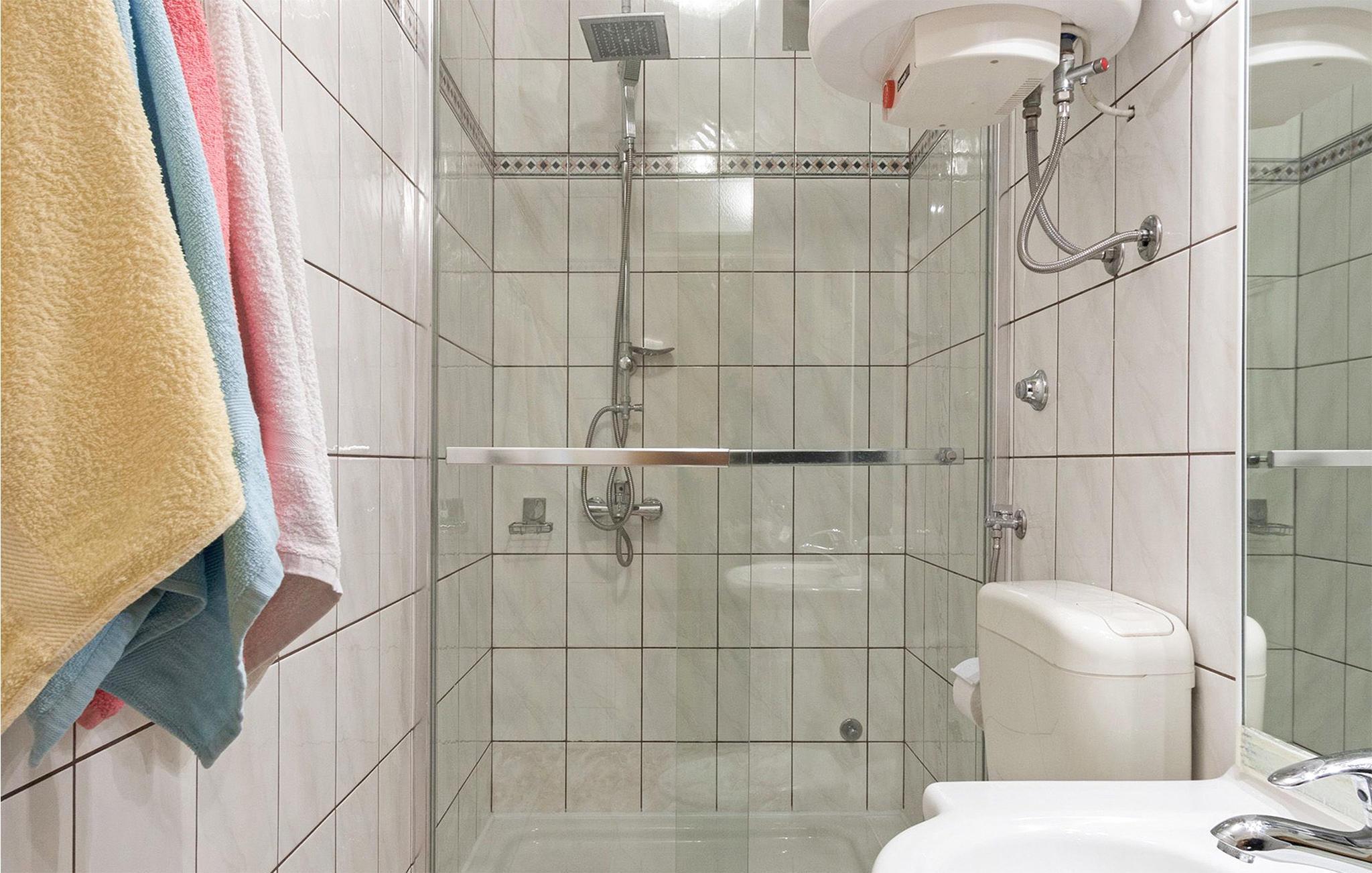 Badrum (nr. 1) - WC: Varmt och kallt vatten. Dusch