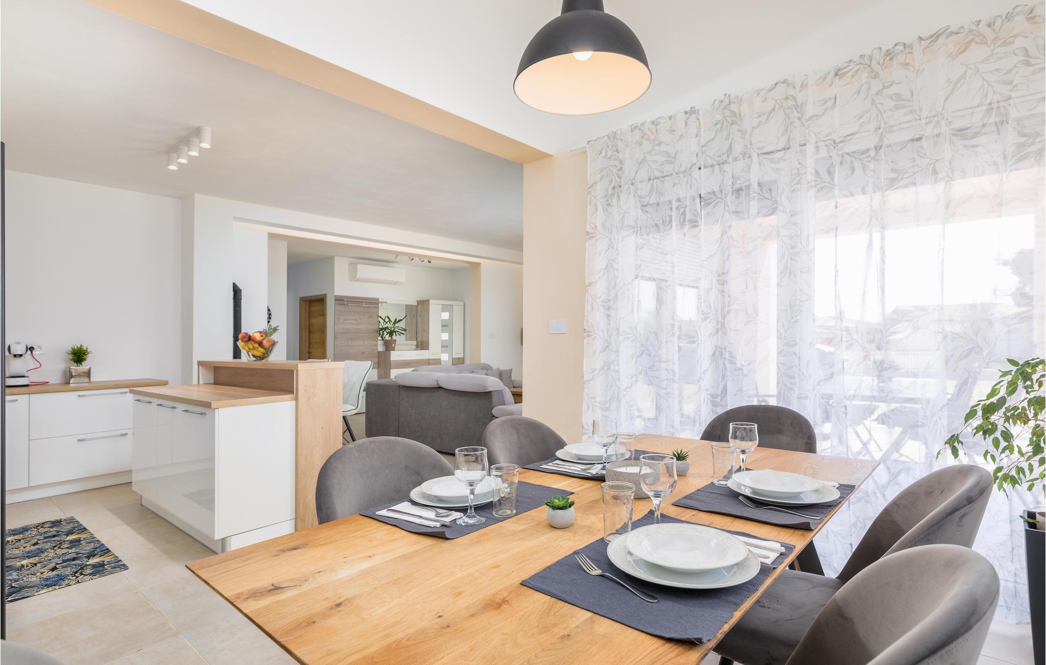 Här talar vi om ett rymligt hus med en otroligt bekväm och dagsljusbelyst inredning. De snygga detaljerna blandat med skickligt använda trädetaljer och mysiga sittplatser gör detta till en plats som du kommer att älska att kalla ditt tillfälliga hem. Tänk dig att tillbringa avkopplande timmar här med din familj eller dina vänner, äta måltider tillsammans eller ha spelkvällar. Luftkonditioneringen kommer att hålla dig sval på varma sommardagar, och den stora trädgården med faciliteter för barn och en grill kommer att vara ett idealiskt komplement till detta hus.