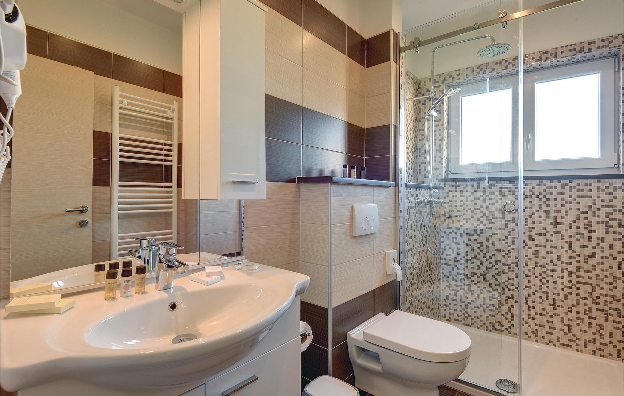 Badrum (nr. 1) - WC: Varmt och kallt vatten. Dusch