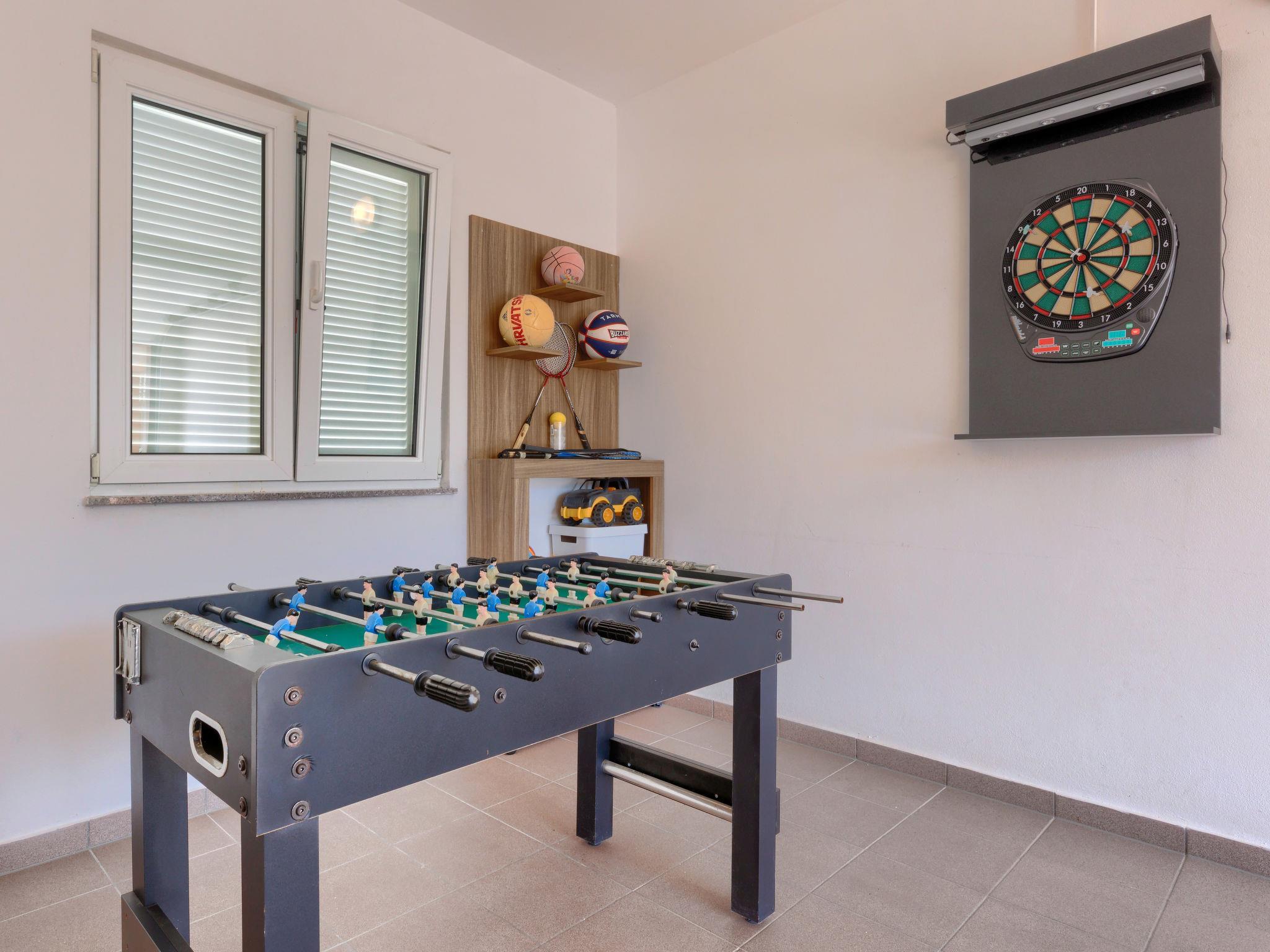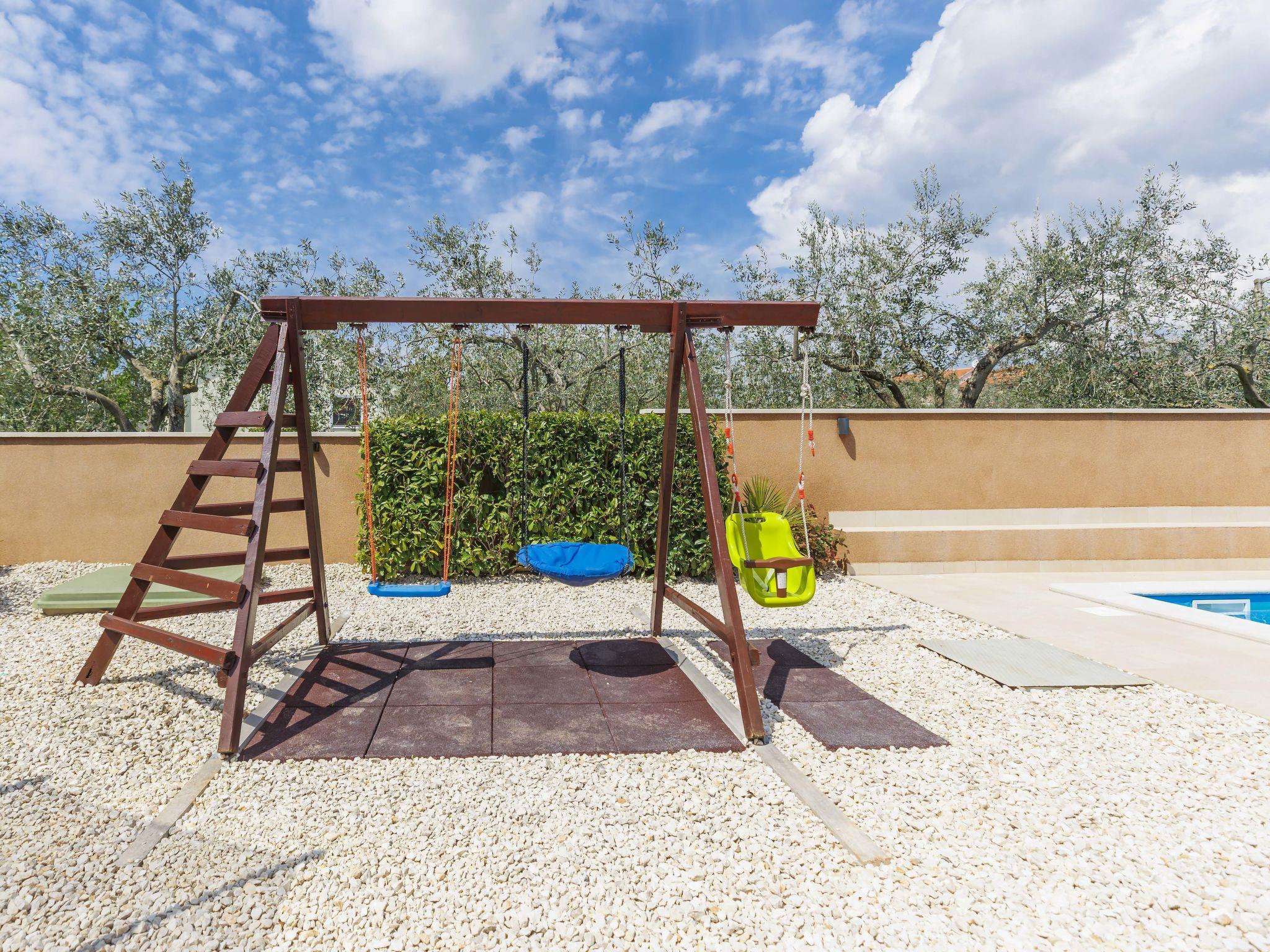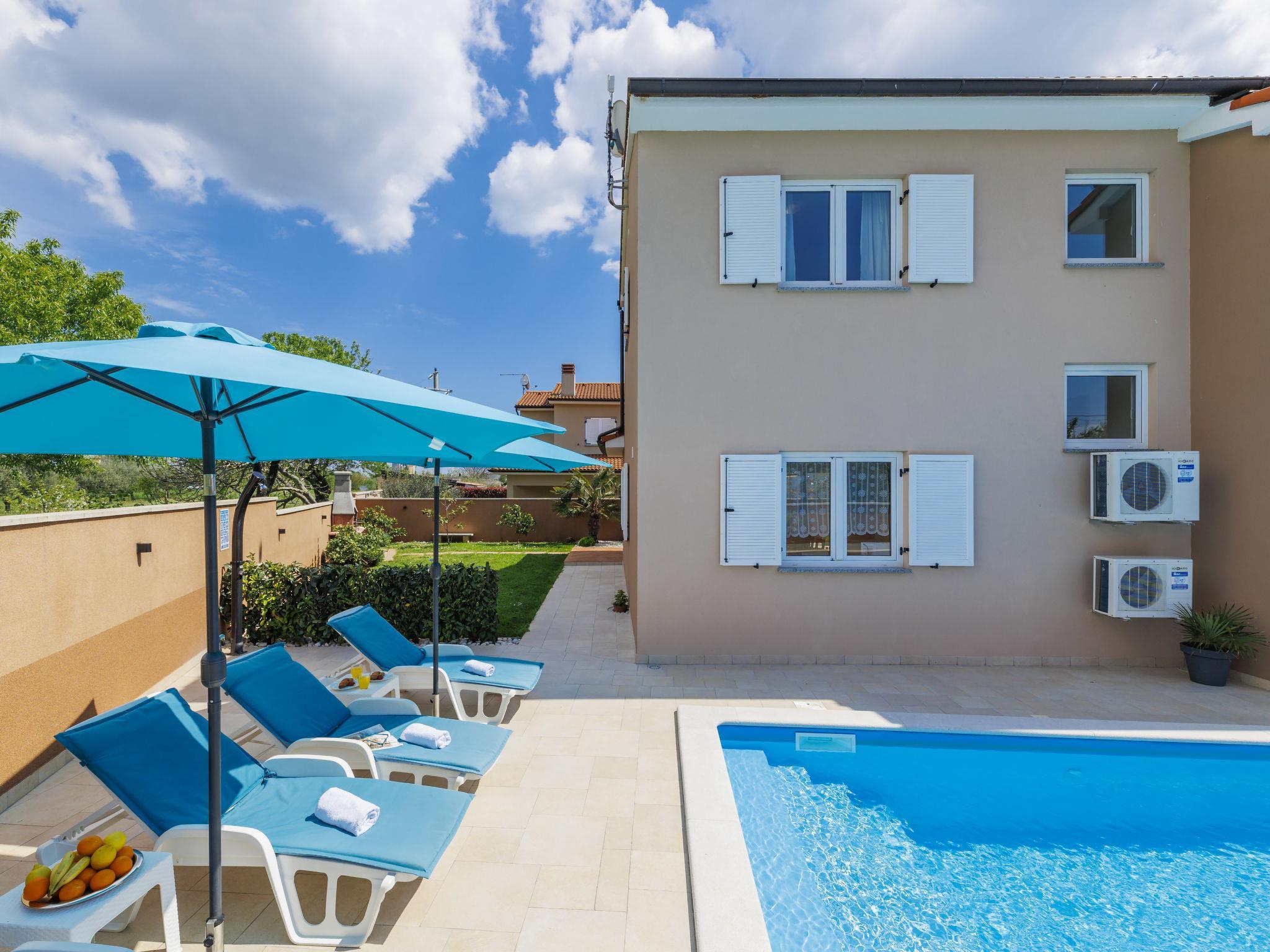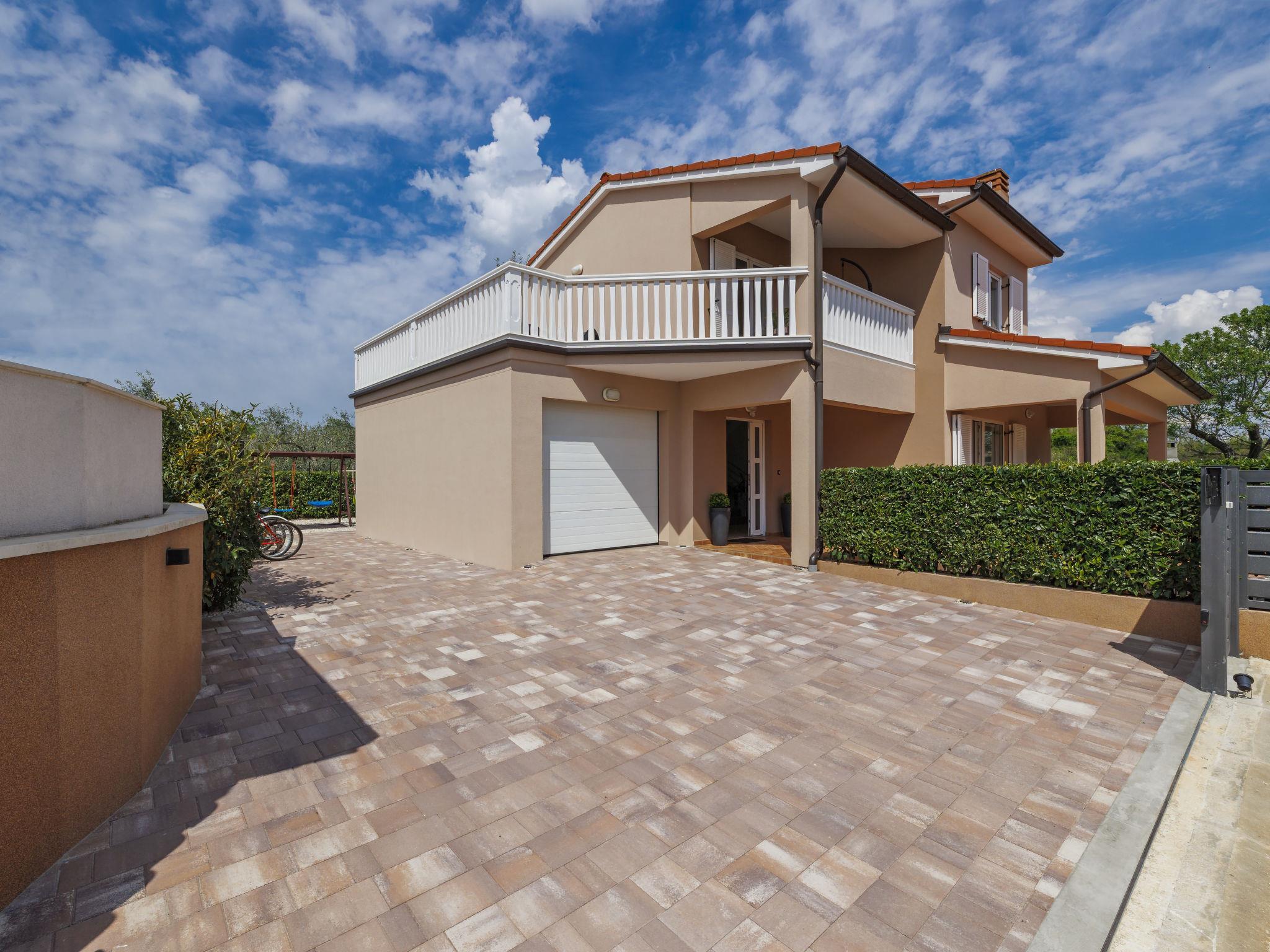 Beautiful single-family house "Villa Vesna", 2 storeys. In the hamlet Loborika 6 km from the centre of Pula, in a quiet, sunny position, 7 km from the sea. Private: property 500 m2 (fenced), small garden with lawn and wildlife garden, swimming pool angular (8 x 4 m, depth 140 cm, seasonal availability: 15.Apr. - 15.Oct.) with internal staircase. Outdoor shower, terrace (20 m2), garden furniture, barbecue (swing), pool maintenance by the owner/gardener. In the house: internet access, table football, trampoline, washing machine. Available: bicycles (4), children's bicycles (1). Parking (for 2 cars) at the house on the premises. E-charging station. Shop 250 m, restaurant 350 m, bus stop 250 m, sandy beach 11 km pebble beach 8 km. Surf school 13 km, tennis 11 km, riding stable 13 km, walking paths from the house 100 m, cycle lane 150 m. Nearby attractions: Amphitheater 7 km.