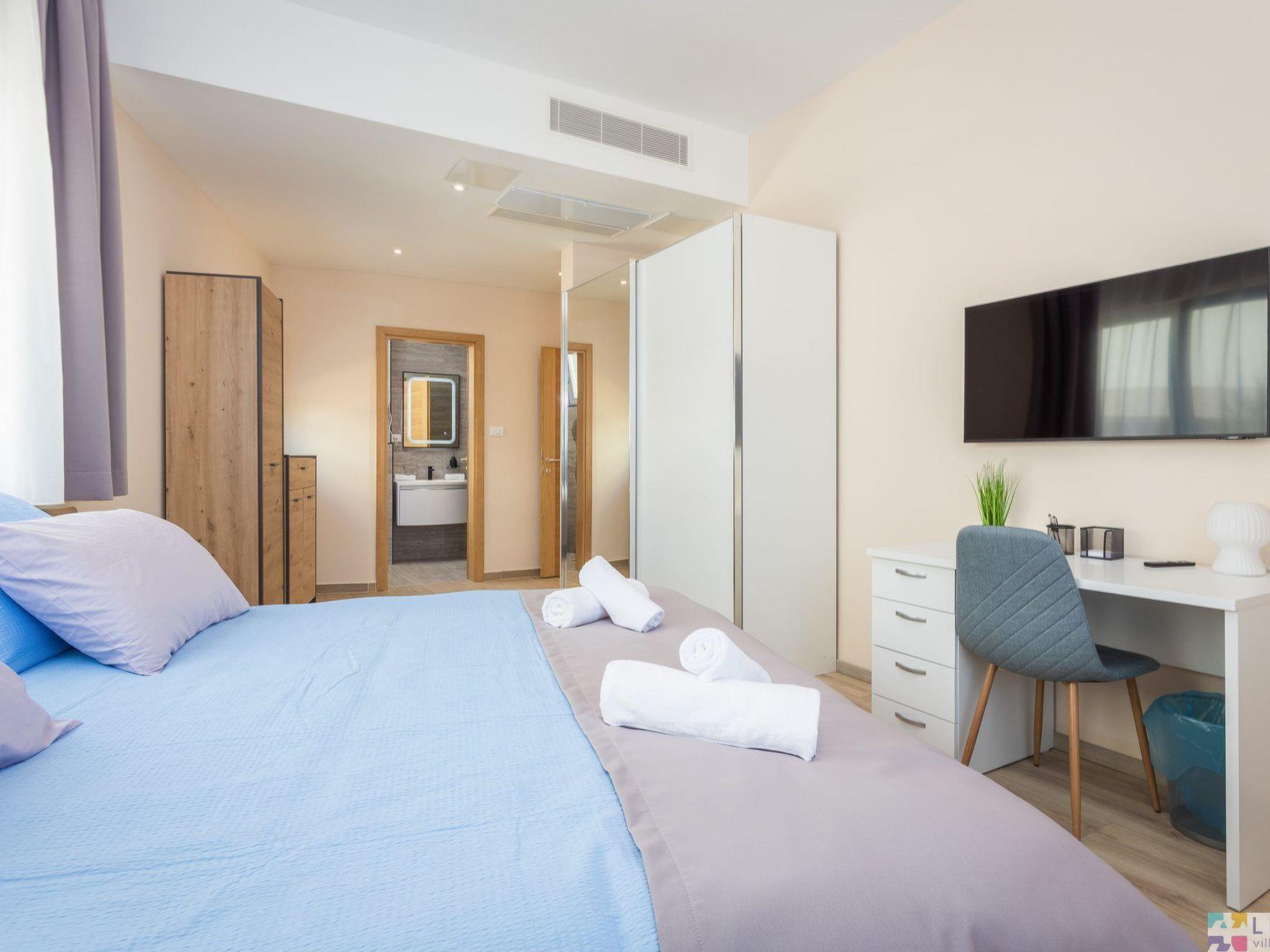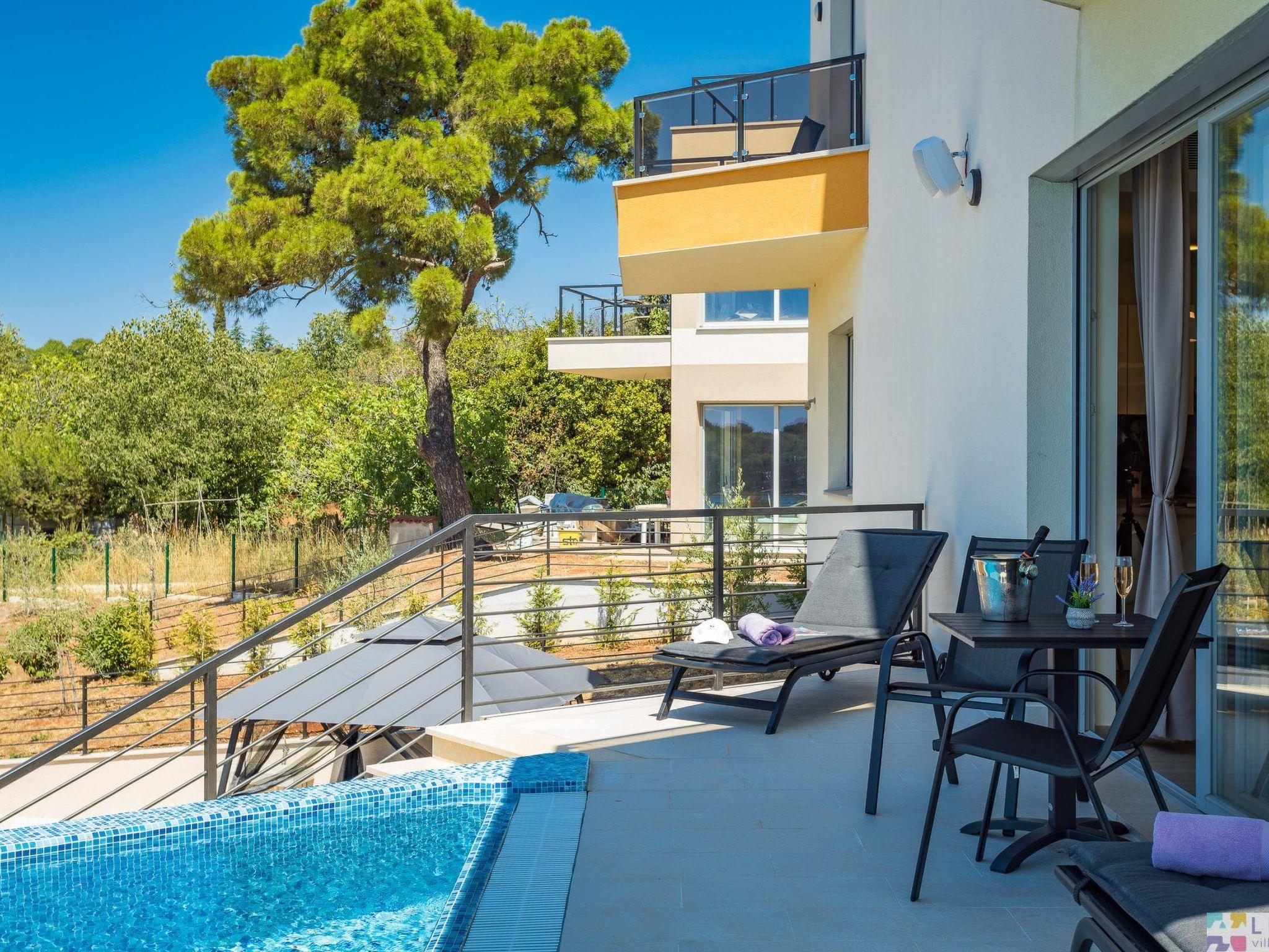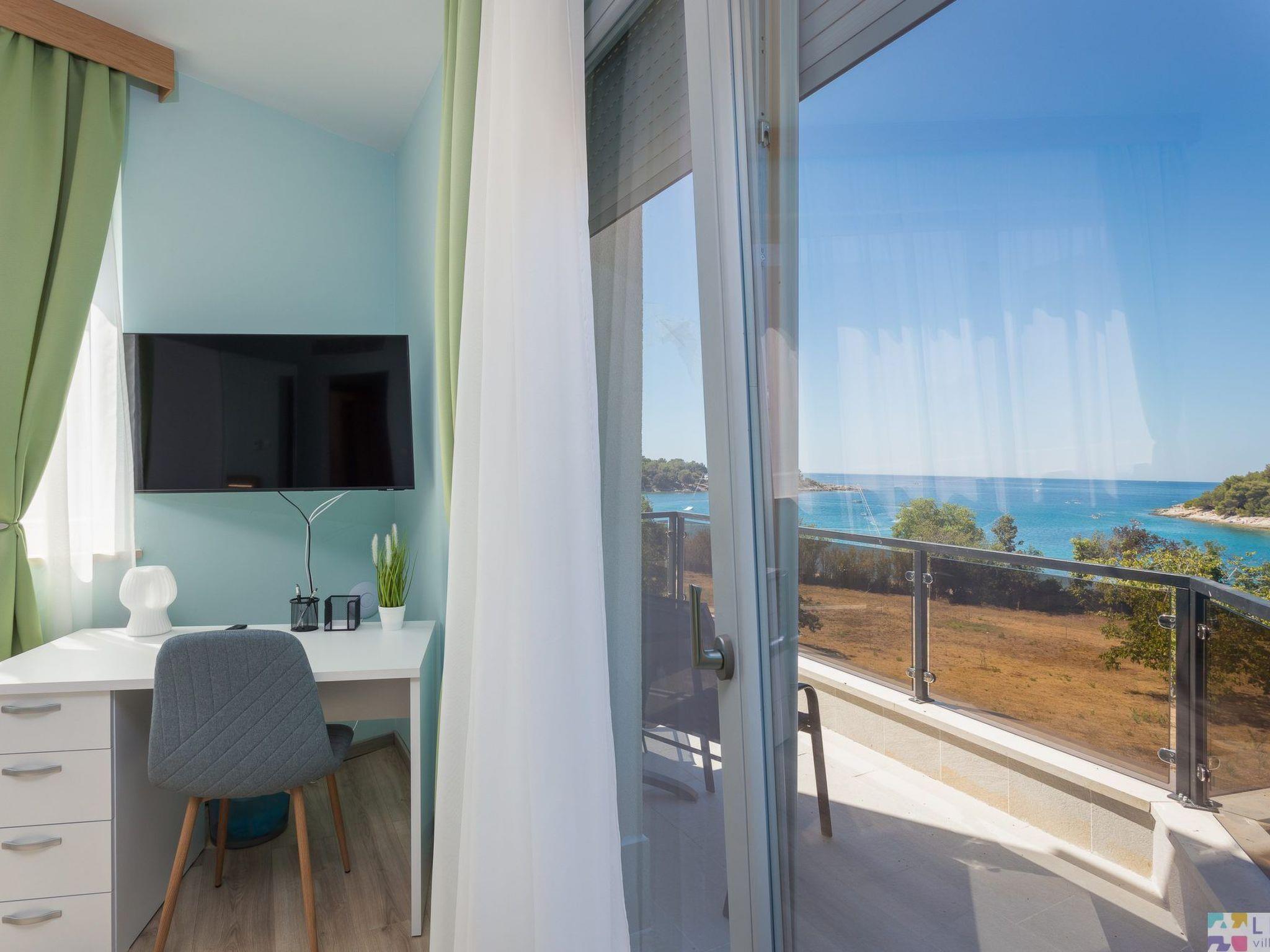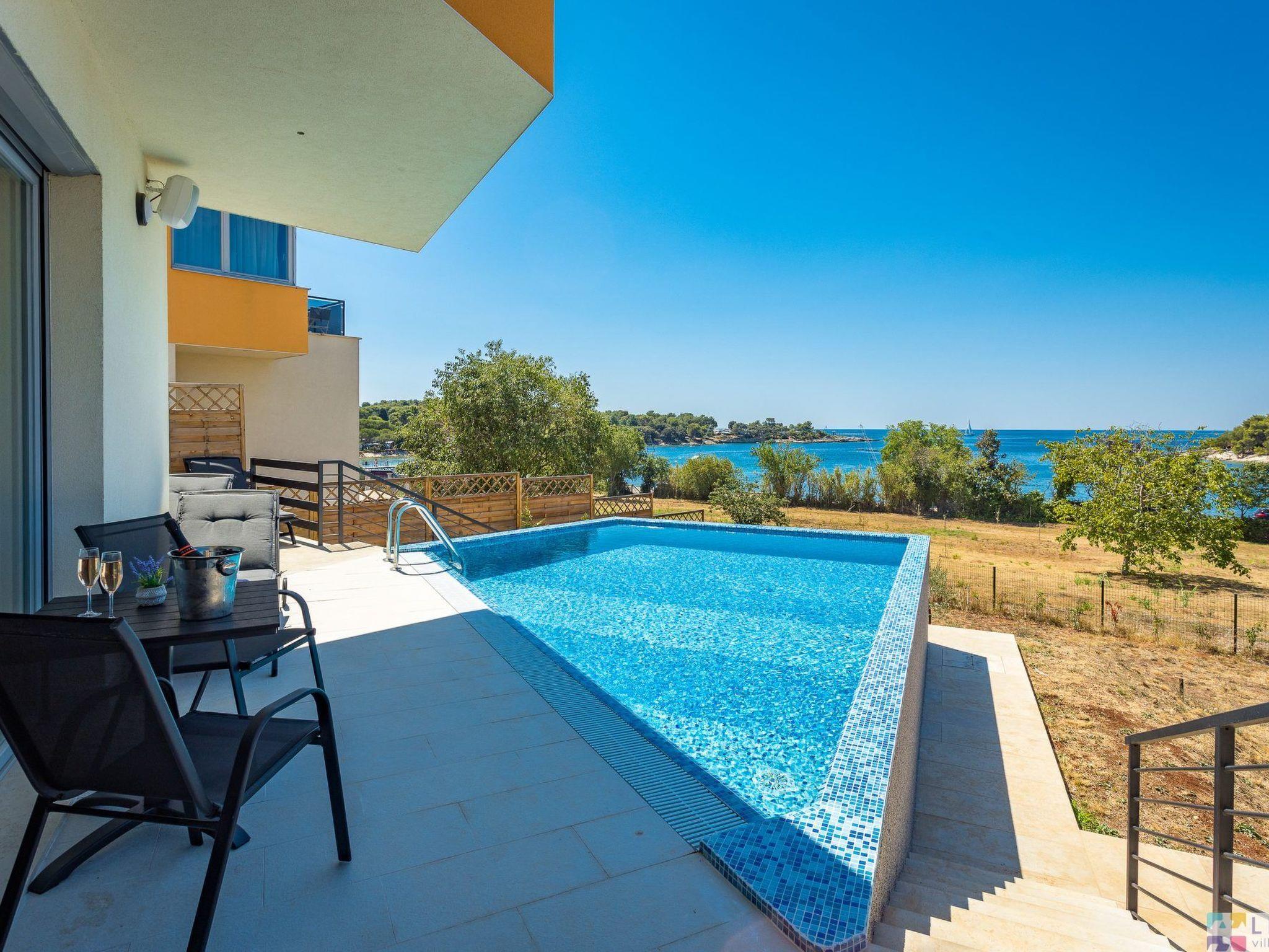 A villa with a stunning view of the sea in one of the most attractive destinations of Croatia – in Pula coastline area. The villa features a spacious garden with a seasonal outdoor pool, a sun terrace, and free WiFi in public areas.All rooms are individually furnished and come with seaside and mountain views, an outdoor dining area, grill area, and a fully equipped kitchen. The villa is very close to the beach and all cultural city hubs. You’ll enjoy day and night activities around the villa.A narrow strip along the coast in Pula is a breathtaking location to spend your summer – with family, friends or partner. The villa is available for private booking by couples as well.