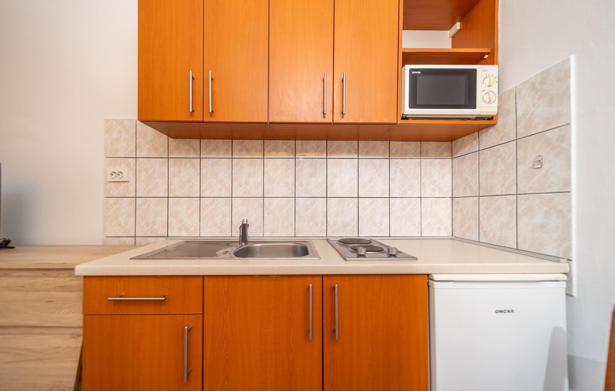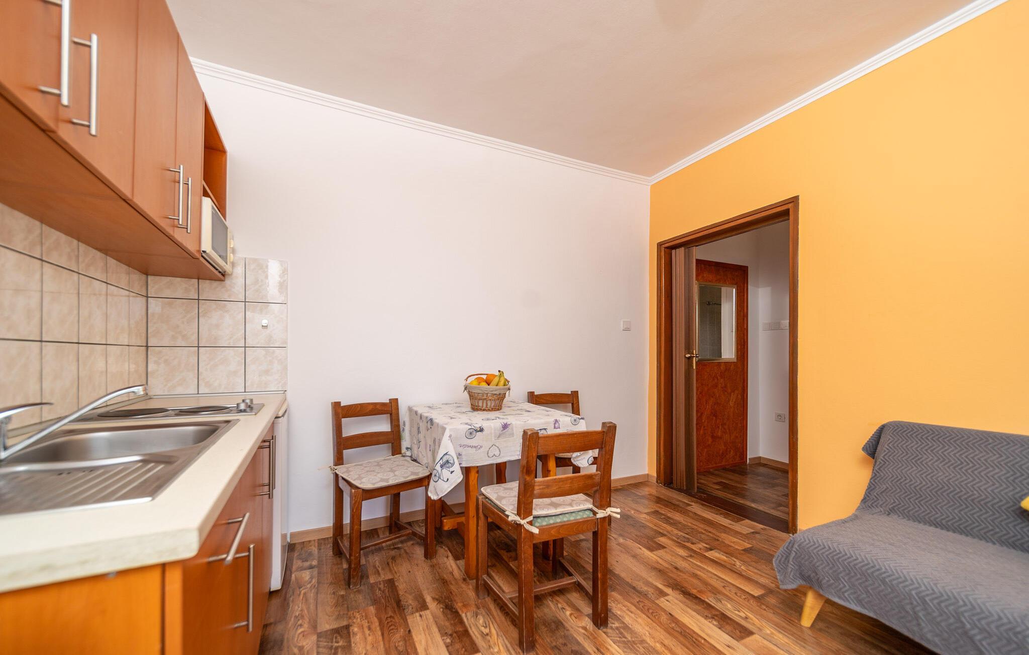 Denna lägenhet ligger på bottenvåningen i ett hyreshus på paradisön Rab.
