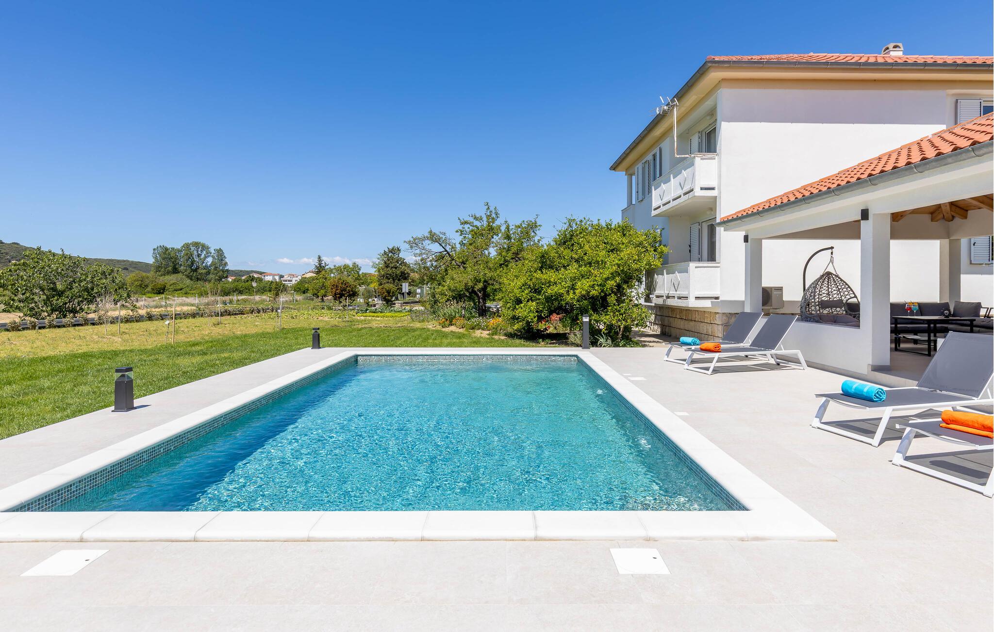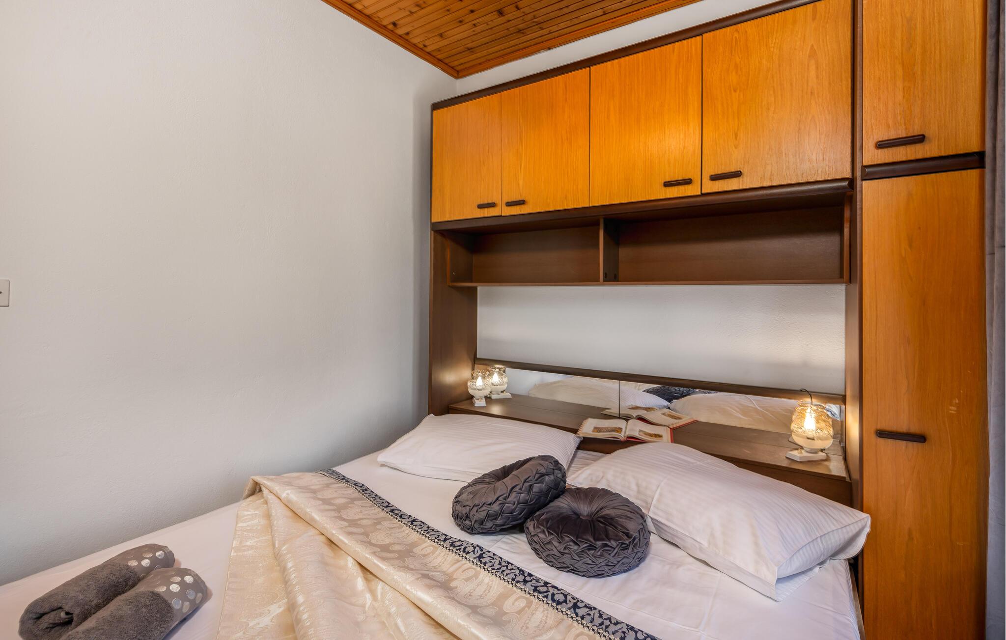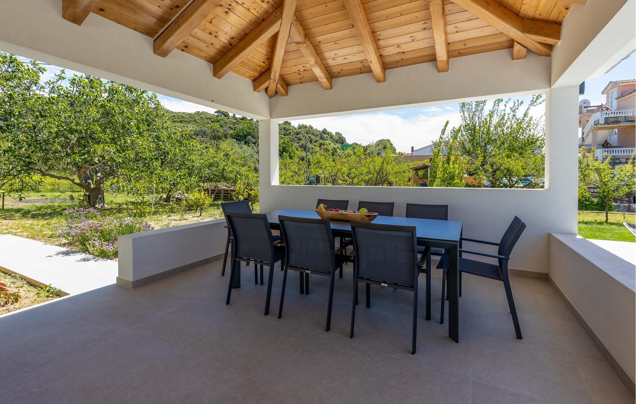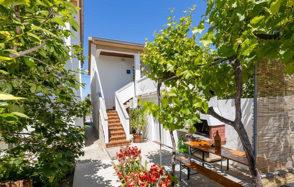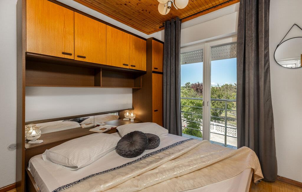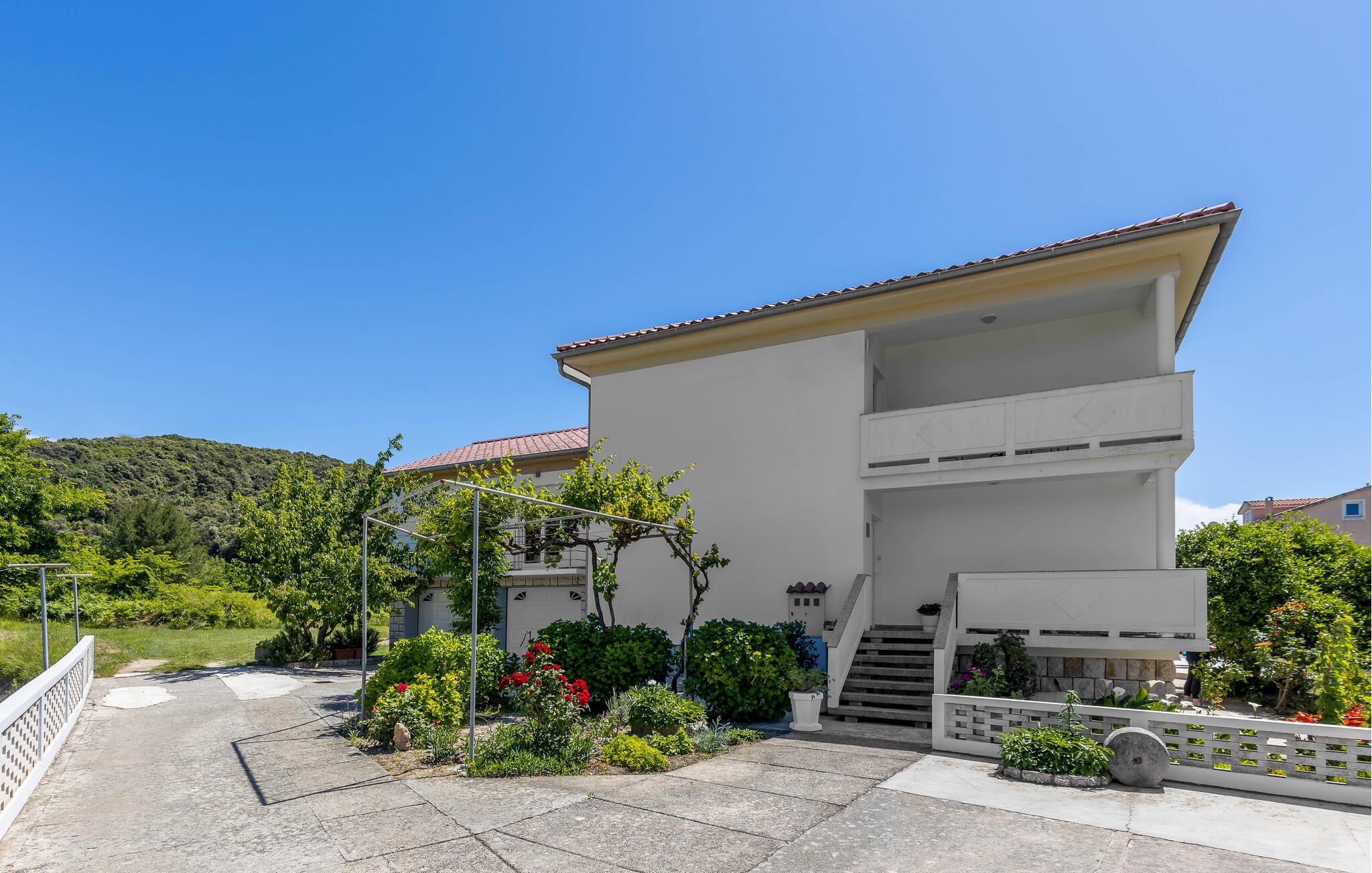 Denna semesterlägenhet ligger bredvid huvudbyggnaden i ett mindre hus, ovanför garaget. Långt bort från stadens buller och trängsel hittar du här den nödvändiga lugnet och avkopplingen. Du kommer förmodligen att tillbringa det mesta av din tid på den öppna terrassen med grillmöjligheter. Ön Rab är rik på sand-, sten- och klippstränder med många nöjes- och sportmöjligheter. Cykelvägar genom naturreservaten och längs strandpromenaden vid havet och klostret och kyrkan St Eufemia till staden Rab kommer att glädja dig.