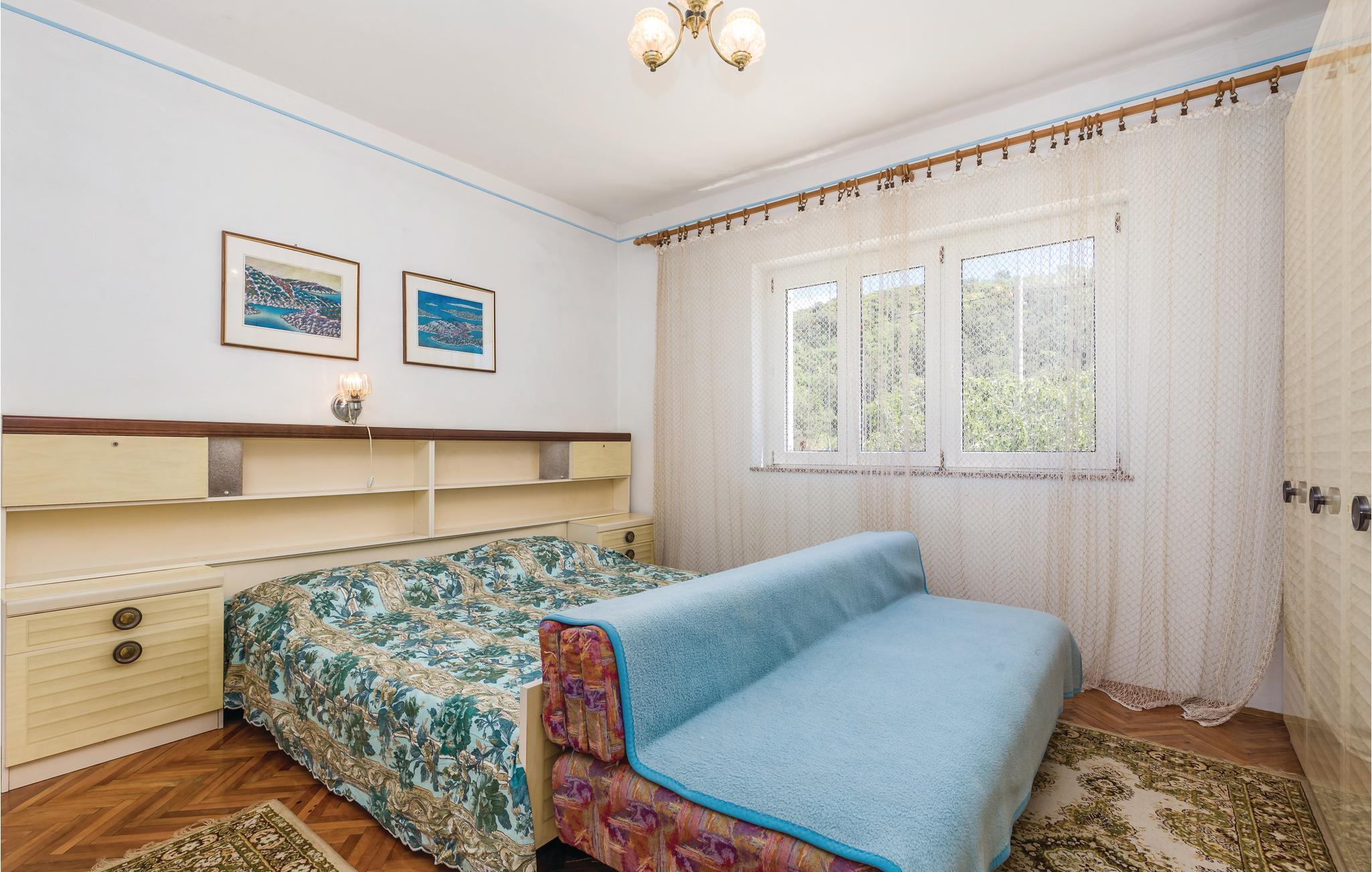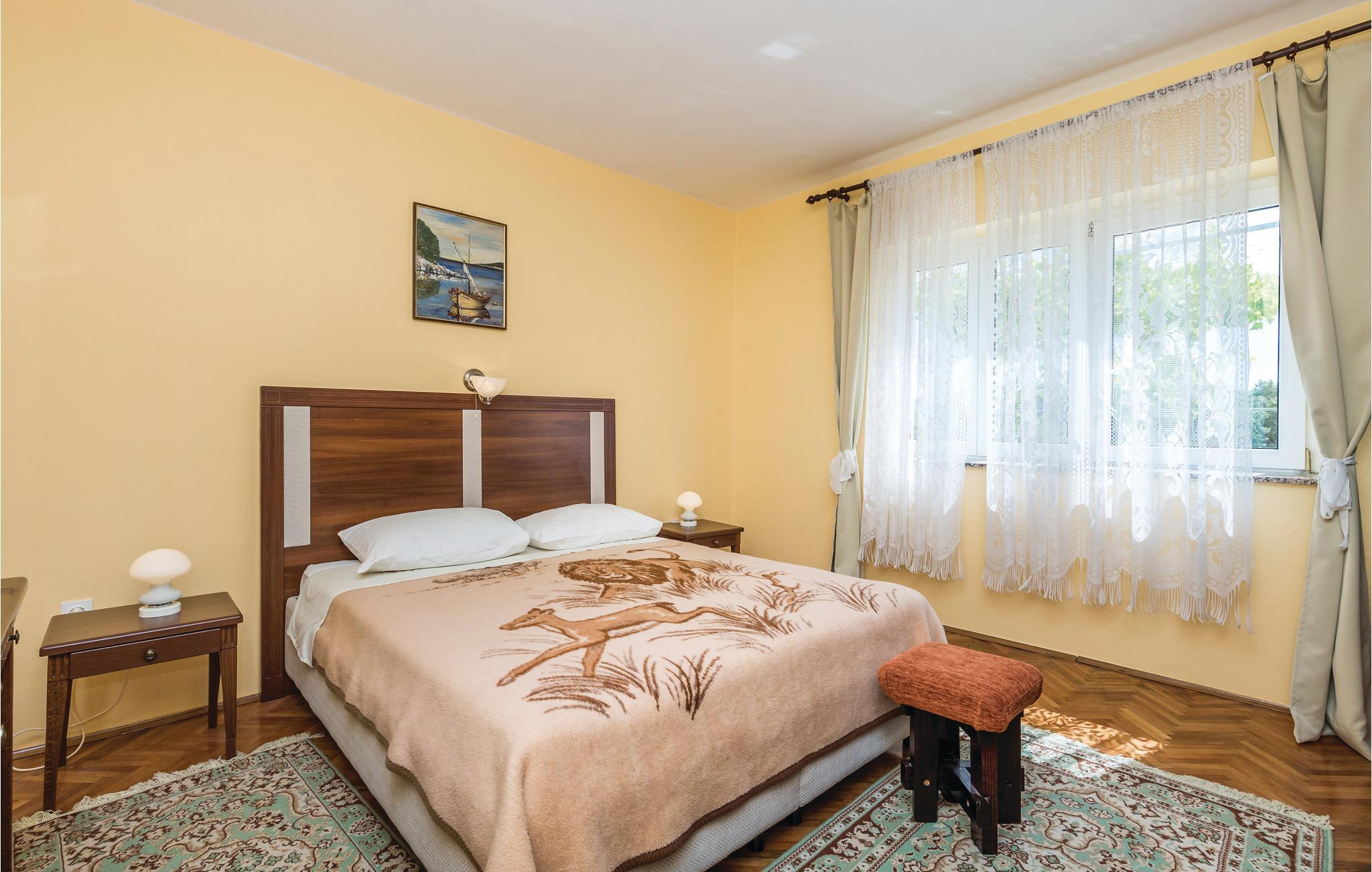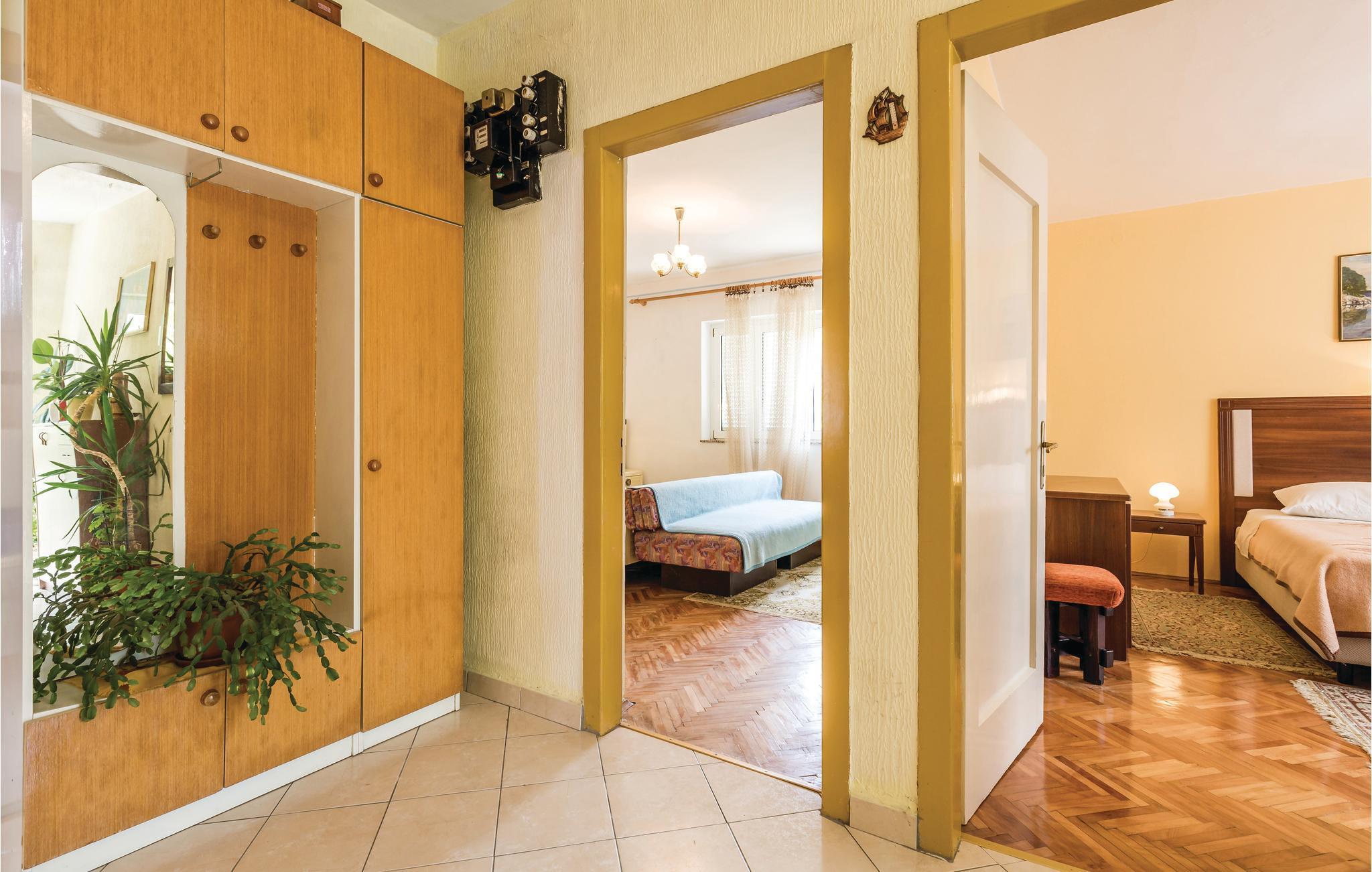 I den lugna byn Kampor, långt från trafik och buller, ligger detta semesterhus i en våning. Det innehåller tre sovrum och är enkelt möblerat. Framför huset finns en vacker terrass omgiven av natur och grönska. Där finns trädgårdsmöbler och en grill. Den trevliga ägaren bor på fastigheten. Ön Rab ligger i en av de soligaste regionerna i Europa med sina ca 2500 soltimmar. Ön gynnas inte bara av solen utan också av underbara stränder, små och vackra bosättningar, ett kristallklart hav och goda förbindelser med fastlandet.