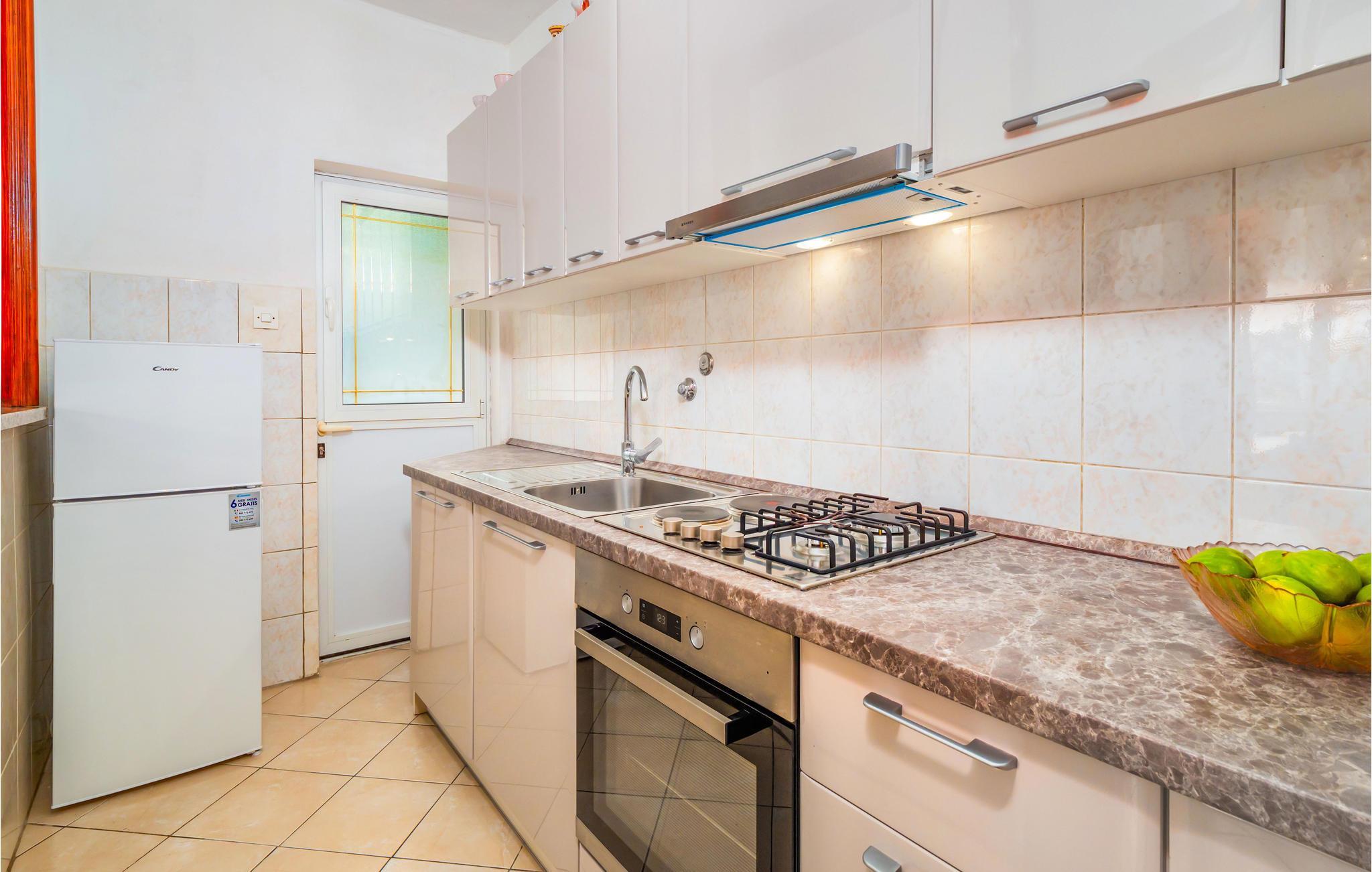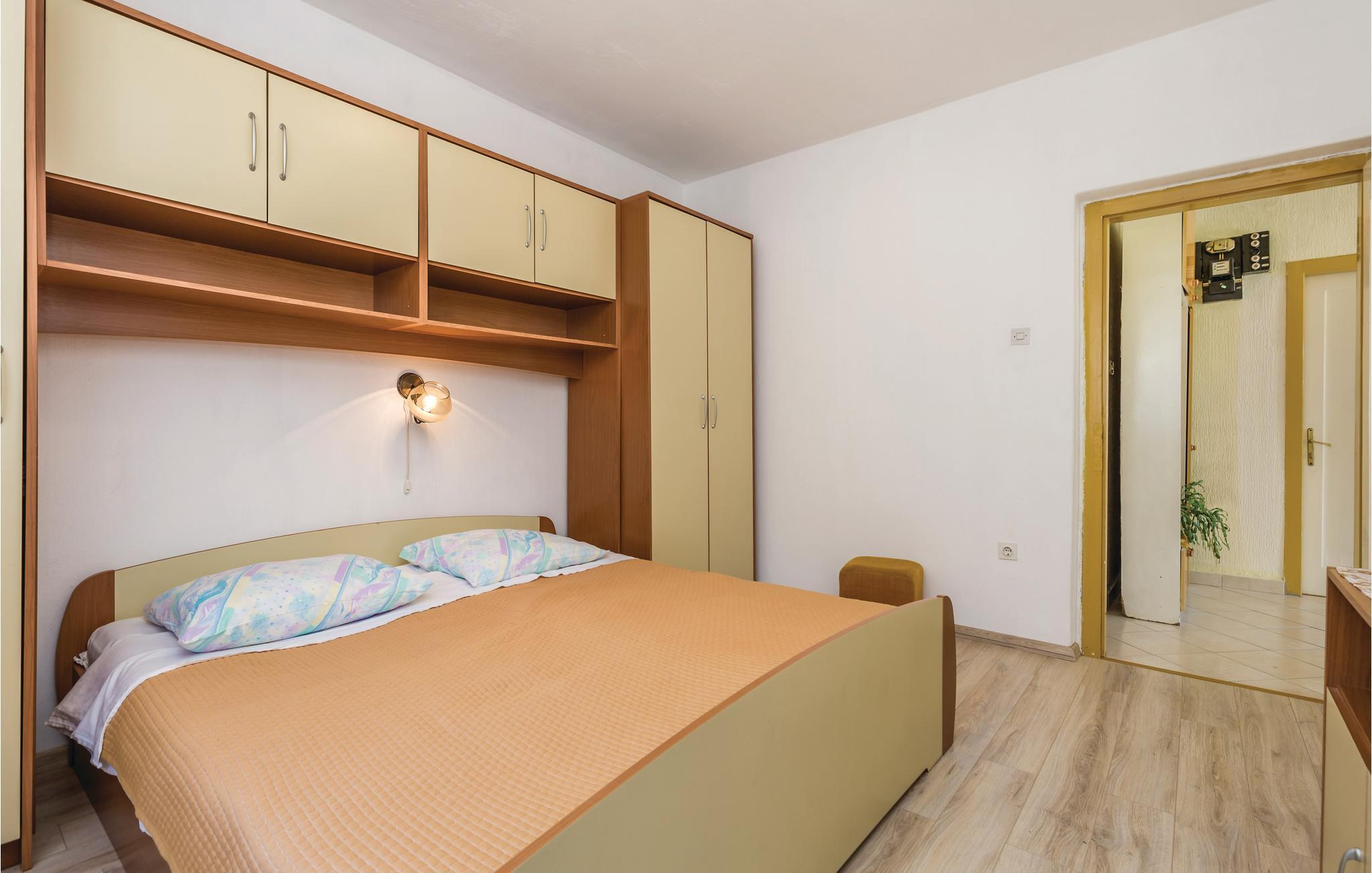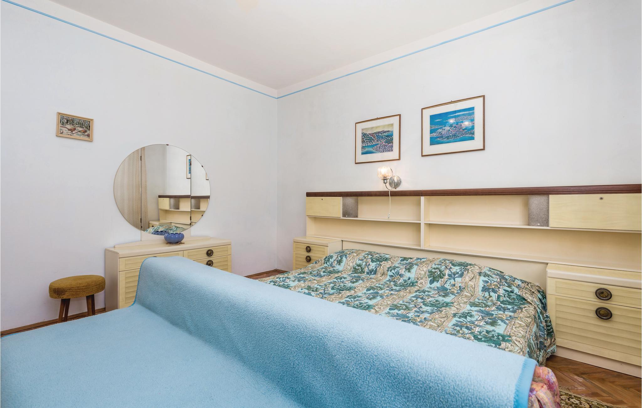 I den lugna byn Kampor, långt från trafik och buller, ligger detta semesterhus i en våning. Det innehåller tre sovrum och är enkelt möblerat. Framför huset finns en vacker terrass omgiven av natur och grönska. Där finns trädgårdsmöbler och en grill. Den trevliga ägaren bor på fastigheten. Ön Rab ligger i en av de soligaste regionerna i Europa med sina ca 2500 soltimmar. Ön gynnas inte bara av solen utan också av underbara stränder, små och vackra bosättningar, ett kristallklart hav och goda förbindelser med fastlandet.