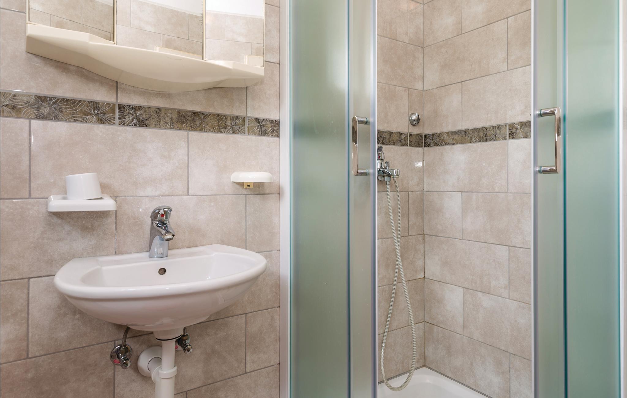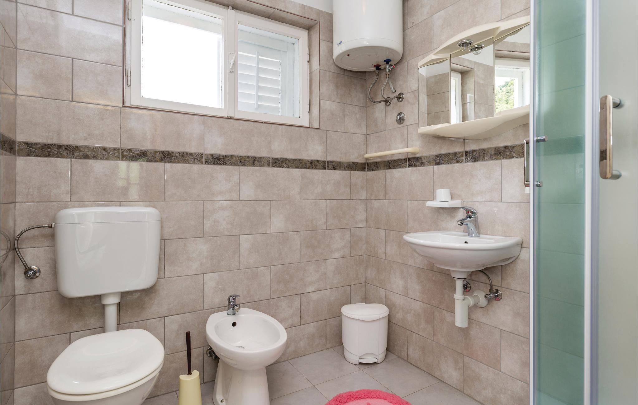 Badrum (nr. 1) - WC: Varmt och kallt vatten. Dusch