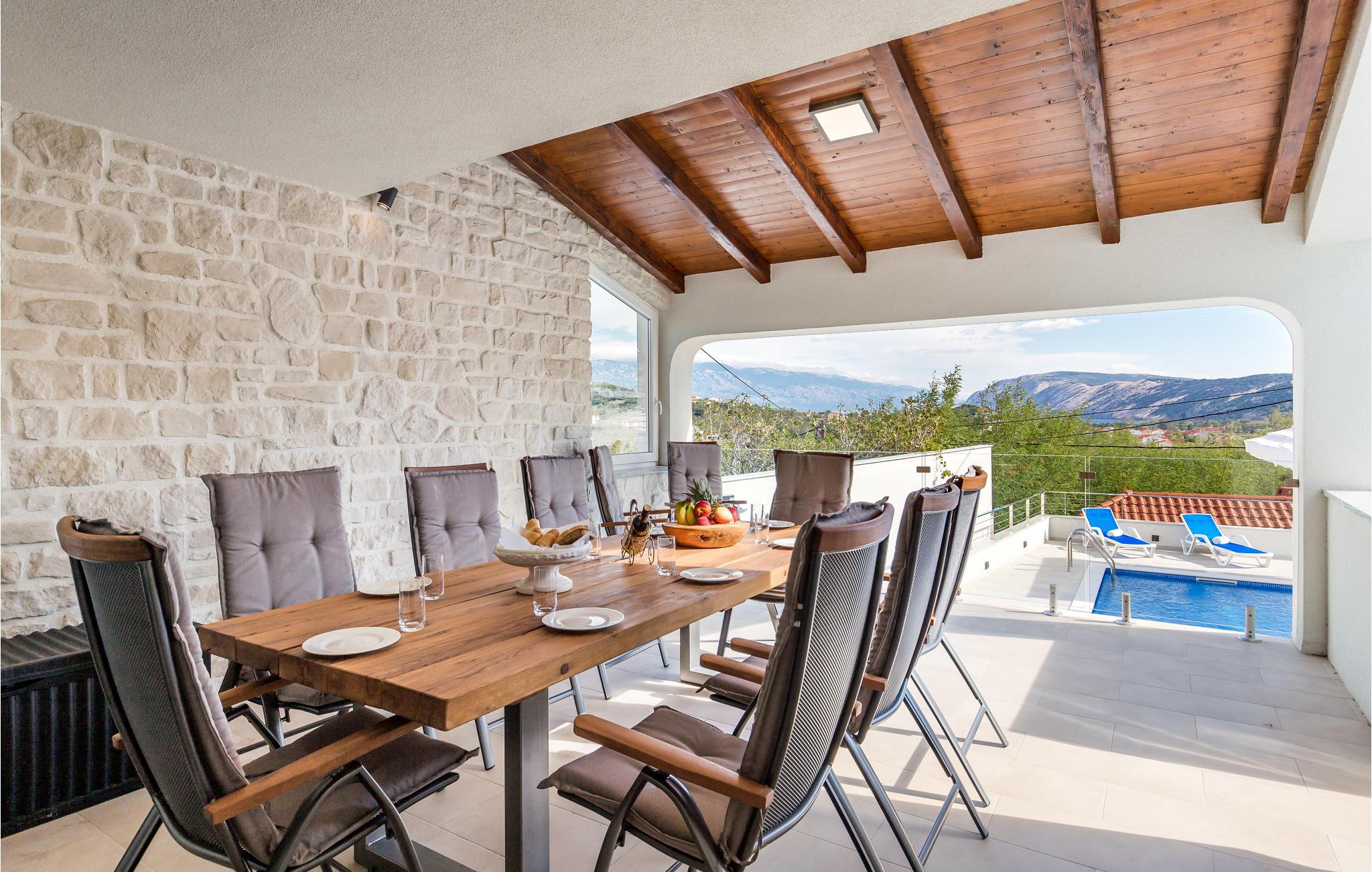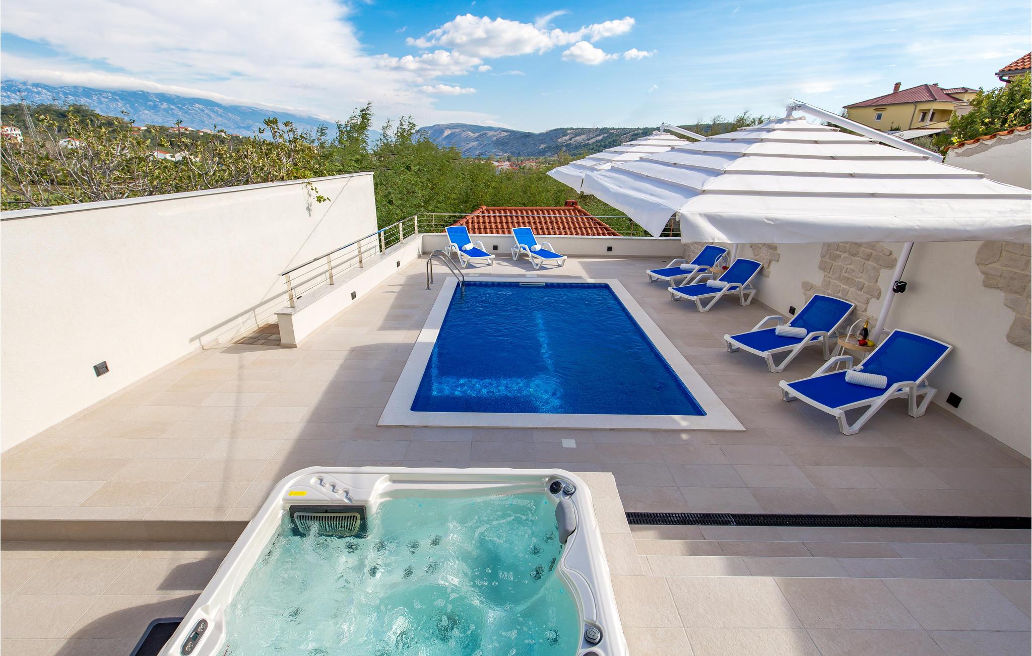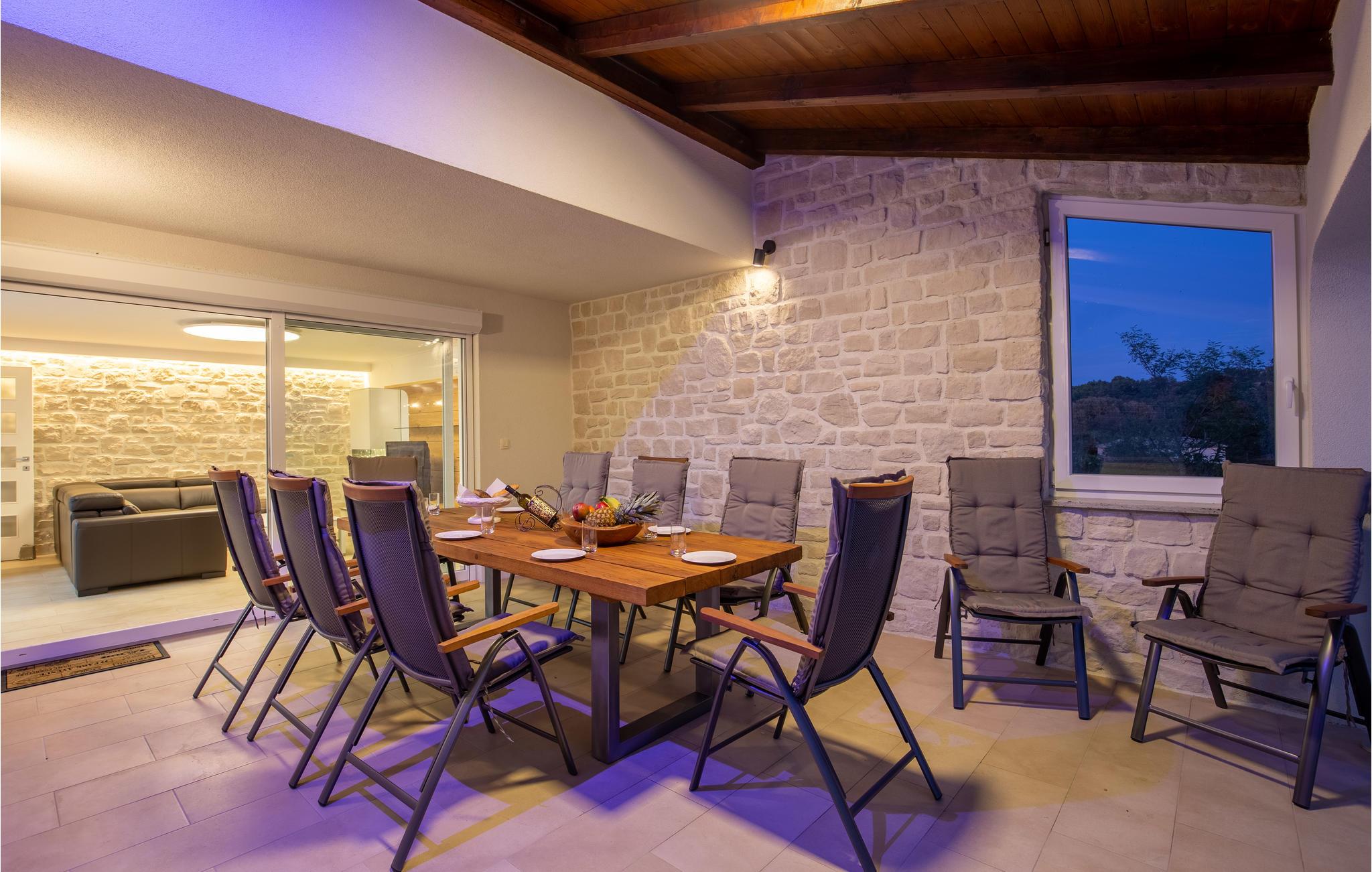 På den paradisiska ön Rab, i byn Lopar, hittar du detta underbara semesterhus med pool och delvis havsutsikt. Detta drömlika hus lämnar absolut ingenting att önska. Förutom de rymliga terrasserna, den uppfriskande utomhuspoolen och bubbelpoolen på den inhägnade tomten inbjuder den ljusa och smakfullt inredda interiören till avkoppling. Här väntar en täckt grillterrass en bit bort från huset, där du kan förbereda och njuta av läckra måltider med familj och vänner. En viktig aspekt är det vackra läget, eftersom du också kan nå de fantastiska sandstränderna till fots. Under din vistelse kan du utforska några av de gömda vikarna som ön Rab är känd för. Från fastlandet når du ön mycket enkelt med färja och många evenemang äger rum där under sommarmånaderna. Öns huvudort är Rad, en stad med samma namn med kulturella och historiska monument. Staden Lopar är en populär badort, särskilt för familjer med små barn, som kan njuta av underbara vattenlekar på den mjukt sluttande sandstranden, även känd som Paradise Beach. Pittoreska vikar, klart vatten, historiska städer och kulturella sevärdheter är de särdrag som inbjuder besökare att stanna på ön Rab.