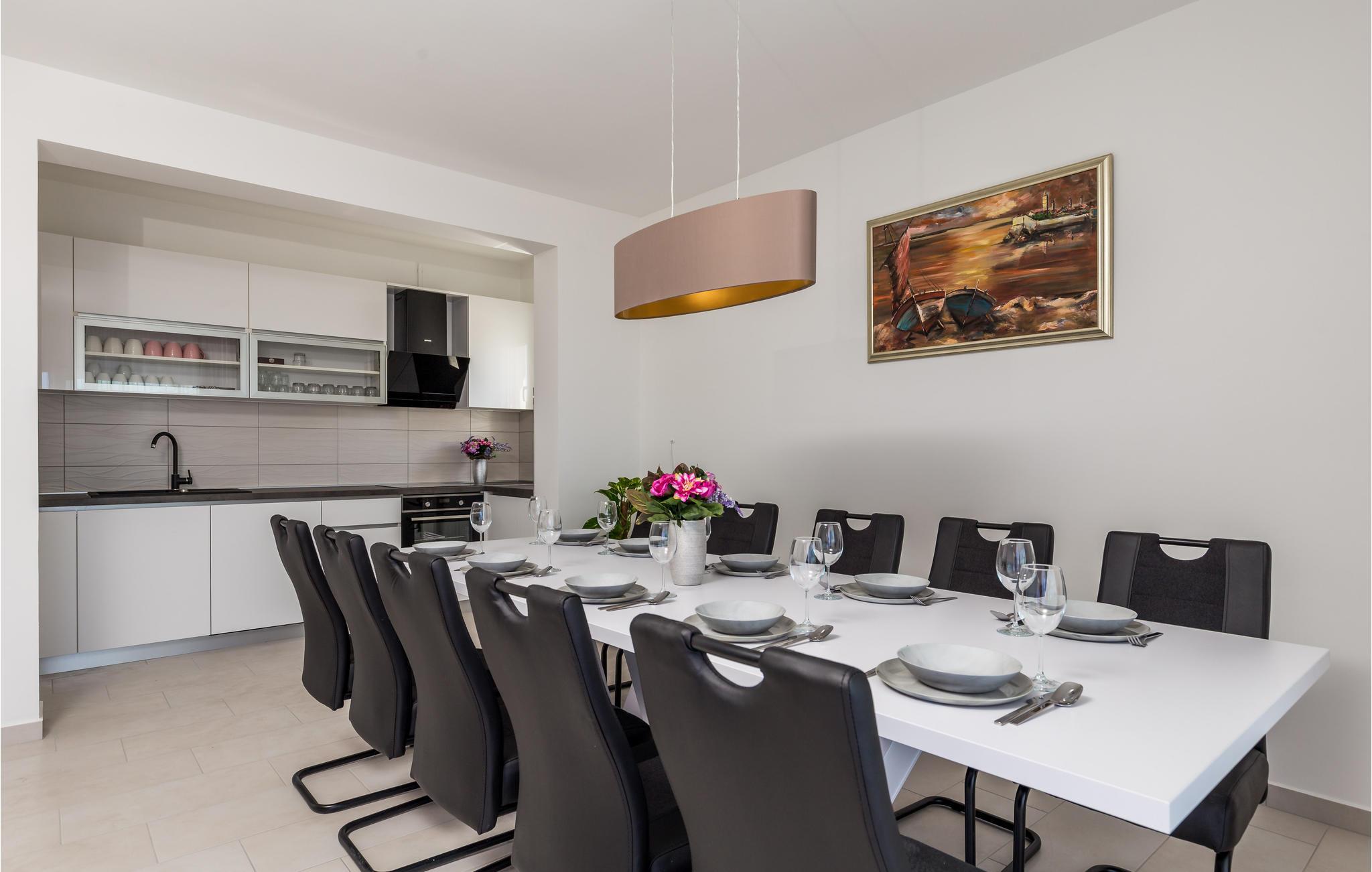 Detta semesterhus ligger på den vackra ön Rab. Huset är fördelat på bottenvåningen och första våningen och har fyra sovrum och fyra badrum som säkert kommer att ge gästerna den komfort de behöver under sin vistelse. Det är idealiskt för en semester för två familjer som vill tillbringa sin semester tillsammans. Du kommer att tillbringa det mesta av din tid vid poolen och på terrasserna, koppla av med en god bok eller bara sola. Ovanför huset ligger Mount Kamenjak, varifrån du har en magnifik utsikt över hela skärgården och de omgivande öarna. Rab är en ö som är rik på kulturarv och medelhavskänsla. Prova delikatesser som raska grota och raska torta under din vistelse. Rab är känd som lyckans ö och vi är säkra på att du bara kommer att ta med dig lyckliga stunder från den här resan.