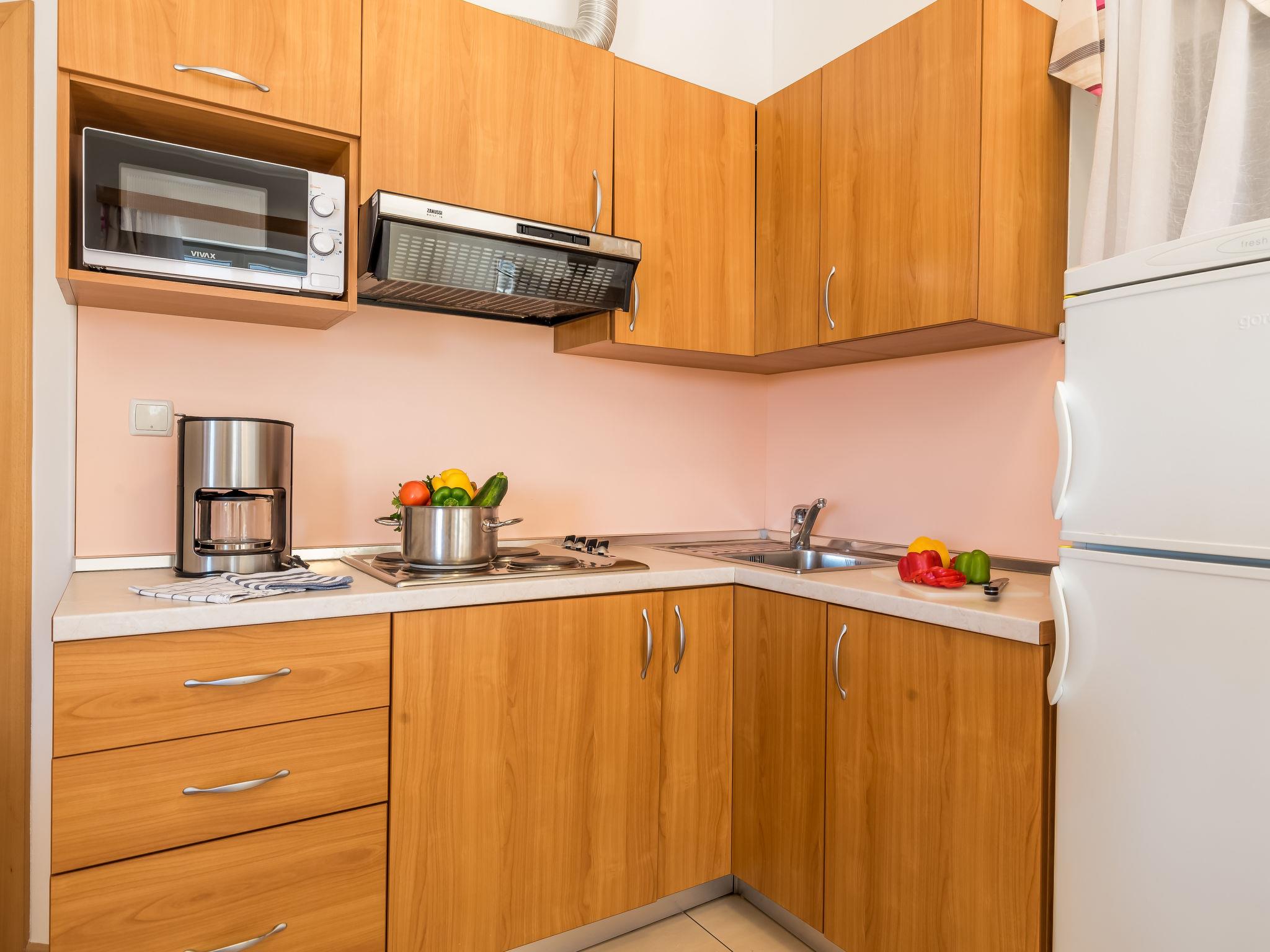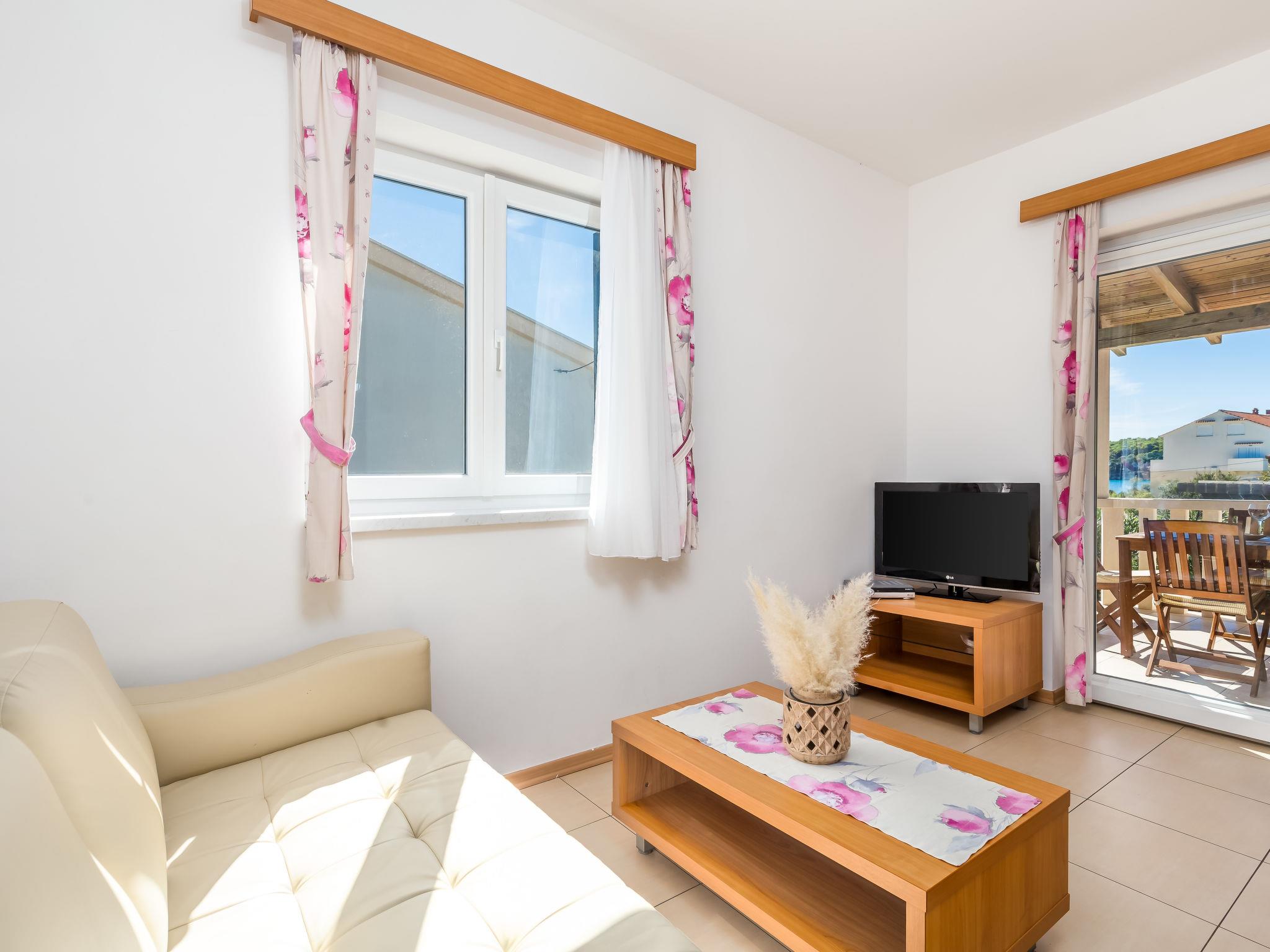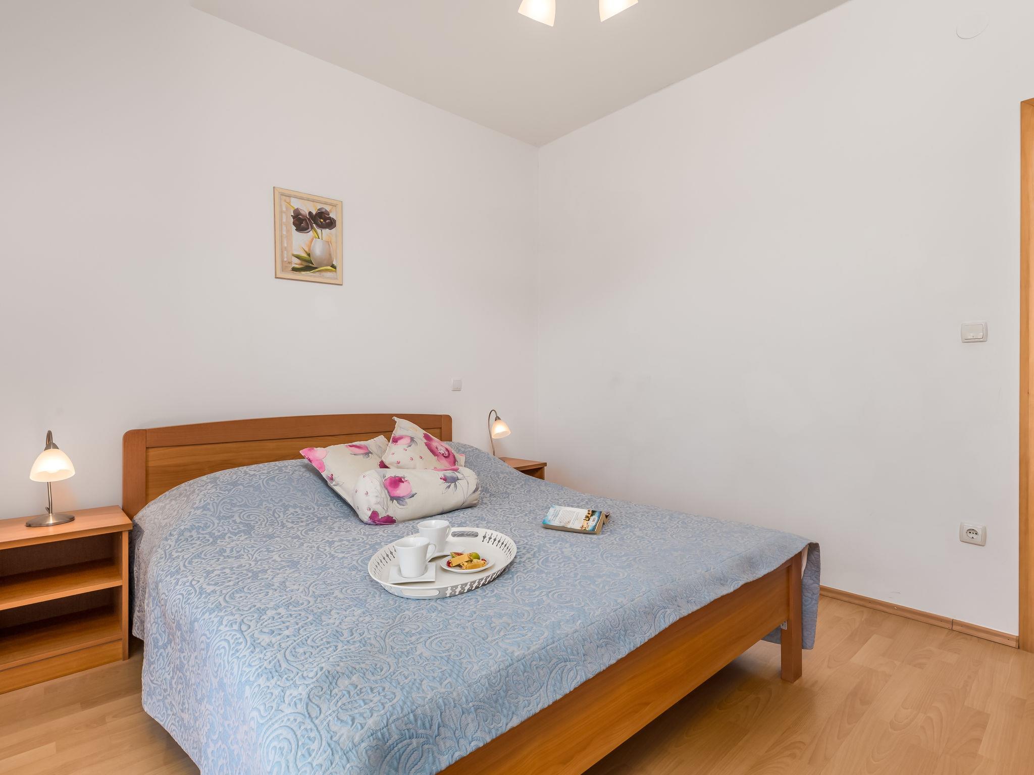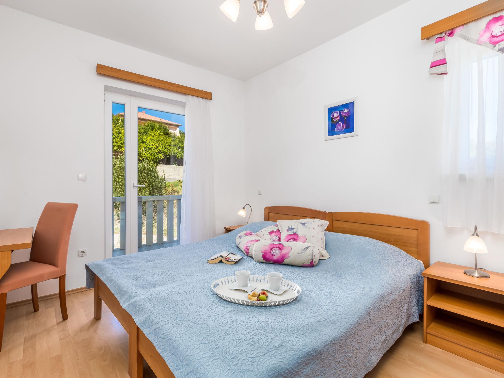 "Ivan 3", 3-room apartment 60 m2 on 1st floor. Modern and cosy furnishings: living/dining room 25 m2 with 1 double sofabed, satellite TV and air conditioning. Exit to the terrace. 1 room with 1 double bed (160 cm, length 200 cm). Exit to the balcony. 1 room with 2 beds. Exit to the balcony. Open kitchen (4 hot plates, microwave, freezer). Shower/WC. Balcony 6 m2, balcony 3 m2, terrace 20 m2, roofed. Terrace furniture. View of the sea and the swimming pool. Facilities: safe. Internet (WiFi, free). Parking.
