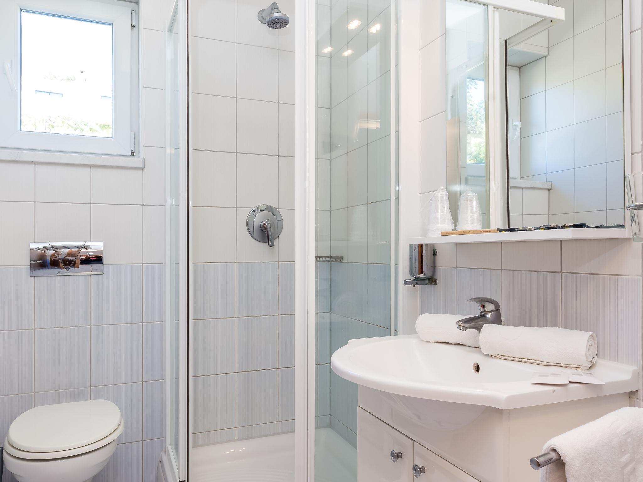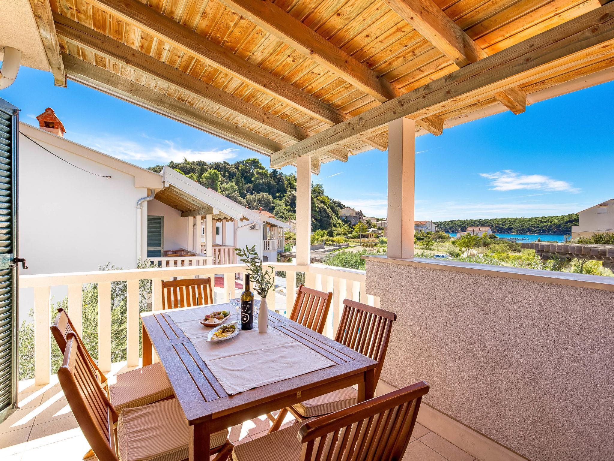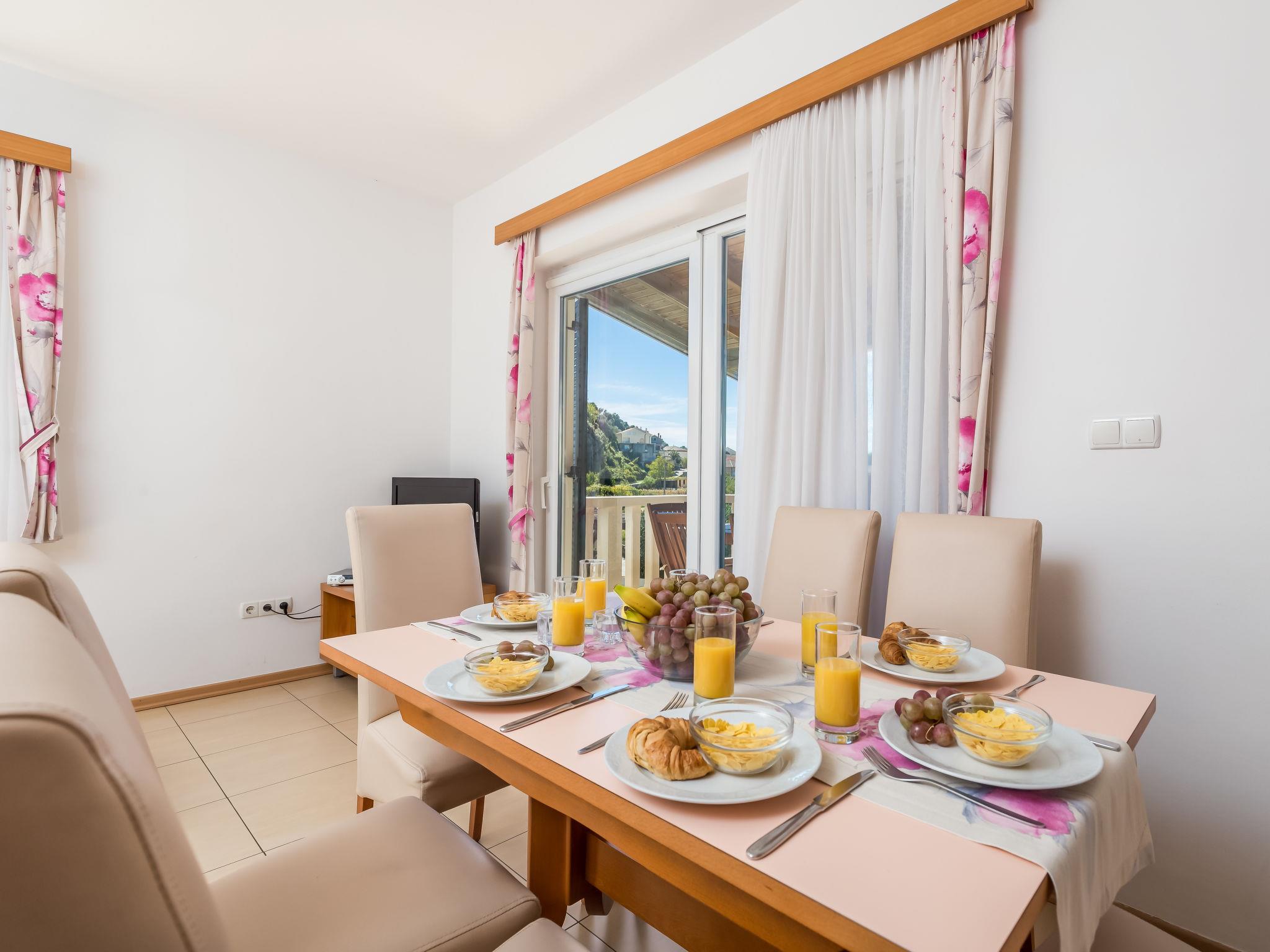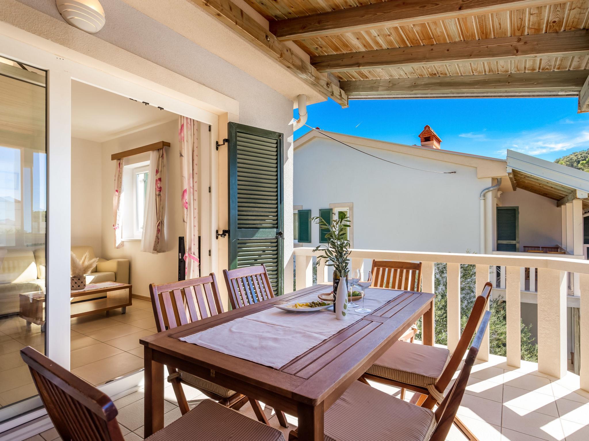 "Ivan 3", 3-room apartment 60 m2 on 1st floor. Modern and cosy furnishings: living/dining room 25 m2 with 1 double sofabed, satellite TV and air conditioning. Exit to the terrace. 1 room with 1 double bed (160 cm, length 200 cm). Exit to the balcony. 1 room with 2 beds. Exit to the balcony. Open kitchen (4 hot plates, microwave, freezer). Shower/WC. Balcony 6 m2, balcony 3 m2, terrace 20 m2, roofed. Terrace furniture. View of the sea and the swimming pool. Facilities: safe. Internet (WiFi, free). Parking.