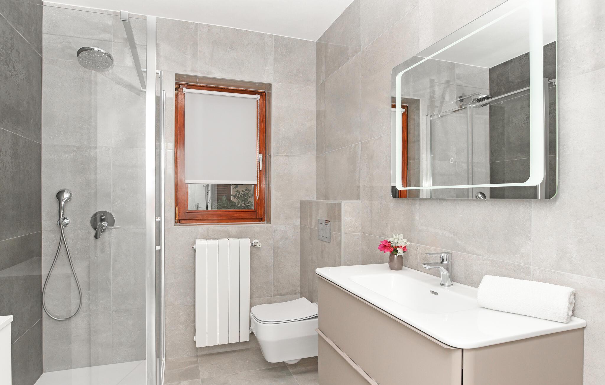 Badrum (nr. 1) - WC: Varmt och kallt vatten. Dusch