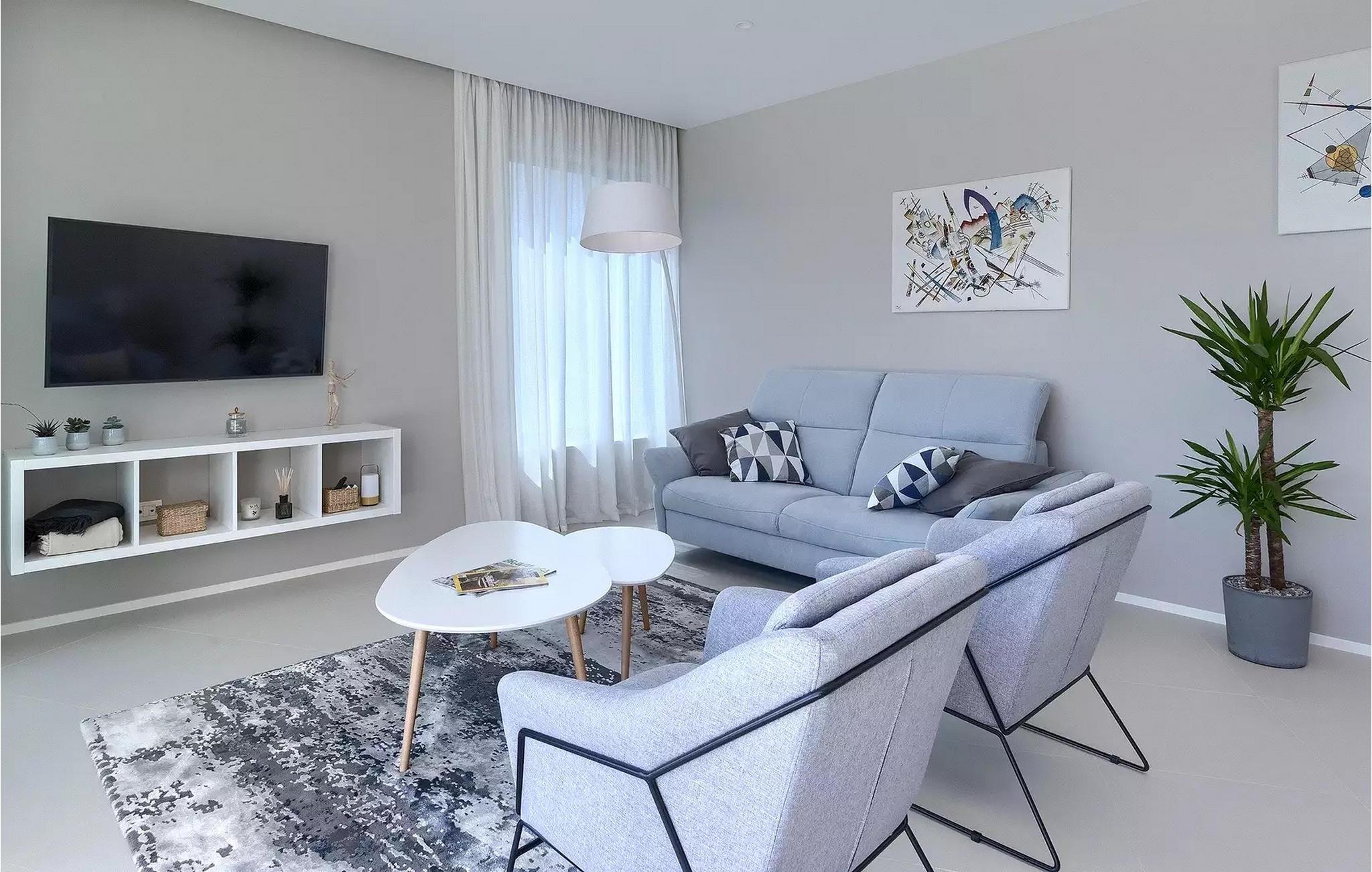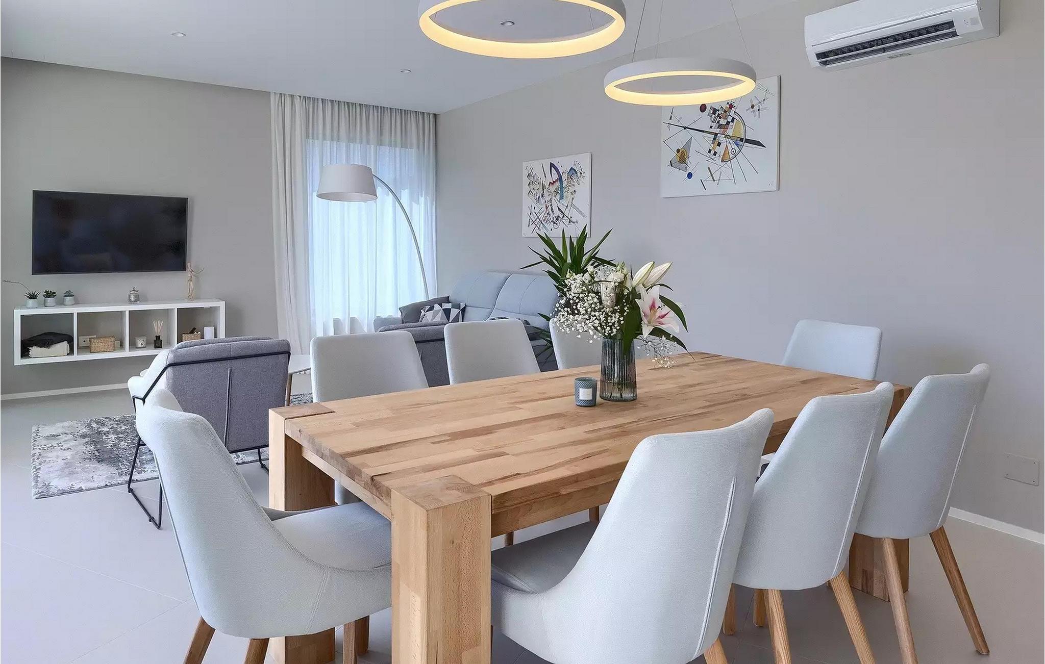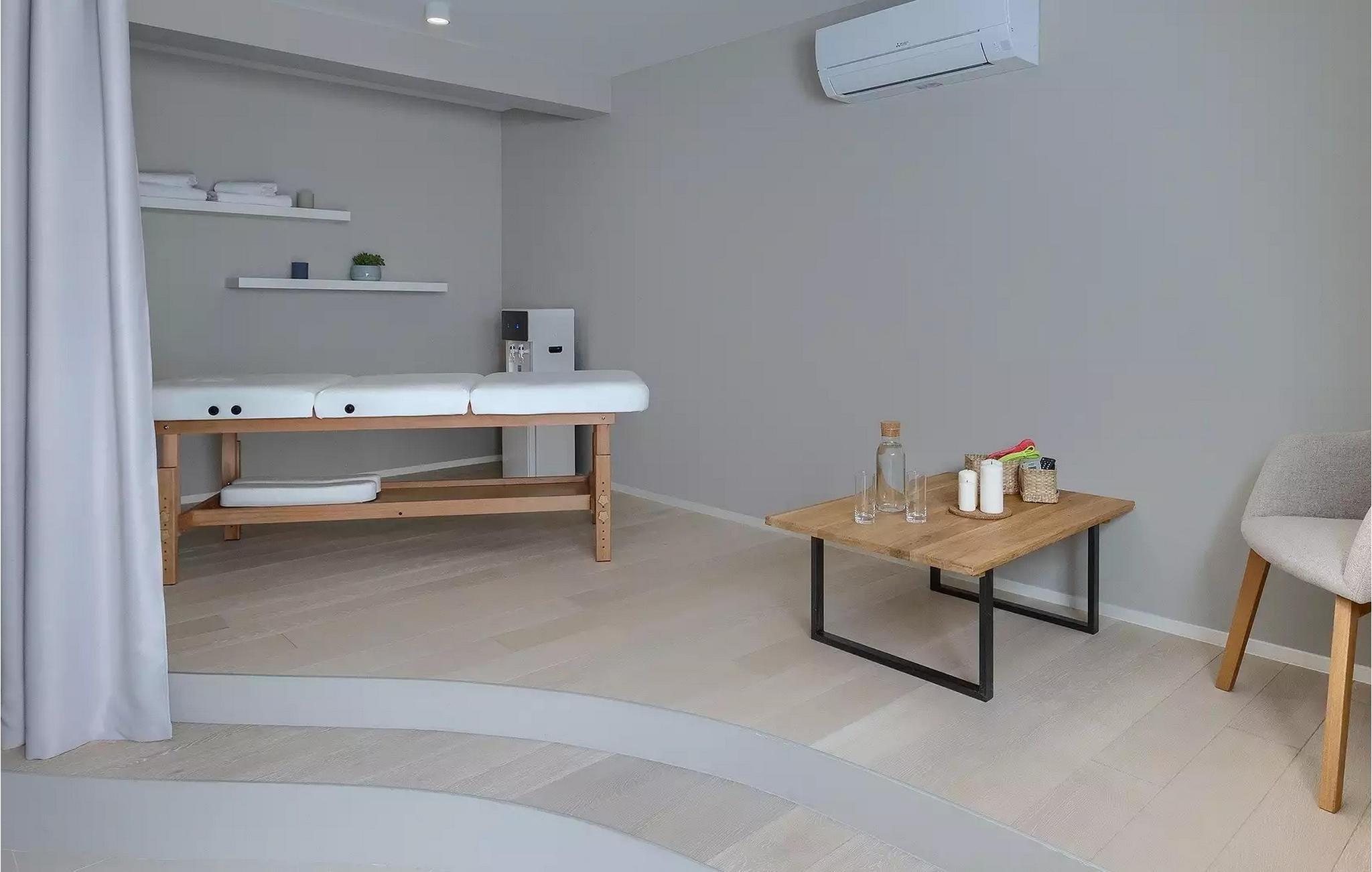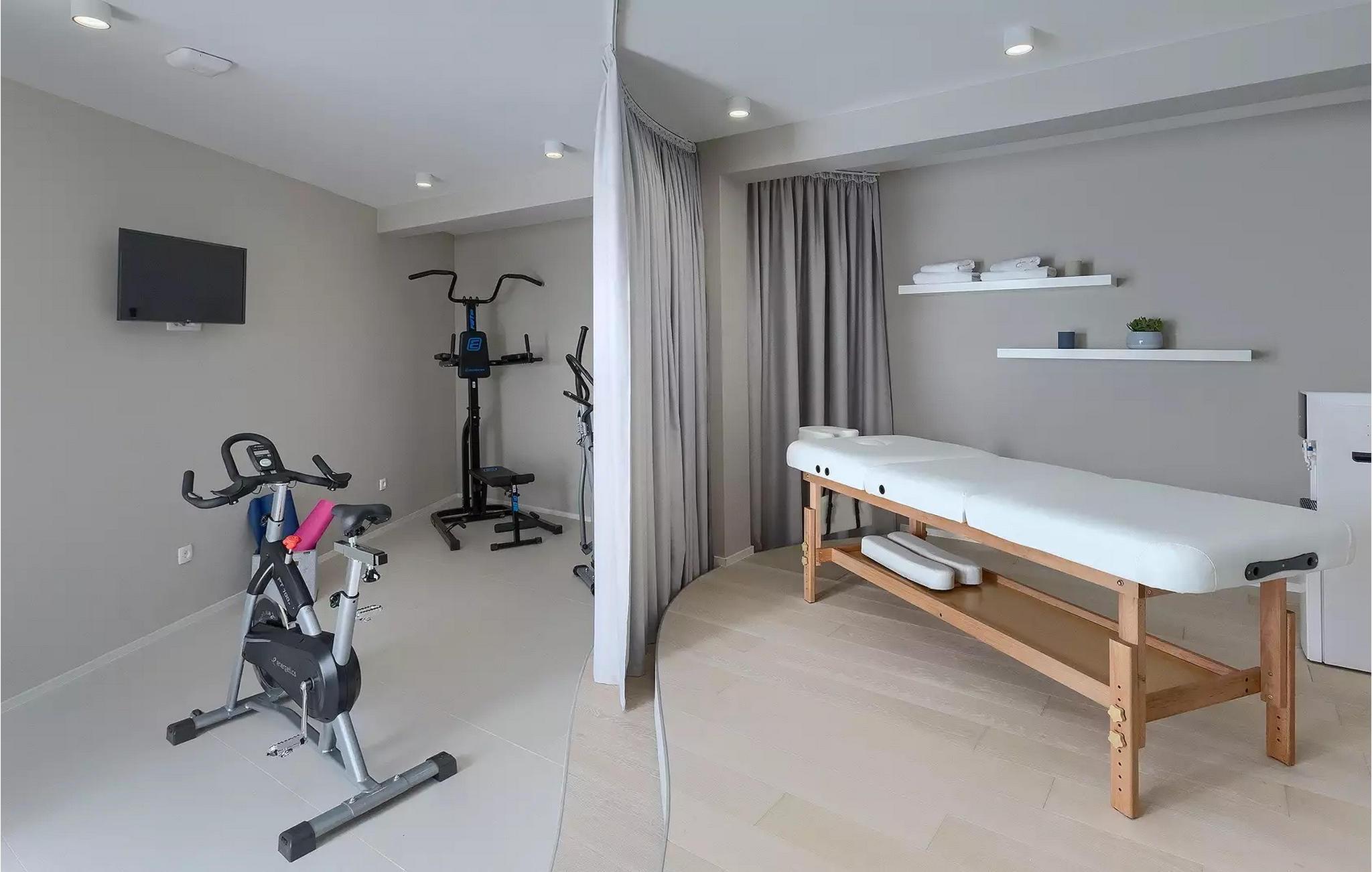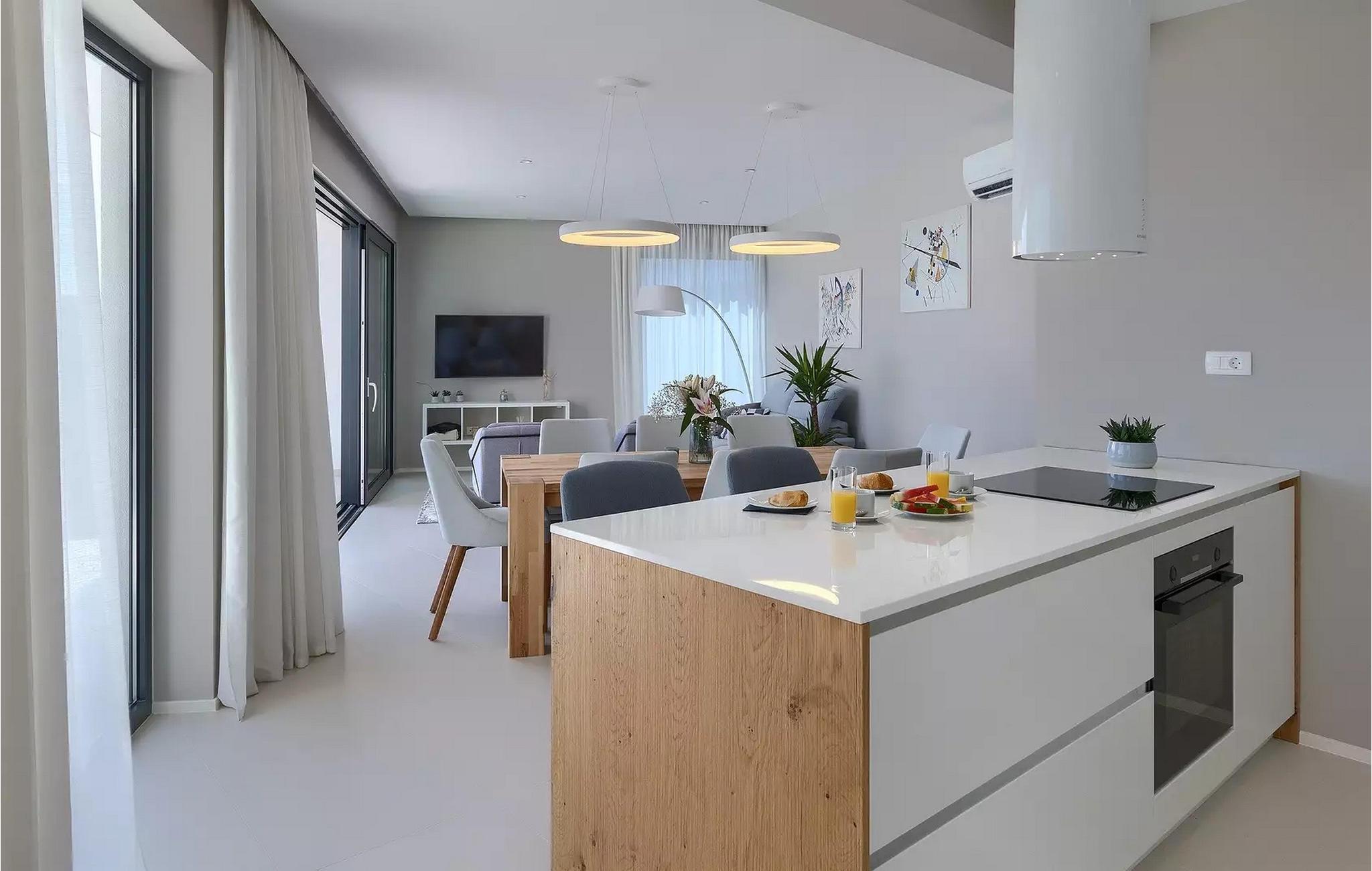 Denna moderna villa är uppdelad i tre rymliga våningar. I villans källare hittar du ett gym med träningsutrustning som du kan använda om du är ett fan av aktiviteter och fitness. Bredvid fitnessrummet finns ett massagebord för dem som gillar wellness och avkoppling. Villans bottenvåning är rymlig med glasväggar som erbjuder en fantastisk panoramautsikt över havet och det omgivande området. Här finns ett utrustat kök med matplats, vardagsrum med direkt tillgång till terrassen med pool, gästtoalett, fullt utrustad tvättstuga och ett dubbelrum med två enkelsängar, TV och luftkonditionering och eget badrum. På första våningen finns tre dubbelrum med dubbelsängar, TV och luftkonditionering och eget badrum. Rummen har en terrass med utsikt över staden, havet och öarna där du kan njuta av ditt morgonkaffe.