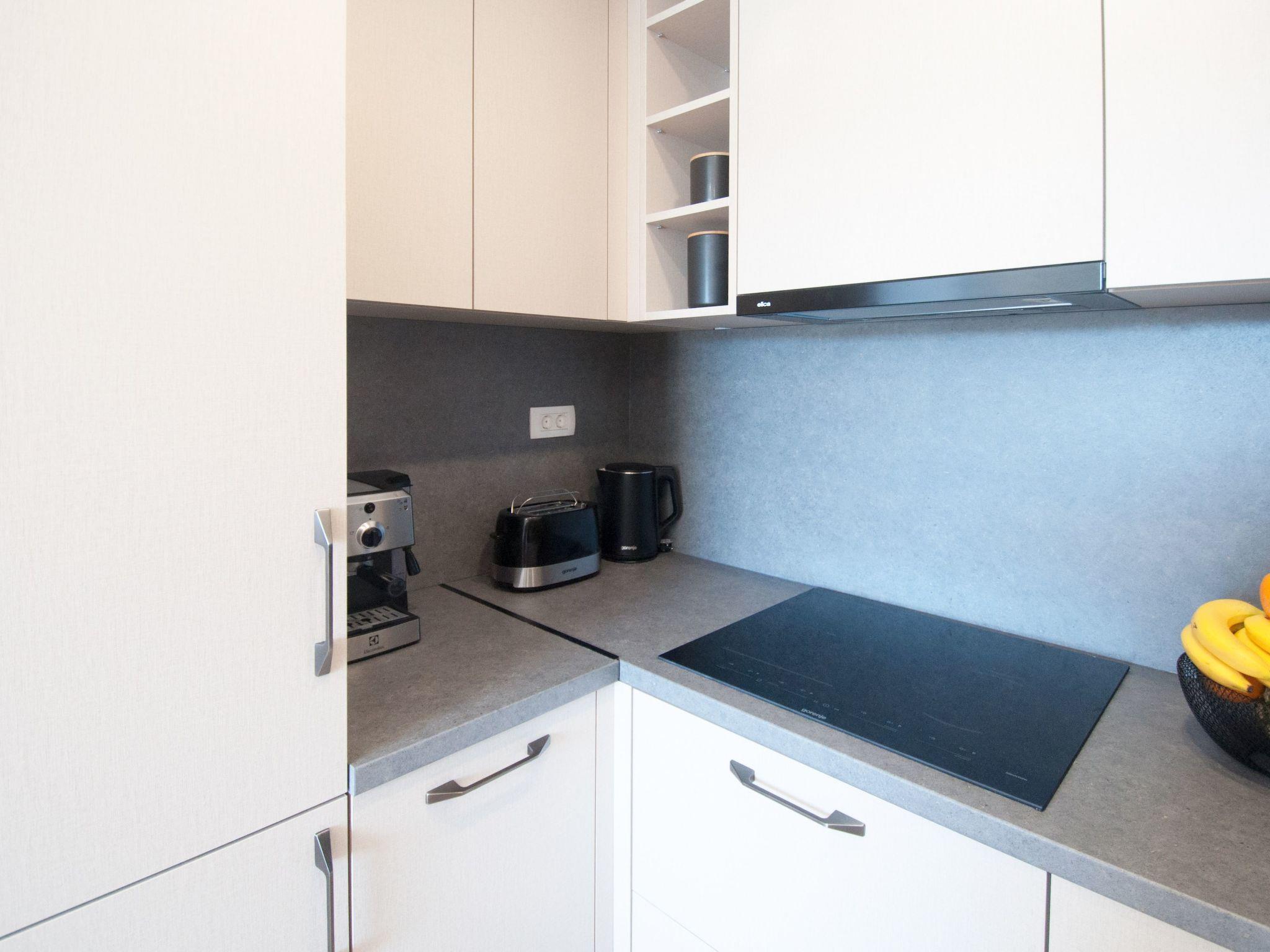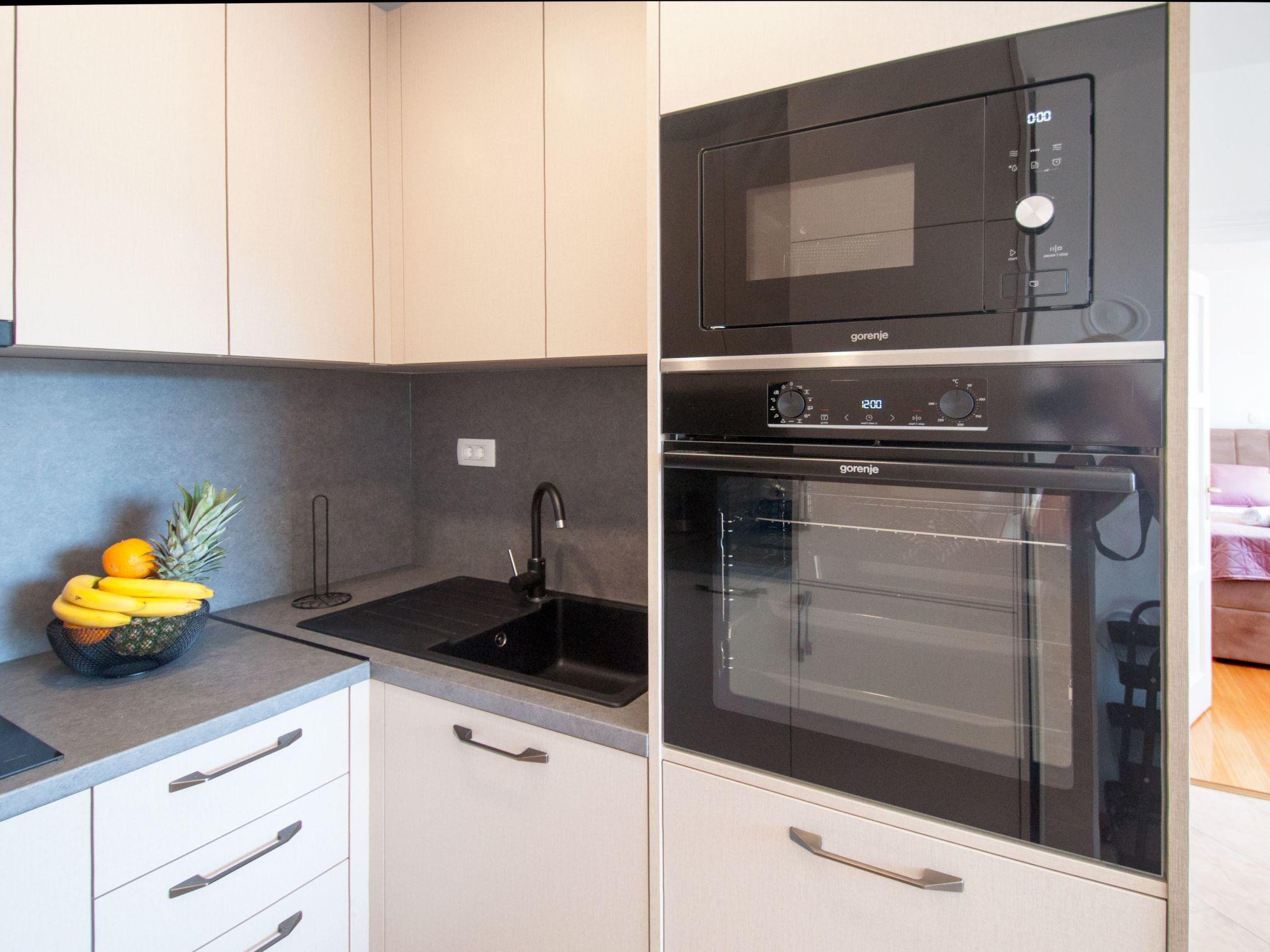 Inside, the apartment is equipped to ensure your stay is as comfortable as possible. It features two cozy bedrooms and one bathroom with a shower, making it an ideal choice for families or groups. The living space is augmented with partial air conditioning, perfect for staying cool during those warm Istrien days. Practical needs are covered too, with a washing machine for your exclusive use. The kitchenette is well-appointed with a 2-plate stove, filter coffee machine, dishwasher, microwave and an electric kettle, catering to your culinary needs.