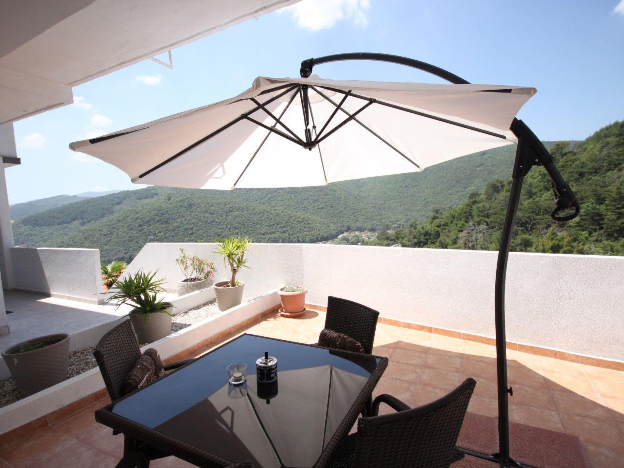 From the terrace you can enjoy a fantastic panoramic view of the sea and the forest. It is a few minutes from the apartment to the beaches at Rabac, just 350 metres away in a very quiet area.