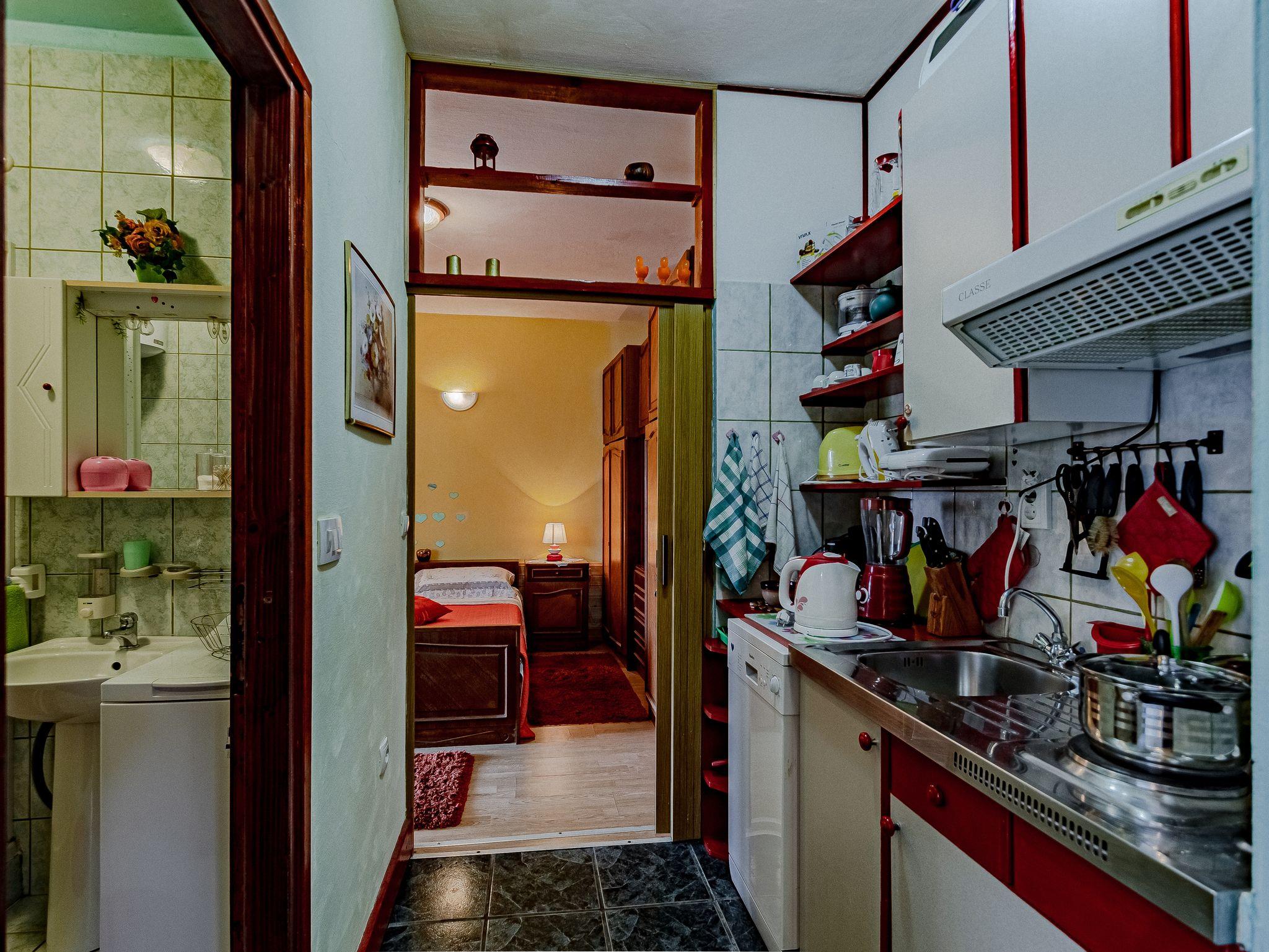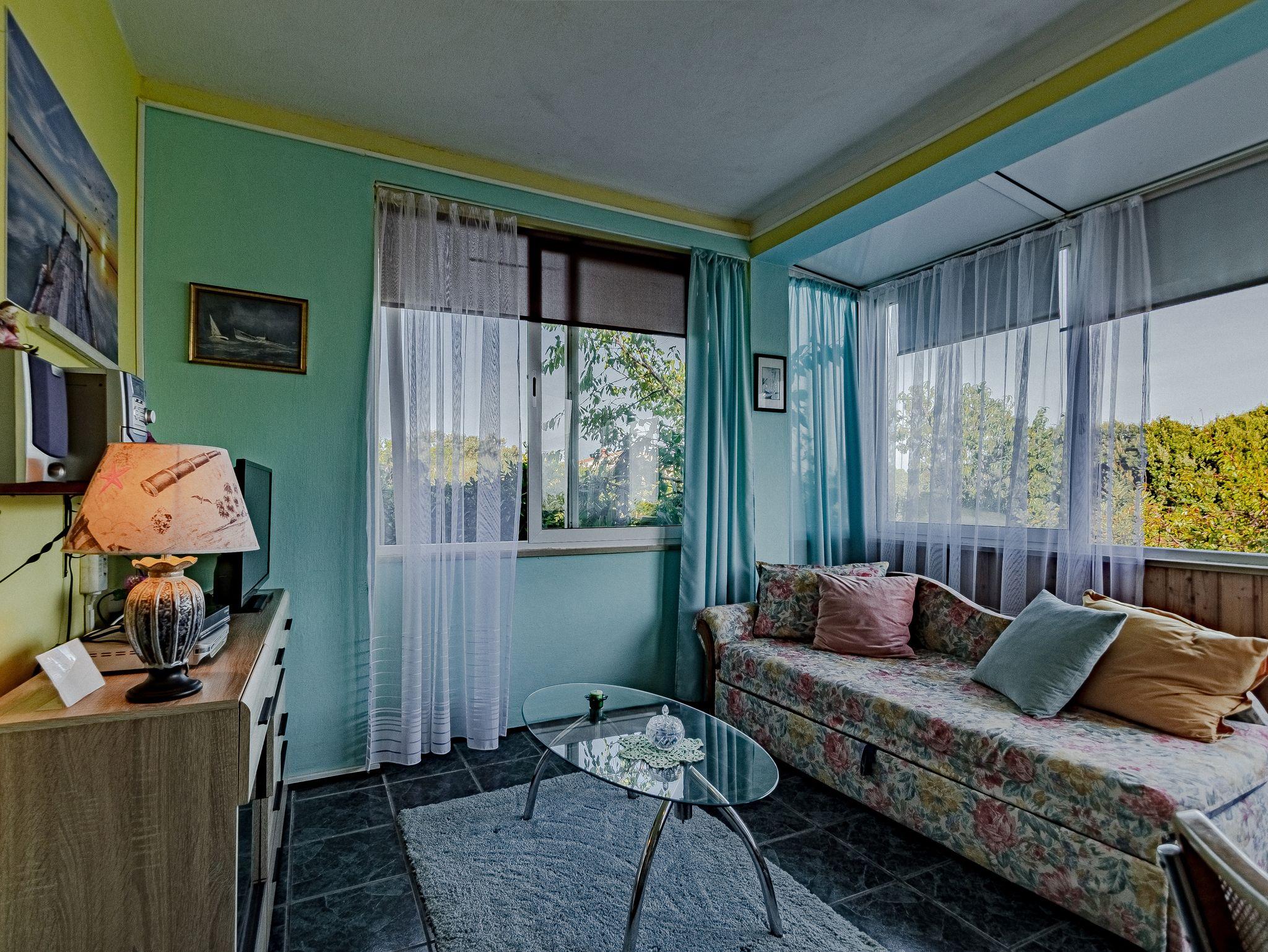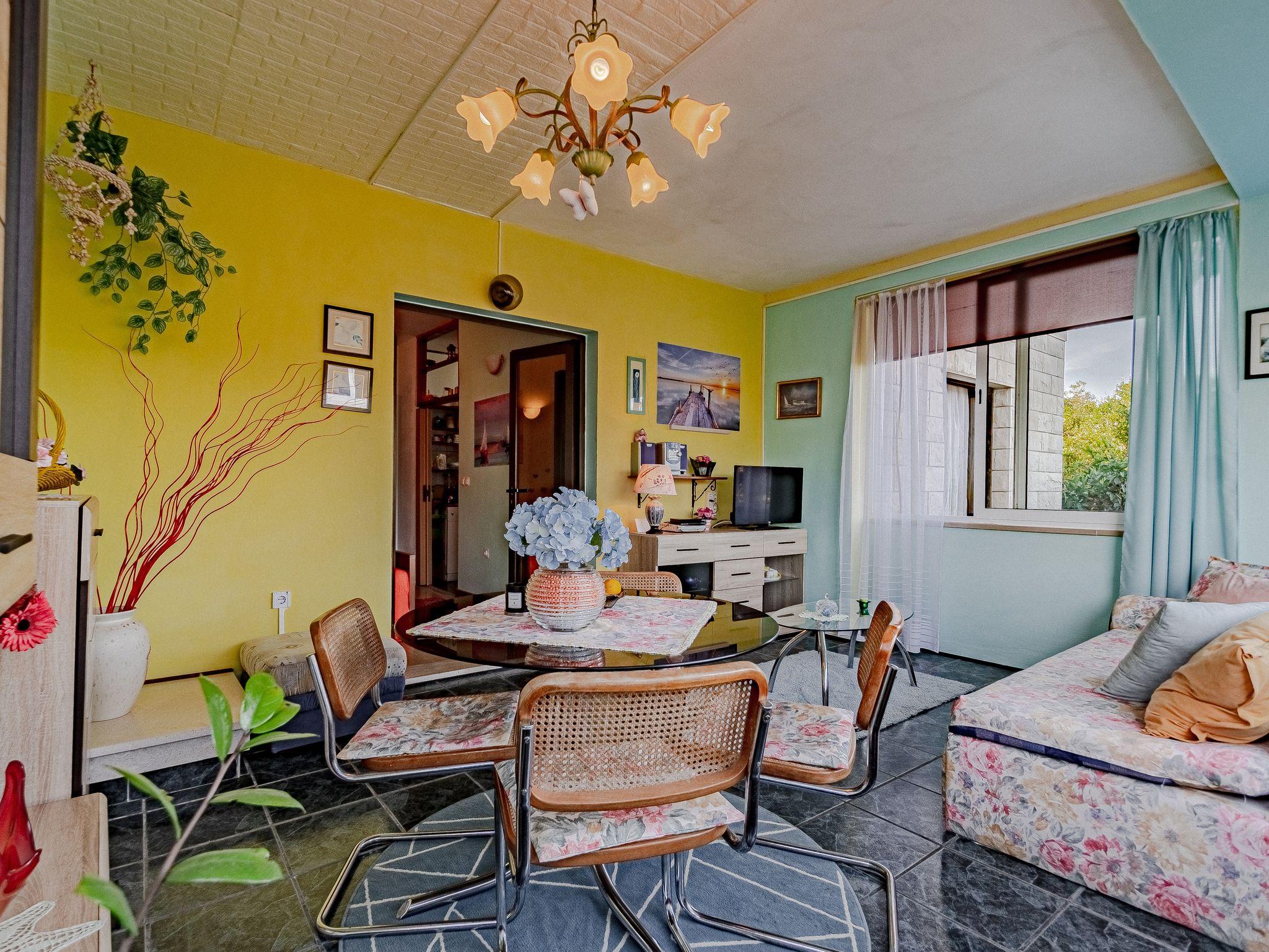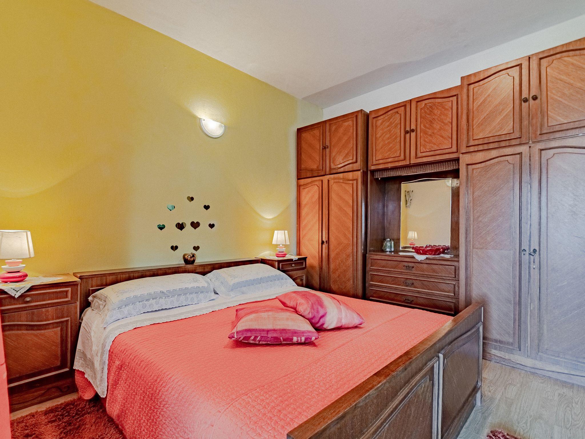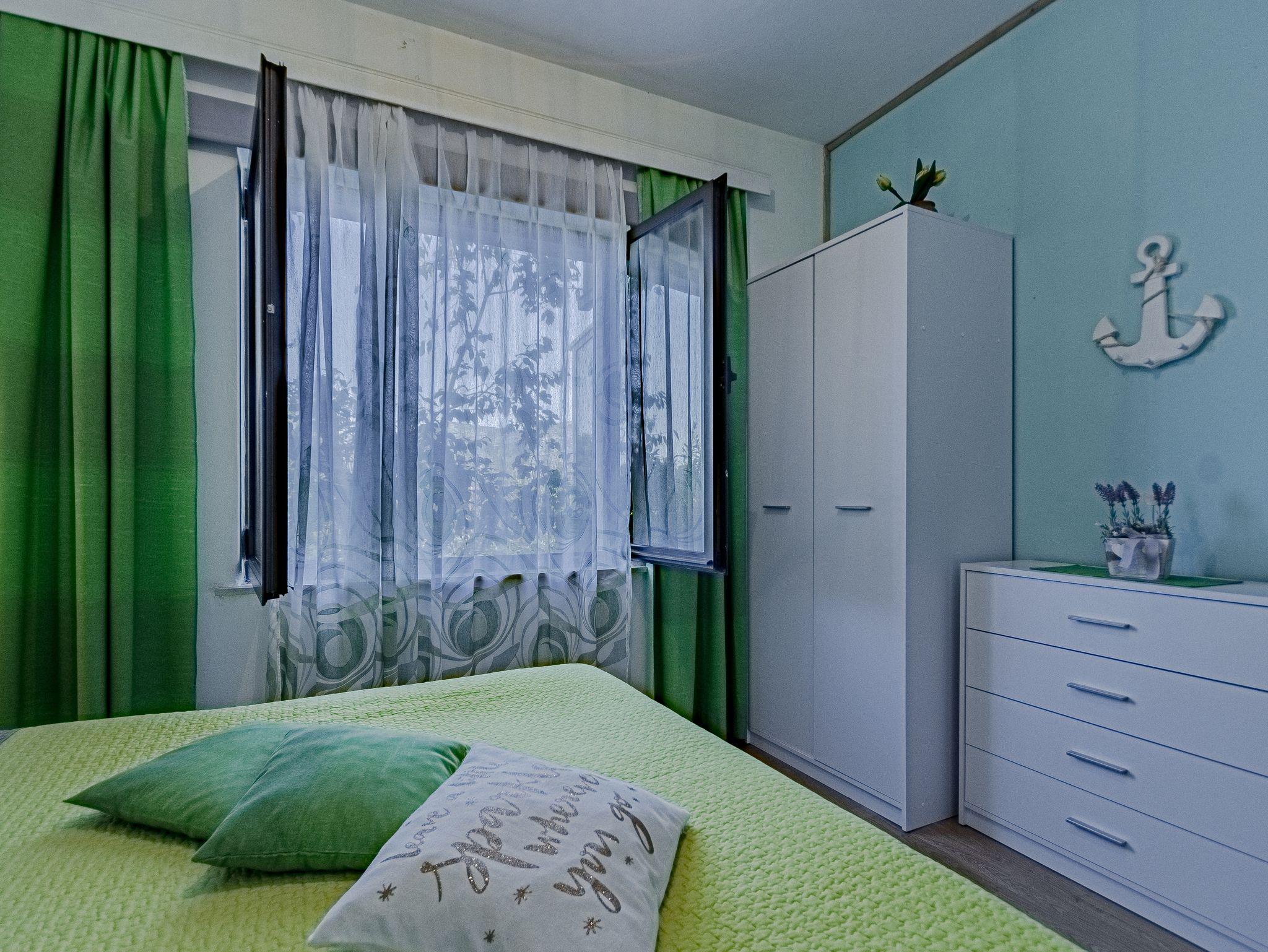 Ferienwohnung bietet Platz für 5 Gäste. Die Betten sind in Schlafzimmern, die es 2 gibt, und in Wohnzimmer, innerhalb einer Gesamtfläche von 53m2, angeordnet. Die Gäste haben eine eigene Terrasse zur Verfügung, auf der sie in warmen Sommernächten genießen können. Es ist erlaubt, Speisen auf dem Gemeinschafts-Grill vorzubereiten. In der Unterkunftseinheit besteht die Möglichkeit des Mitbringens von Haustieren gegen Aufpreis. IM PREIS INBEGRIFFEN: Kurtaxe, Endreinigung, Klimatisierung, Parkplatz, Internet, Bootsanlegeplatz, Kinderbett, Föhn, Sonnenschirm. VERBINDLICHE ZUSÄTZLICHE KOSTEN: Aufzahlung für Kurzaufenthalte (prozentualer Zuschlag pro Nächtigungsanzahl: 30% - 1, 20% - 2, 10% - 3). UNVERBINDLICHE ZUSÄTZLICHE KOSTEN: Haustiere (5,00 € pro Nacht). Die Verfügbarkeit zusätzlicher Dienstleistungen in Ihrem reservierten Termin und die Preise derselben (falls nicht aufgeführt) müssen im Voraus überprüft werden. Zusätzliche Dienstleistungen die in der Zahlungsaufforderung nicht aufgeführt sind werden direkt beim Vermieter bezahlt, angenommen der Gast nutzt auch diese.