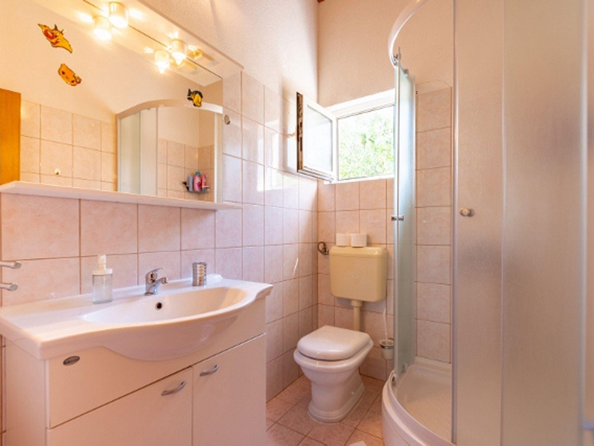 Ferienwohnung bietet Platz für 4 Gäste. Die Betten sind in Schlafzimmern, die es 2 gibt, innerhalb einer Gesamtfläche von 42m2, angeordnet. Die Gäste haben eine eigene Terrasse zur Verfügung, auf der sie in warmen Sommernächten genießen können. Das Apartment bietet Meerblick. Es ist erlaubt, Speisen auf dem Gemeinschafts-Grill vorzubereiten. In der Unterkunftseinheit besteht die Möglichkeit des Mitbringens von Haustieren, und die Dienstleistung ist im Preis der Unterkunft enthalten. IM PREIS INBEGRIFFEN: Kurtaxe, Endreinigung, Klimatisierung, Parkplatz, Internet, Haustiere, Föhn, Sonnenschirm, Liegestühle, 1 Bett für Kinder (im Preis enthalten). VERBINDLICHE ZUSÄTZLICHE KOSTEN: Aufzahlung für Kurzaufenthalte (prozentualer Zuschlag pro Nächtigungsanzahl: 30% - 1, 20% - 2, 10% - 3). Die Verfügbarkeit zusätzlicher Dienstleistungen in Ihrem reservierten Termin und die Preise derselben (falls nicht aufgeführt) müssen im Voraus überprüft werden. Zusätzliche Dienstleistungen die in der Zahlungsaufforderung nicht aufgeführt sind werden direkt beim Vermieter bezahlt, angenommen der Gast nutzt auch diese.
