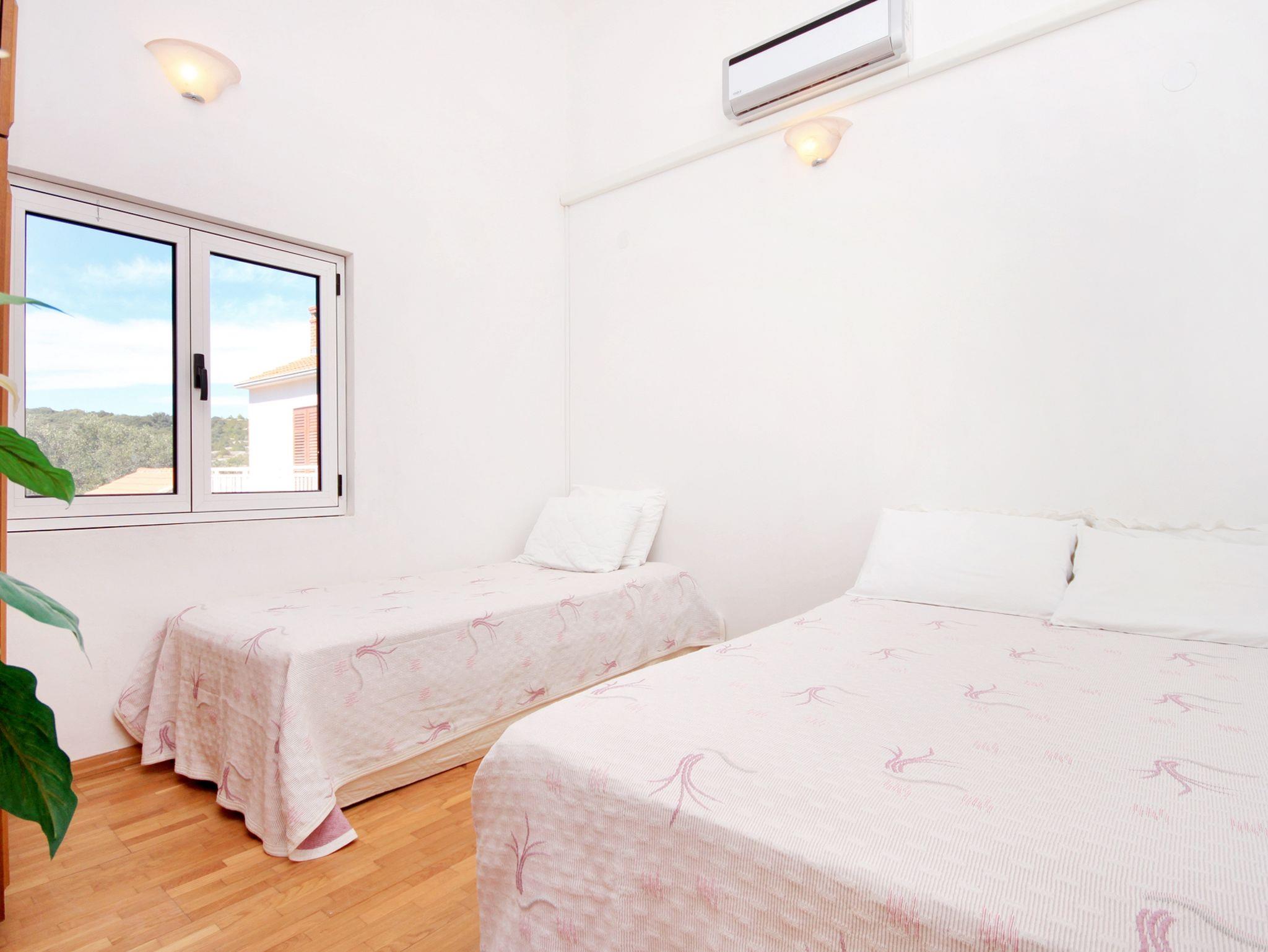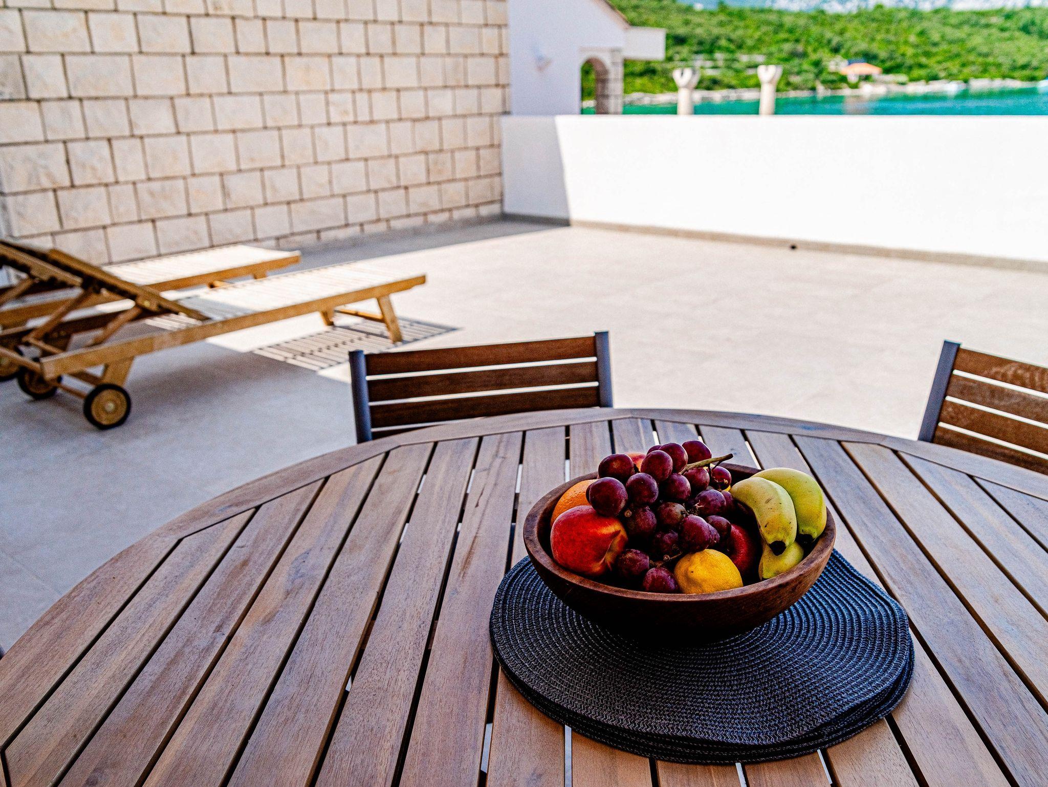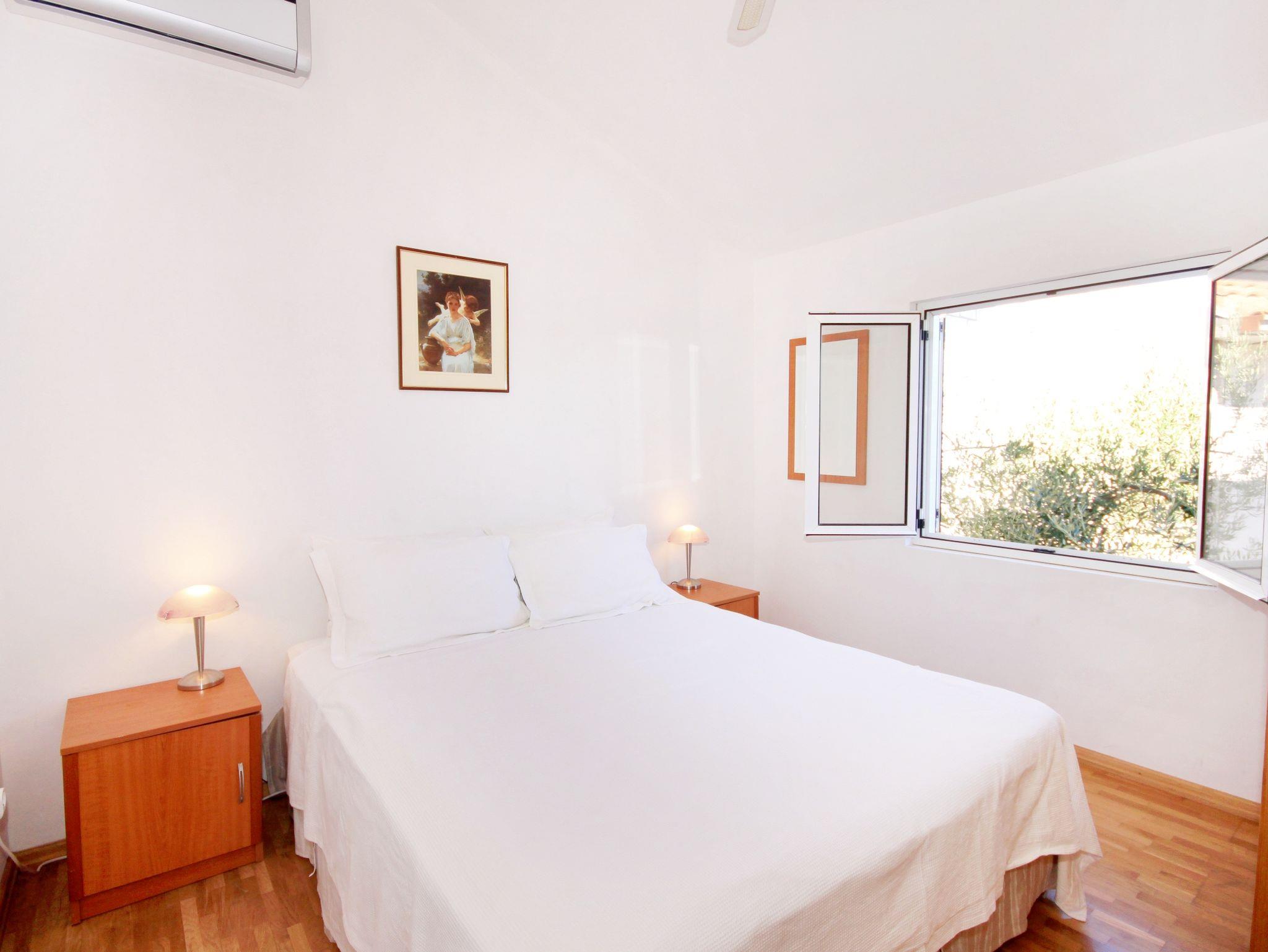 Ferienwohnung bietet Platz für 5 Gäste. Die Betten sind in Schlafzimmern, die es 2 gibt, innerhalb einer Gesamtfläche von 53m2, angeordnet. Die Gäste haben eine eigene Terrasse zur Verfügung, auf der sie in warmen Sommernächten genießen können. Das Apartment bietet Meerblick. Es ist erlaubt, Speisen auf dem Gemeinschafts-Grill vorzubereiten. IM PREIS INBEGRIFFEN: Kurtaxe, Endreinigung, Klimatisierung, Parkplatz, Internet, Bootsanlegeplatz, Kinderbett, Bügeleisen, Bügelbrett, Föhn, Sonnenschirm, Liegestühle. Die Verfügbarkeit zusätzlicher Dienstleistungen in Ihrem reservierten Termin und die Preise derselben (falls nicht aufgeführt) müssen im Voraus überprüft werden. Zusätzliche Dienstleistungen die in der Zahlungsaufforderung nicht aufgeführt sind werden direkt beim Vermieter bezahlt, angenommen der Gast nutzt auch diese.
