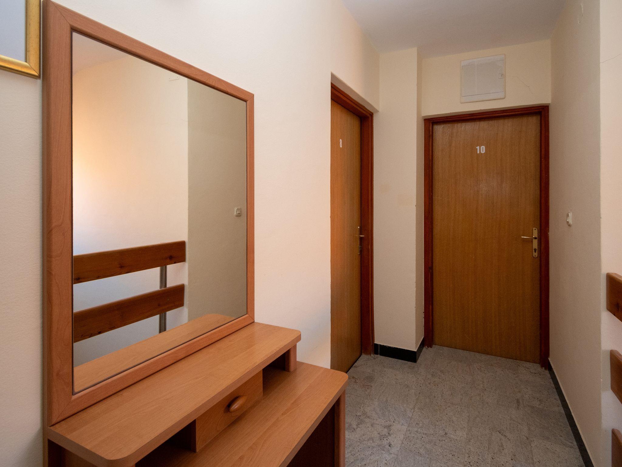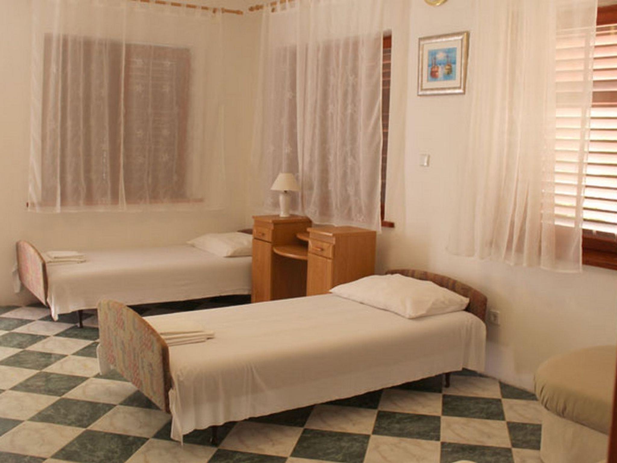 Ferienwohnung bietet Platz für 6 Gäste. Die Betten sind in Schlafzimmern, die es 2 gibt, innerhalb einer Gesamtfläche von 61m2, angeordnet. Die Gäste haben eine eigene Terrasse zur Verfügung, auf der sie in warmen Sommernächten genießen können. Das Apartment bietet Meerblick. Es ist erlaubt, Speisen auf dem Gemeinschafts-Grill vorzubereiten. In der Unterkunftseinheit besteht die Möglichkeit des Mitbringens von Haustieren gegen Aufpreis. IM PREIS INBEGRIFFEN: Kurtaxe, Endreinigung, Parkplatz, Internet. VERBINDLICHE ZUSÄTZLICHE KOSTEN: Aufzahlung für Kurzaufenthalte (prozentualer Zuschlag pro Nächtigungsanzahl: 30% - 1, 20% - 2, 10% - 3). UNVERBINDLICHE ZUSÄTZLICHE KOSTEN: Klimatisierung (6,00 € pro Nacht), Haustiere (10,00 € pro Nacht), Zusatzbett (10,00 € pro Nacht). Die Verfügbarkeit zusätzlicher Dienstleistungen in Ihrem reservierten Termin und die Preise derselben (falls nicht aufgeführt) müssen im Voraus überprüft werden. Zusätzliche Dienstleistungen die in der Zahlungsaufforderung nicht aufgeführt sind werden direkt beim Vermieter bezahlt, angenommen der Gast nutzt auch diese. Ermäßigung auf den Grundpreis: Gratistag 14=13 (bei einem Aufenthalt von 14 Tagen oder mehr erhalten Sie einen Gratistag für den Aufenthalt bis 31.12.26).