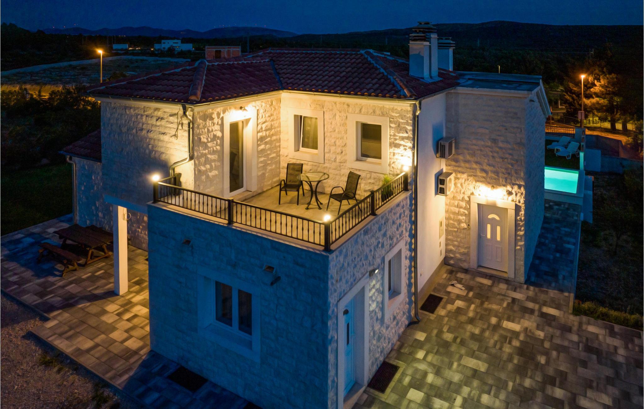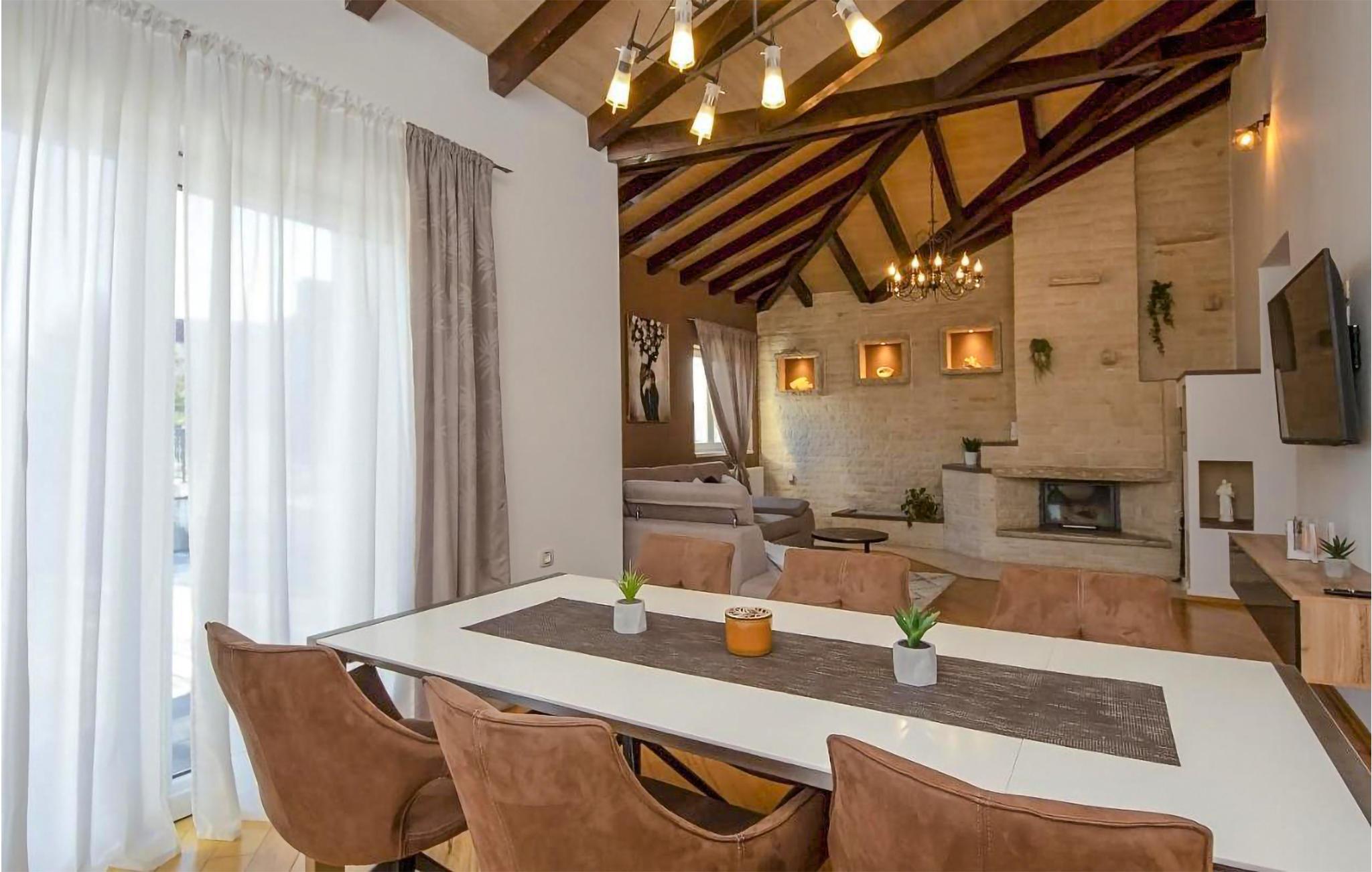 En dröm för hela familjen väntar på dig i byn Dubrava. Den bekväma villan välkomnar dig med högt i tak, en öppen spis i tegel och underhållningsalternativ som biljard. Invändigt bjuder det vita stenhuset på en harmonisk rumsindelning och en vacker inredning som saknar motstycke. Koppla av här, skäm bort dina nära och kära med läckra måltider i det tilltalande köket och ät middag på den täckta terrassen. Njut av solen på balkongen eller i trädgården, där du kan simma, plaska runt och ligga på solstolarna.
