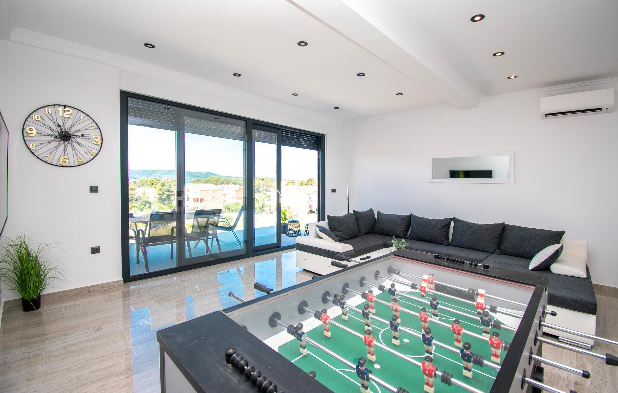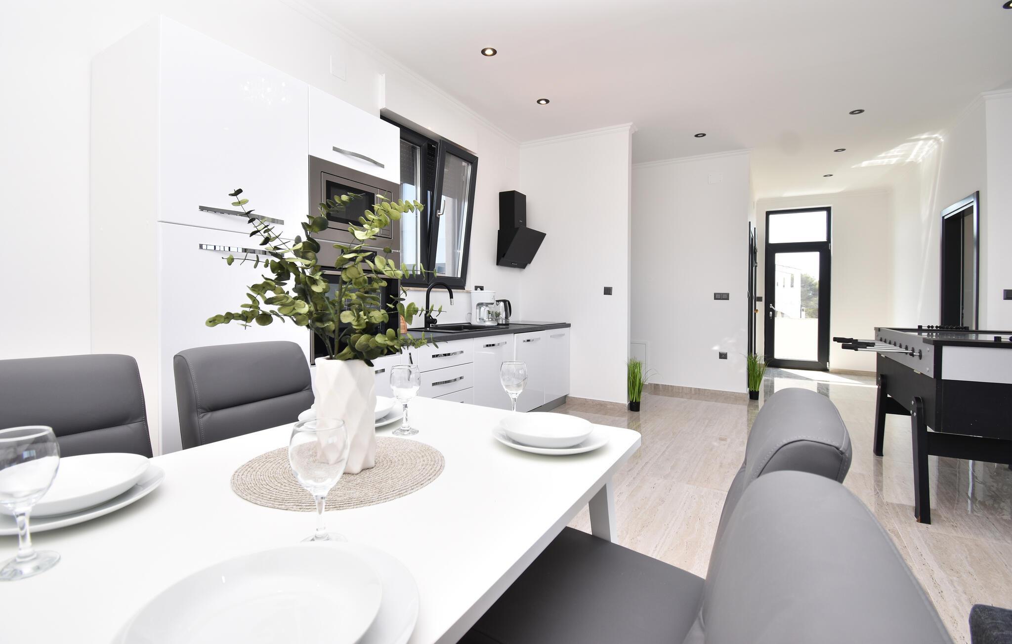 Den moderna och bekväma lägenheten välkomnar dig med sin eleganta inredning och inbjudande atmosfär. Den ljusa atmosfären är fantastisk och skapar en öppen och ljusgenomsläpplig känsla av rymd. Laga mat tillsammans i köket eller utmana varandra i ett parti bordsfotboll. Särskilt anmärkningsvärd är den rymliga terrassen på tredje våningen, där du kan koppla av med en privat bubbelpool och panoramautsikt över havet.