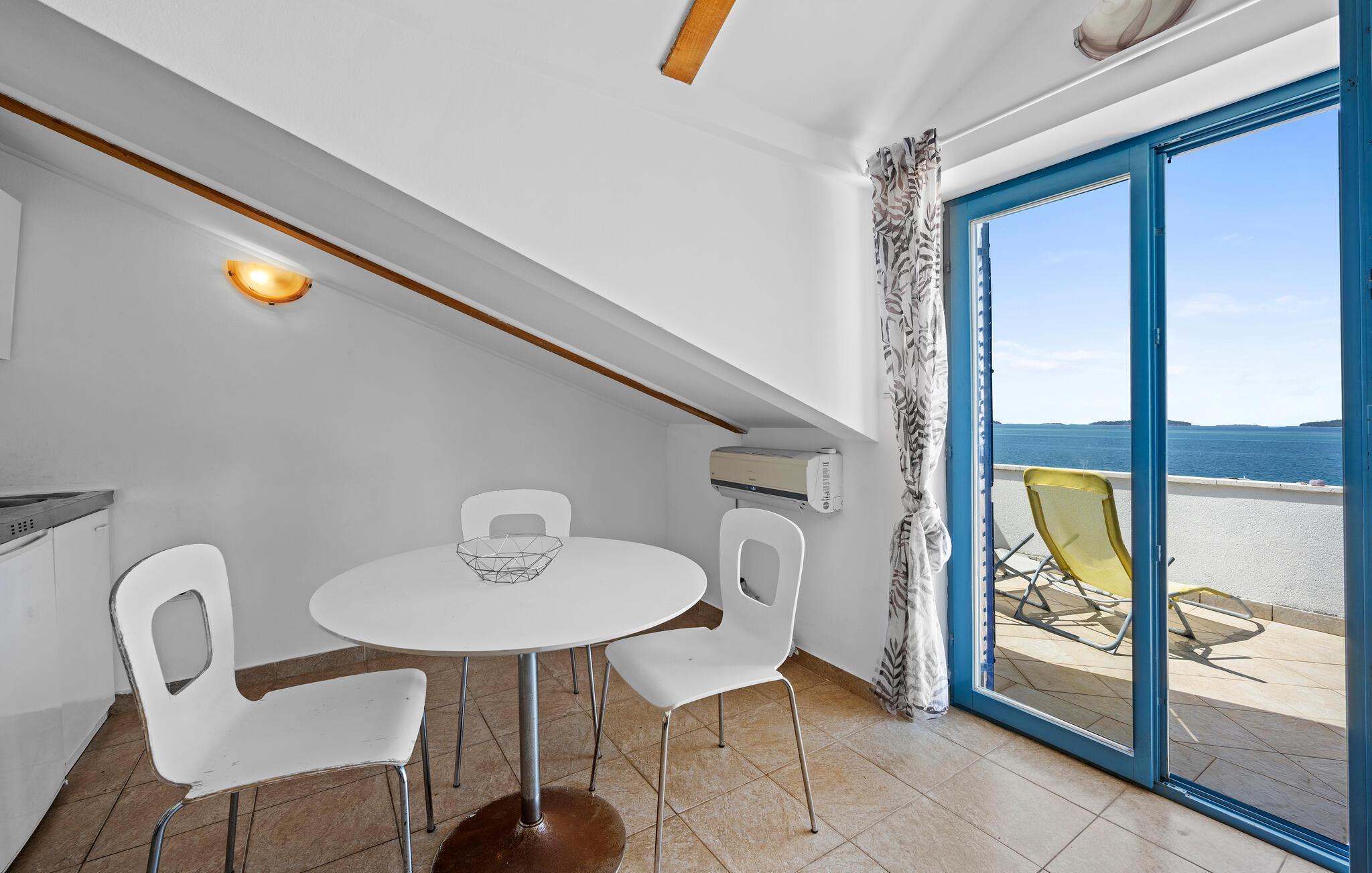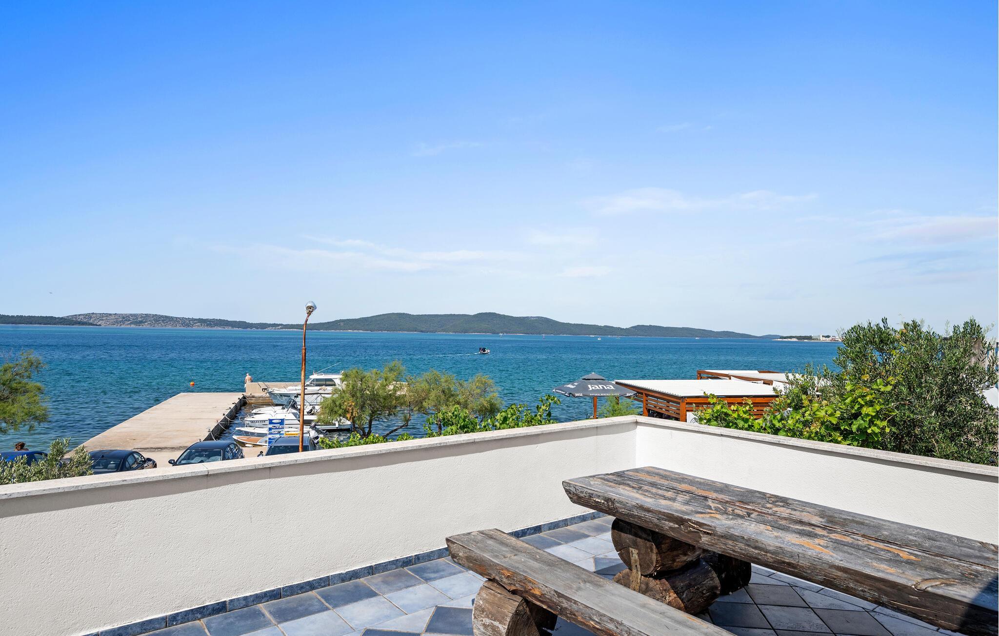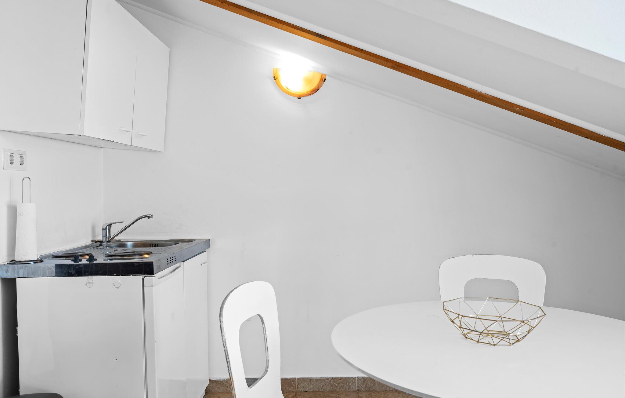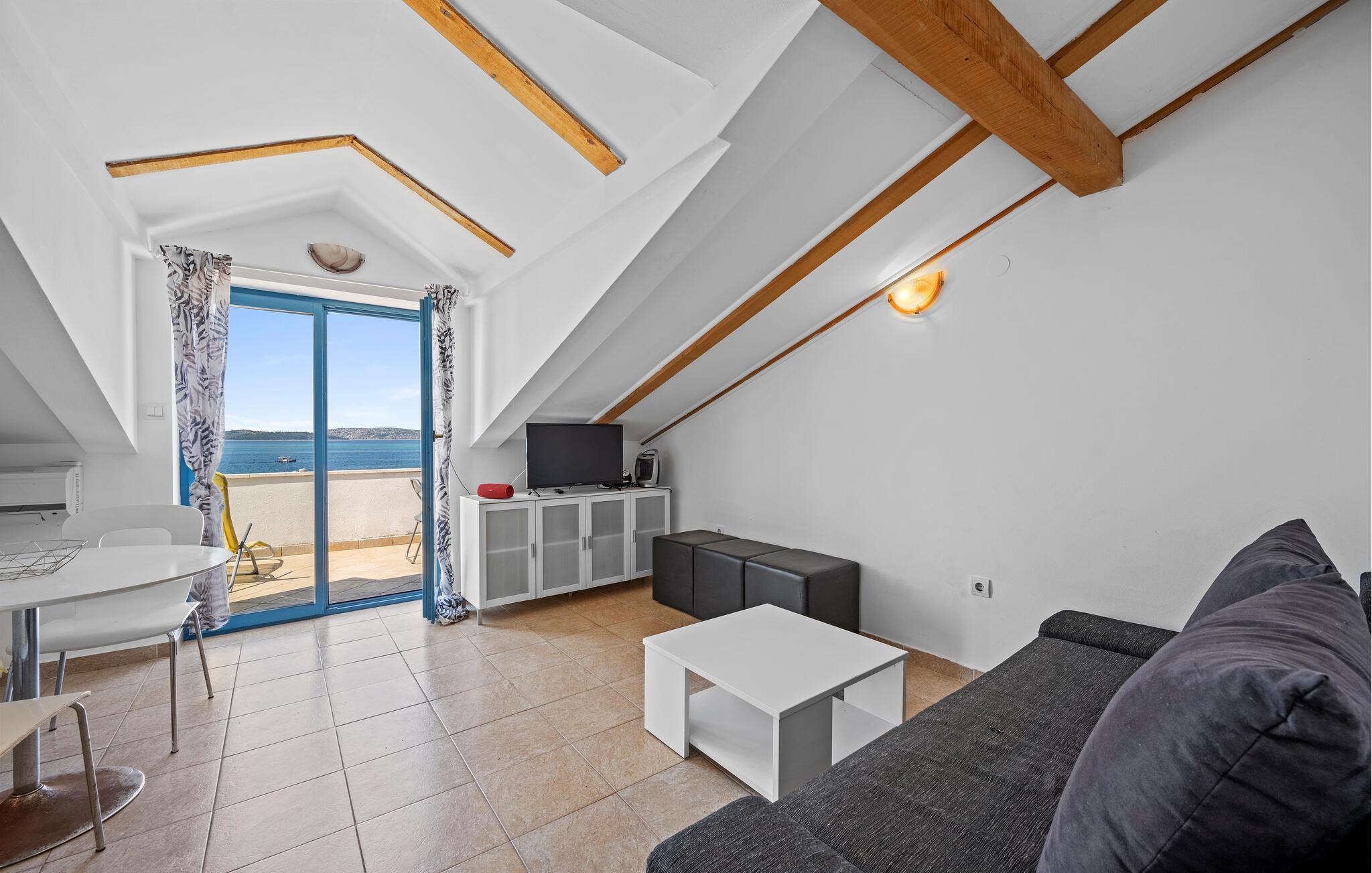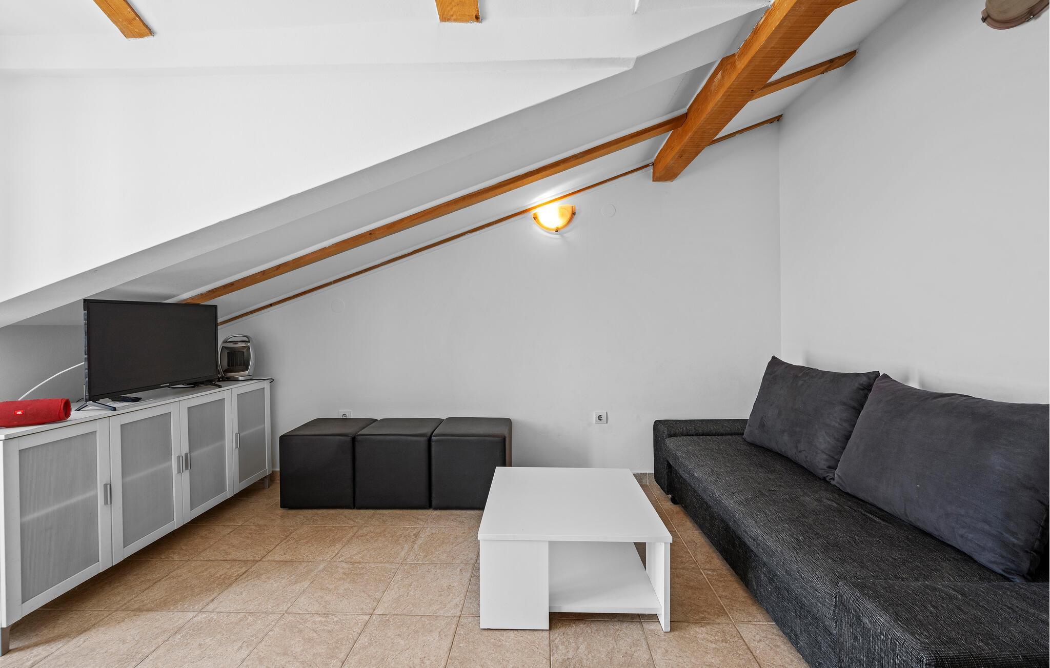 Bara några steg från stranden välkomnar denna ljusa och praktiska semesterlägenhet dig. Börja dagen här med frukost, förbered en strandpicknick och planera dina aktiviteter vid det inbjudande matbordet. Efter en lång dag under Kroatiens sol kan ni koppla av i soffan, se en film eller fördjupa er i semesterläsning.