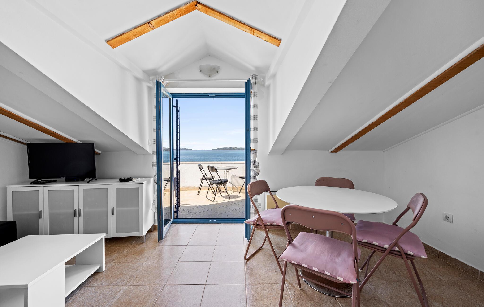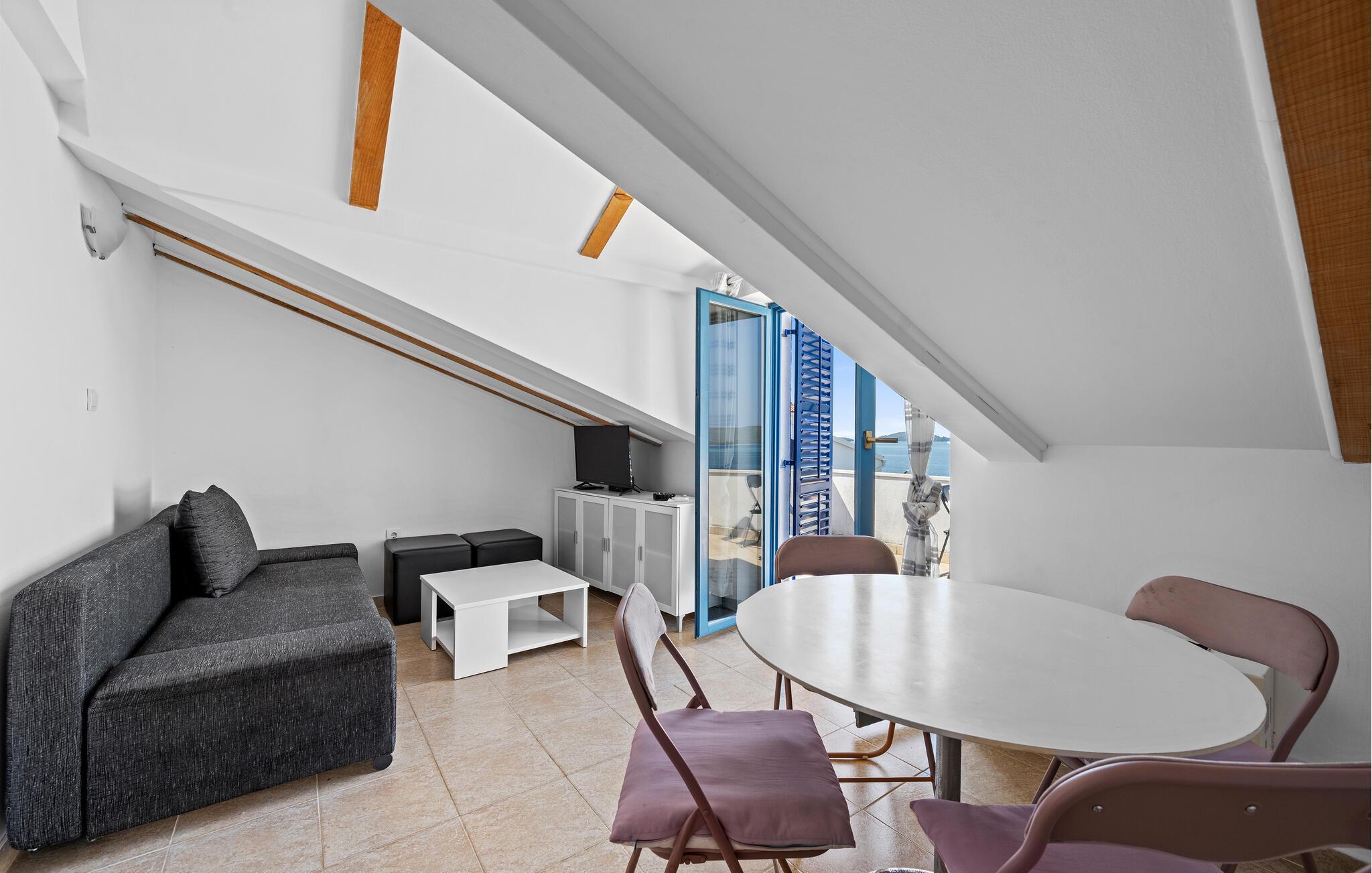 Bara några steg från stranden välkomnar denna ljusa och praktiska semesterlägenhet dig. Börja dagen här med frukost, förbered en strandpicknick och planera dina aktiviteter vid det inbjudande matbordet. Efter en lång dag under den kroatiska solen kan du koppla av i soffan, se en film eller fördjupa dig i semesterläsning.
