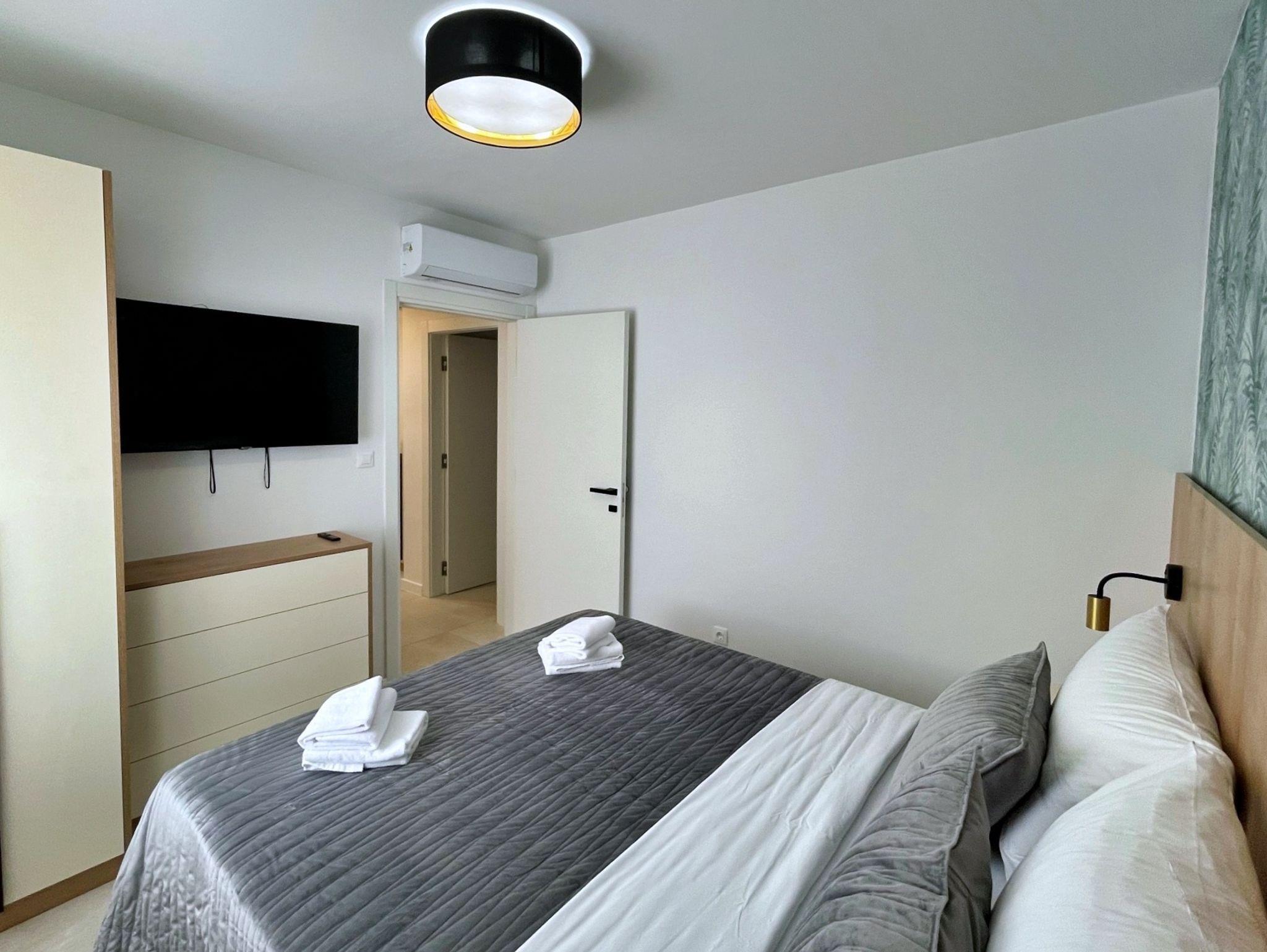 Ferienwohnung bietet Platz für 4 Gäste. Die Betten sind in Schlafzimmern, die es 2 gibt, innerhalb einer Gesamtfläche von 46m2, angeordnet. Die Gäste haben eine eigene Terrasse zur Verfügung, auf der sie in warmen Sommernächten genießen können. Das Apartment bietet Meerblick. Während ihres Aufenthalts können Gäste das gemeinsam zur Nutzung stehende Schwimmbad benutzen. IM PREIS INBEGRIFFEN: Endreinigung, Klimatisierung, Pool, Parkplatz, Internet, Wäschewaschen, Föhn. VERBINDLICHE ZUSÄTZLICHE KOSTEN: Kurtaxe (Erwachsene 0,93 € - 2,00 € Nacht/Person, Kinderermäßigung 12 - 17 Jahre). Die Verfügbarkeit zusätzlicher Dienstleistungen in Ihrem reservierten Termin und die Preise derselben (falls nicht aufgeführt) müssen im Voraus überprüft werden. Zusätzliche Dienstleistungen die in der Zahlungsaufforderung nicht aufgeführt sind werden direkt beim Vermieter bezahlt, angenommen der Gast nutzt auch diese.
