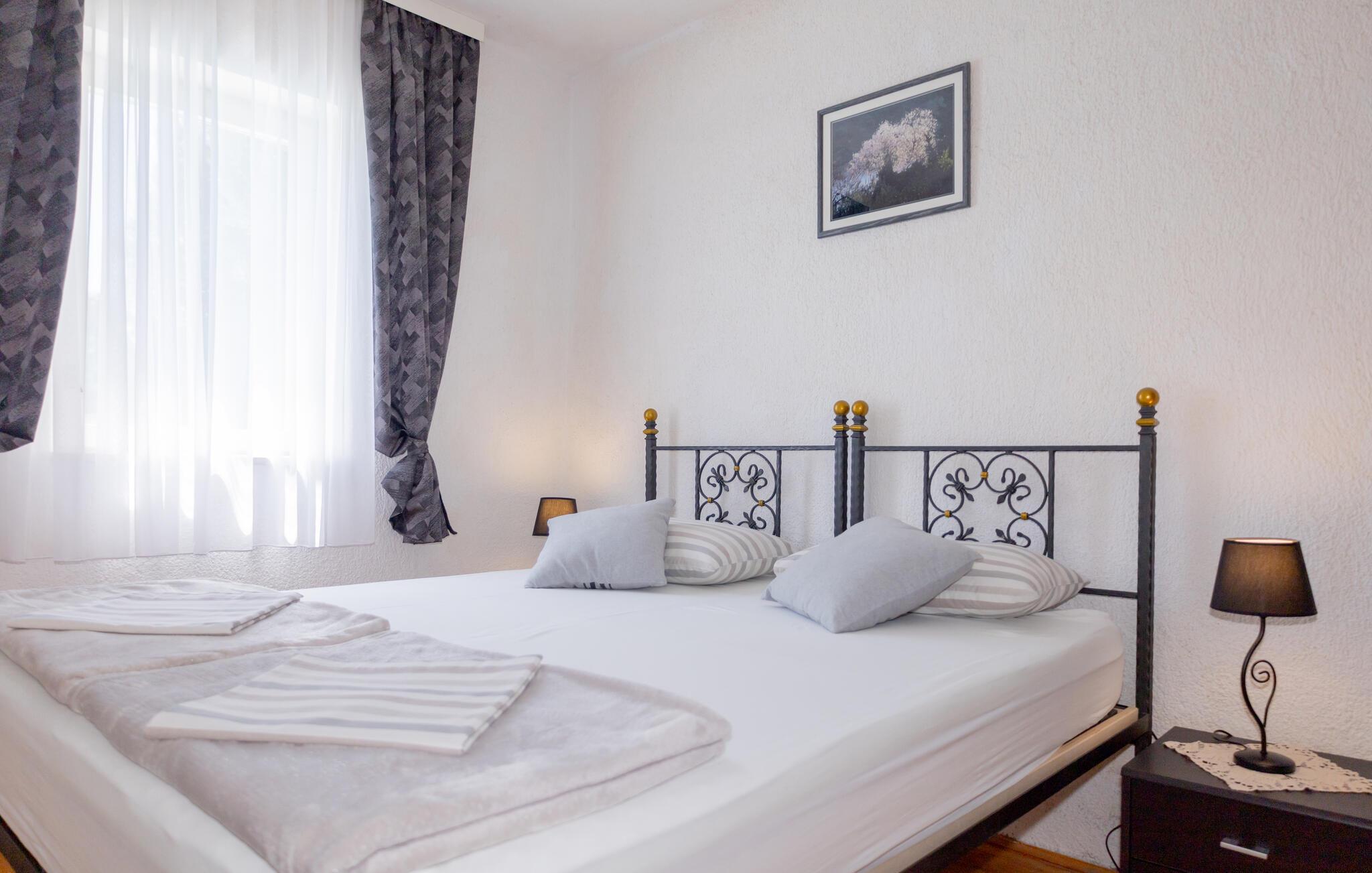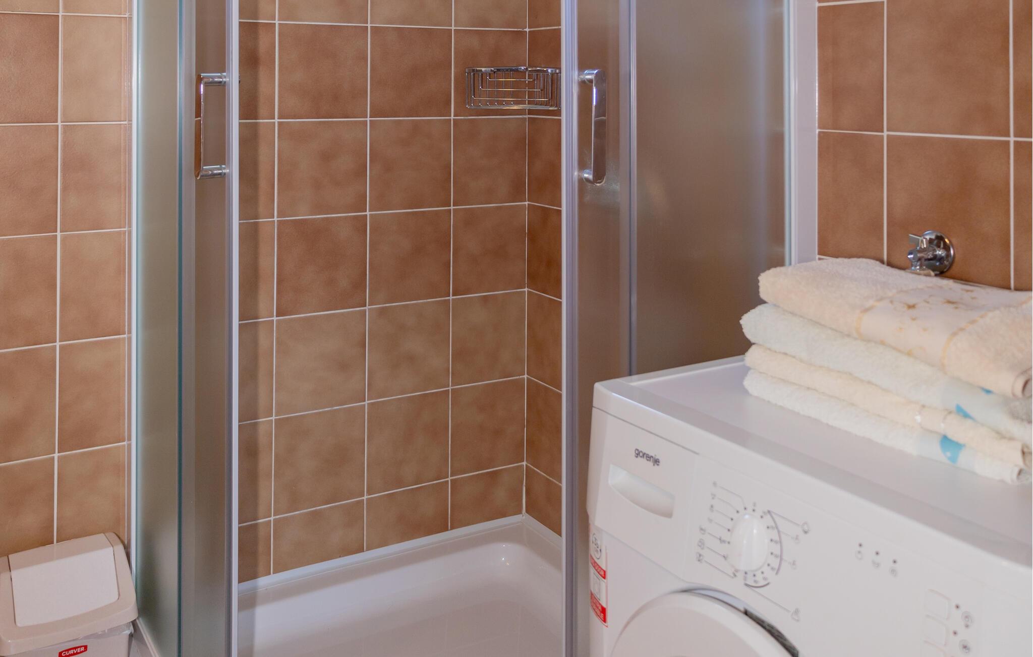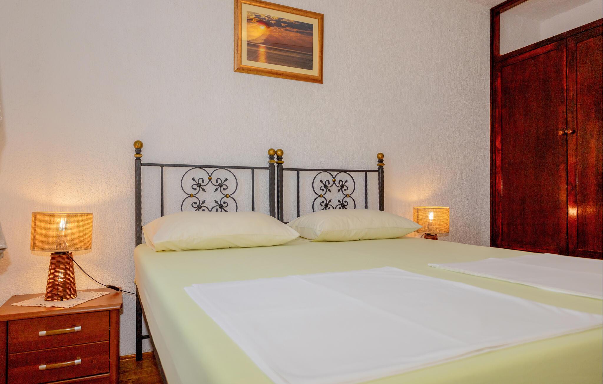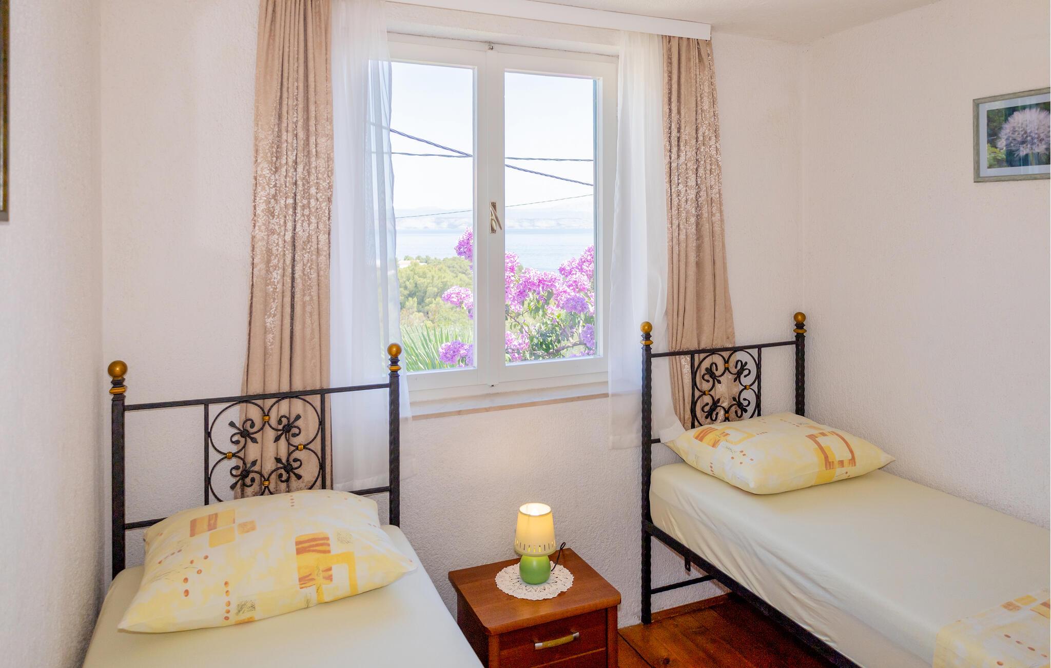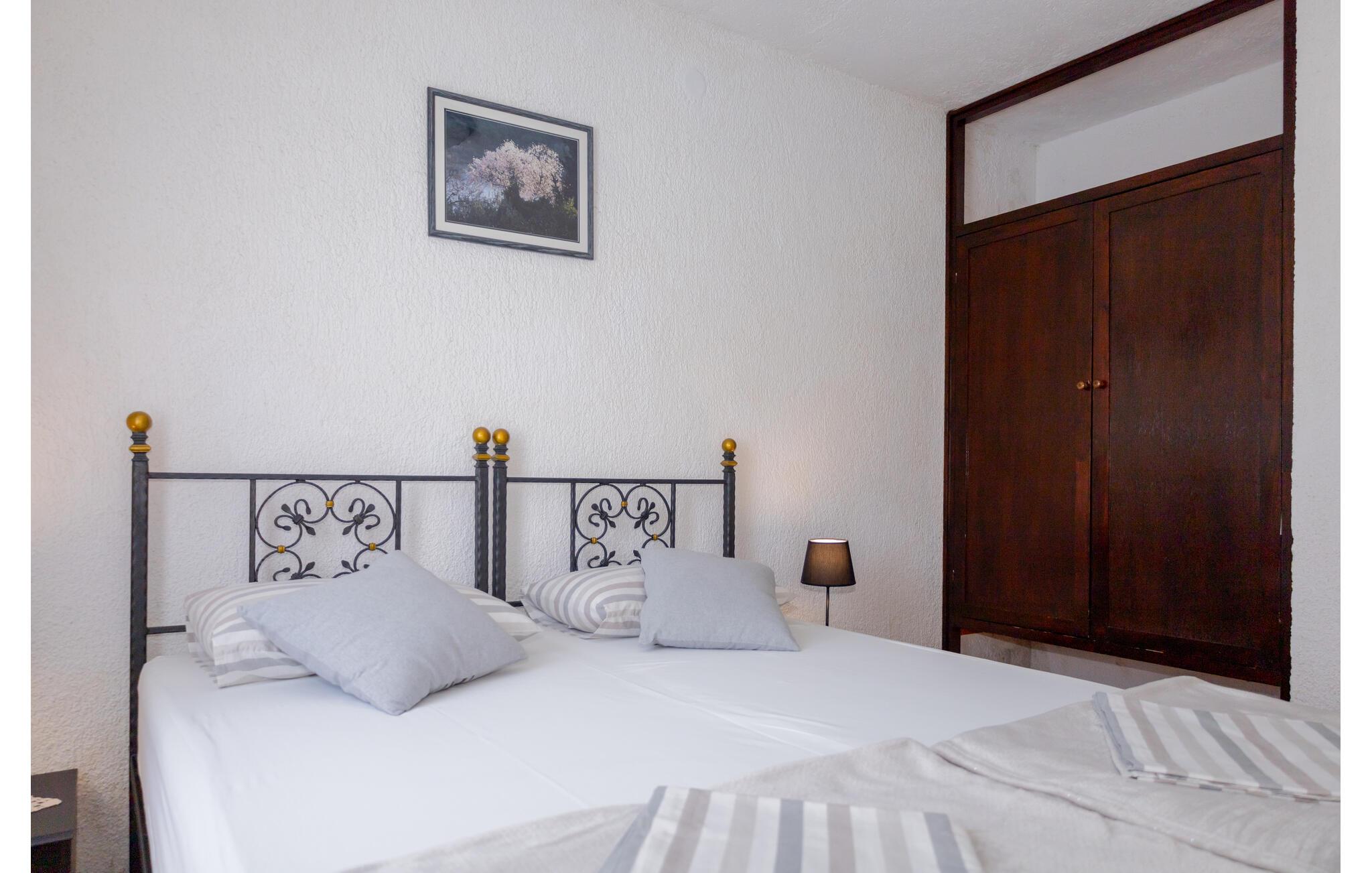 Detta semesterhus består av två enheter som är förbundna med en utvändig trappa och ligger bara några minuters promenad från den lugna hamnen. Du behöver därför ingen bil när du tillbringar din semester här. I hamnen har du möjlighet att köpa nyfångad fisk och prova maritima delikatesser på de olika restaurangerna. I närheten finns en familjevänlig strand där du kan njuta av livet och semestern under varma sommardagar. Packa bara badsakerna och var beredd på att det inte blir lätt att övertala barnen att ta sig upp ur vattnet igen.