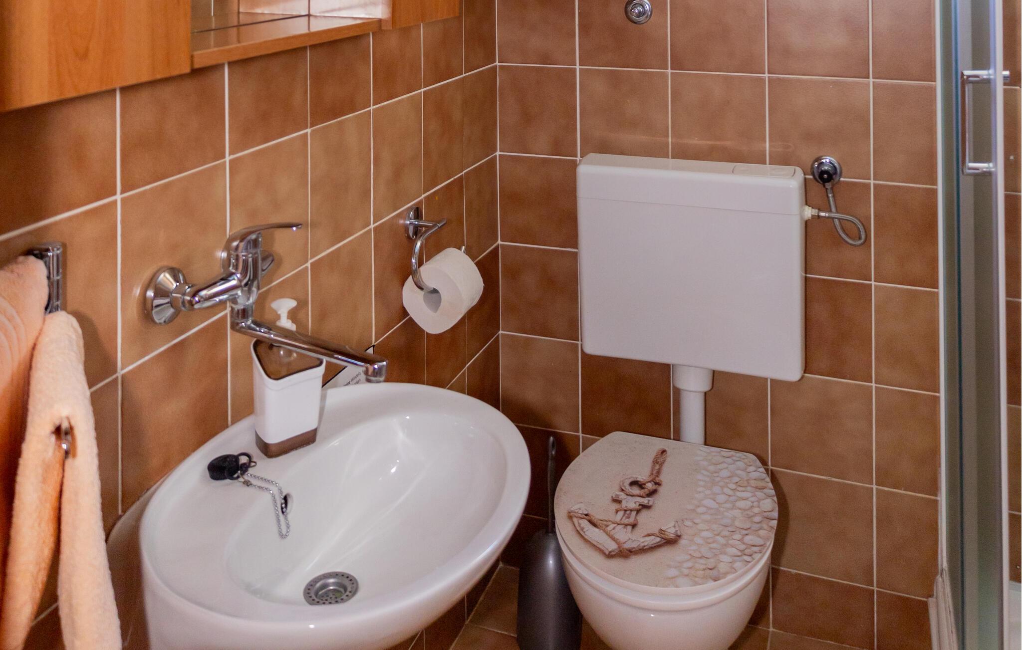 - WC med varmt och kallt vatten, Dusch