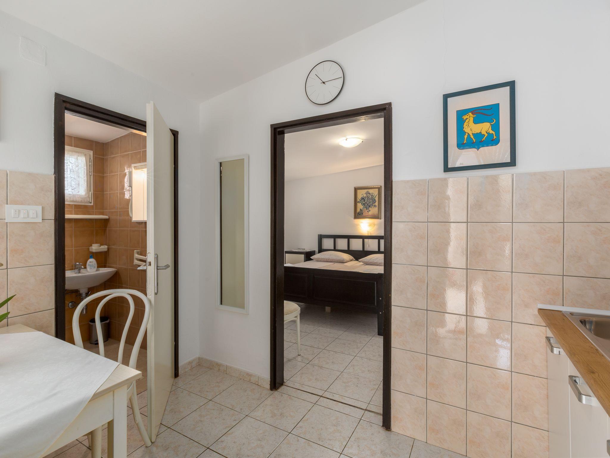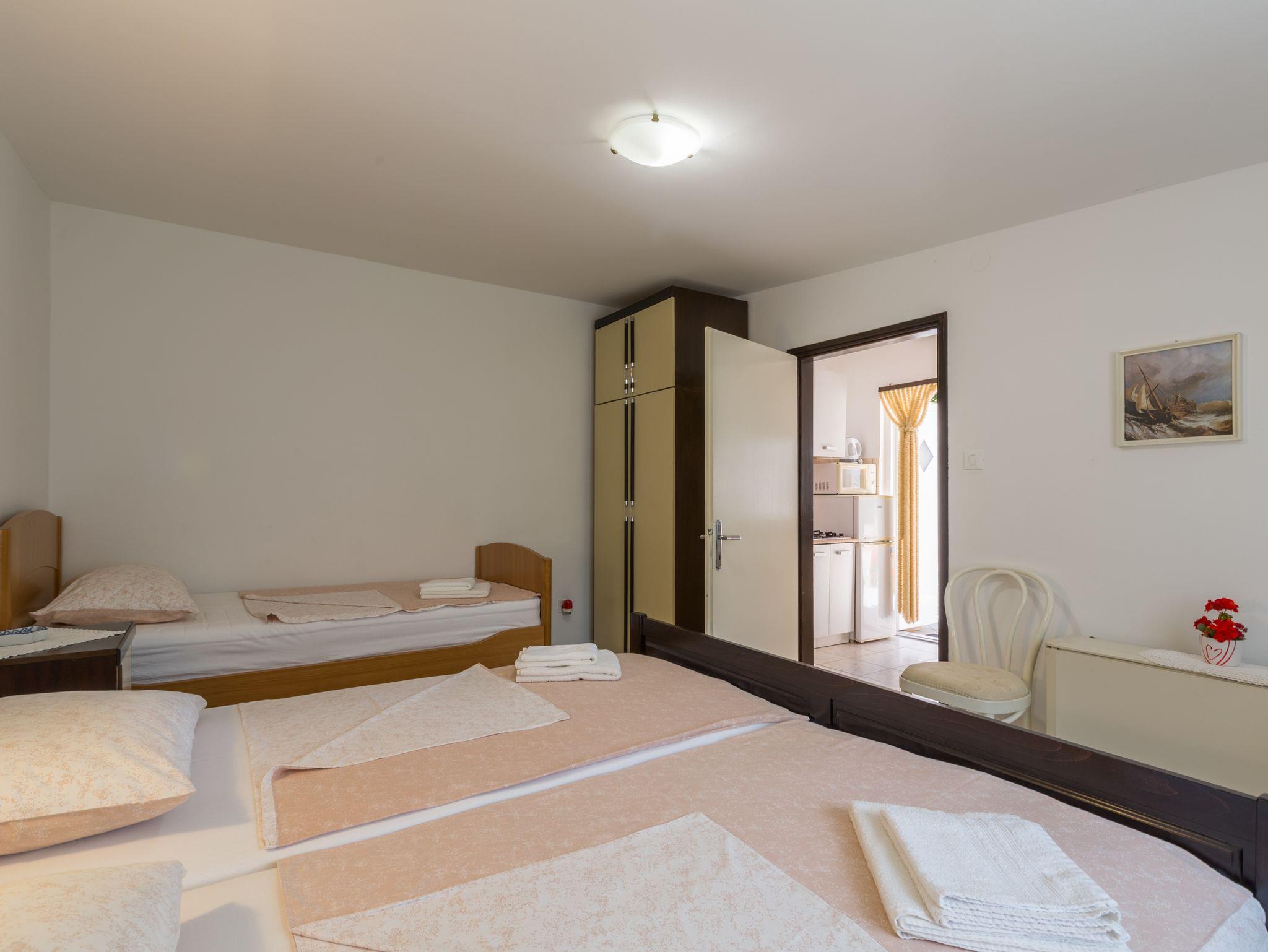 Ferienwohnung bietet Platz für 3 Gäste. Die Betten sind in Schlafzimmern, die es 1 gibt, innerhalb einer Gesamtfläche von 25m2, angeordnet. Die Gäste haben eine eigene Terrasse zur Verfügung, auf der sie in warmen Sommernächten genießen können. Es ist erlaubt, Speisen auf dem Gemeinschafts-Grill vorzubereiten. In der Unterkunftseinheit besteht die Möglichkeit des Mitbringens von Haustieren gegen Aufpreis. IM PREIS INBEGRIFFEN: Kurtaxe, Endreinigung, Klimatisierung, Parkplatz, Internet, Kinderbett, Bügeleisen, Bügelbrett, Föhn. VERBINDLICHE ZUSÄTZLICHE KOSTEN: Aufzahlung für Kurzaufenthalte (prozentualer Zuschlag pro Nächtigungsanzahl: 30% - 1, 20% - 2, 10% - 3). UNVERBINDLICHE ZUSÄTZLICHE KOSTEN: Haustiere (7,00 € pro Nacht). Die Verfügbarkeit zusätzlicher Dienstleistungen in Ihrem reservierten Termin und die Preise derselben (falls nicht aufgeführt) müssen im Voraus überprüft werden. Zusätzliche Dienstleistungen die in der Zahlungsaufforderung nicht aufgeführt sind werden direkt beim Vermieter bezahlt, angenommen der Gast nutzt auch diese. Ermäßigung auf den Grundpreis: Gratistag 14=13 (bei einem Aufenthalt von 14 Tagen oder mehr erhalten Sie einen Gratistag für den Aufenthalt bis 31.12.26).