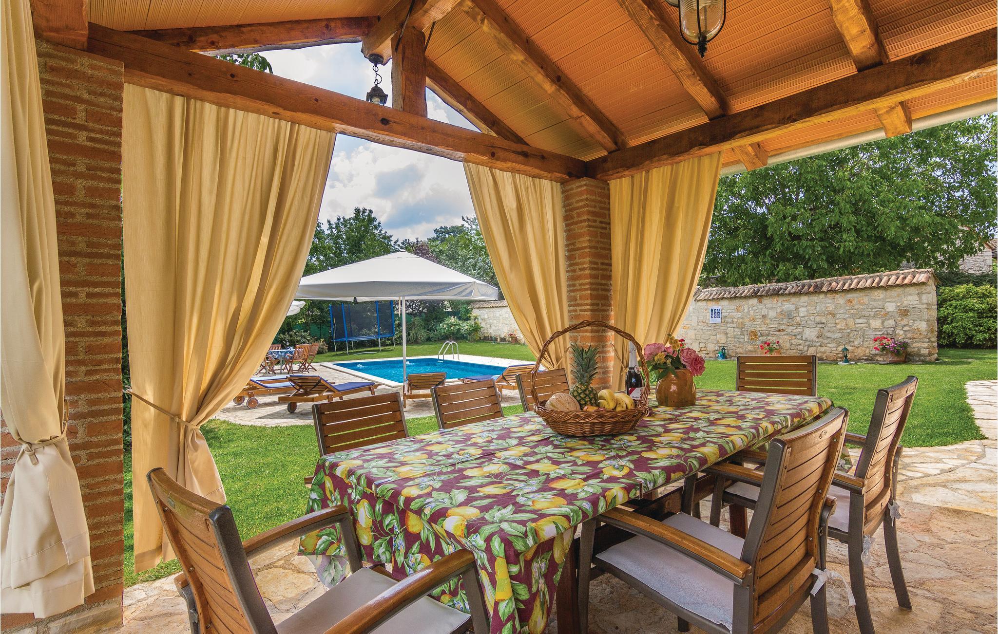 Unna dig själv och din familj en speciell semester i detta fantastiska semesterhus! Här kan du njuta av din semester till fullo! Huset byggdes i början av 1800-talet och totalrenoverades för några år sedan. En swimmingpool tillkom och kompletterar den drömlika atmosfären, som är en blandning av regionens traditioner och det moderna livet. Vid den vackra poolen kan du njuta av din avskildhet, eftersom en stor mur skyddar dig från nyfikna ögon. Medan du tillbringar din tid vid poolen under sommarmånaderna bjuder kaminen i vardagsrummet in dig att njuta av ett gott glas vin på de svala kvällarna. I Istriens inland hittar du ett rikt gastronomiskt utbud, vänliga invånare och många kulturevenemang. Särskilt populära här är de lokala festivalerna, som väcker entusiasm med sin goda mat, folklore och musik.